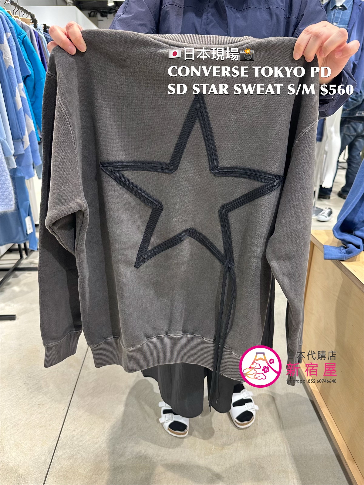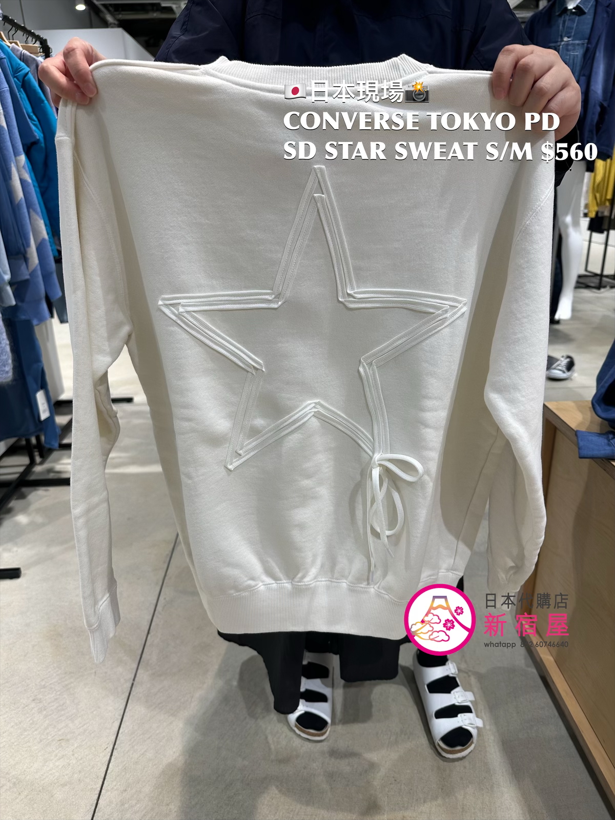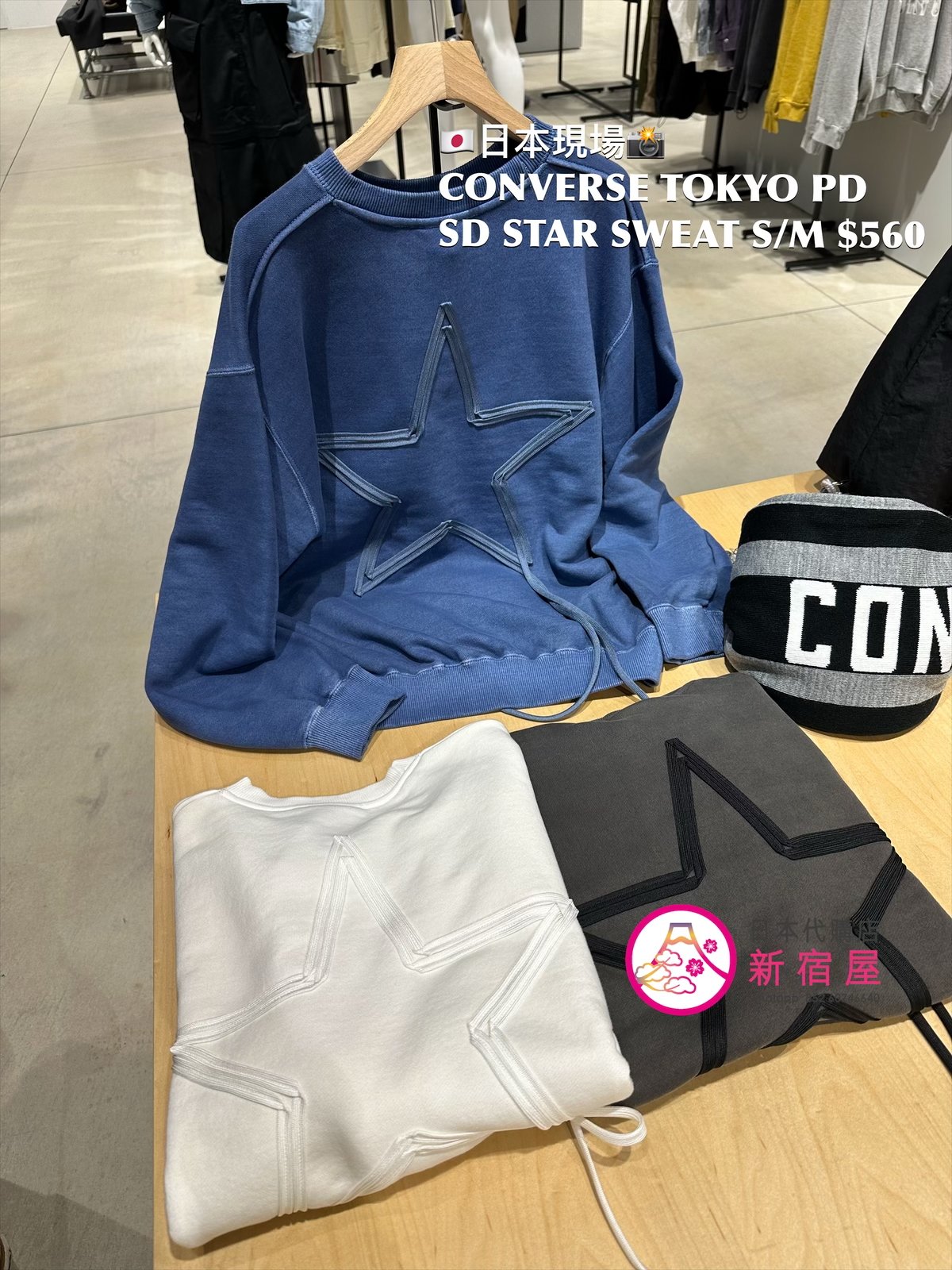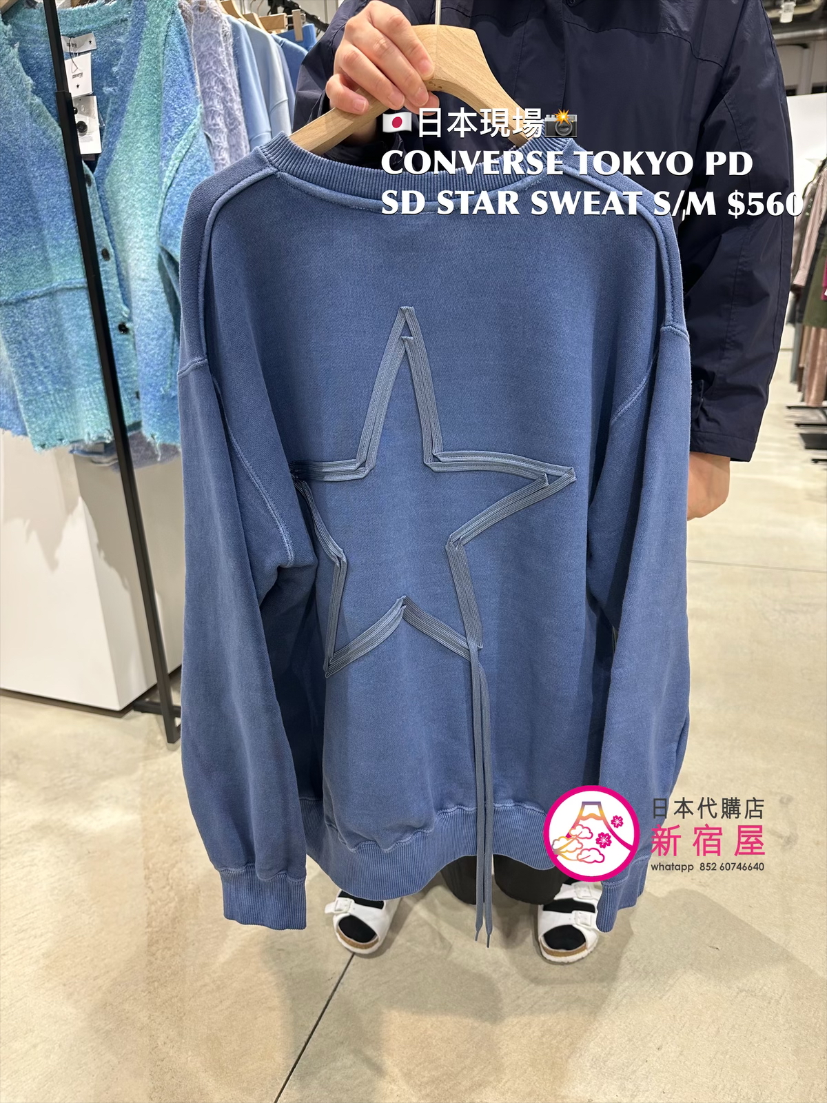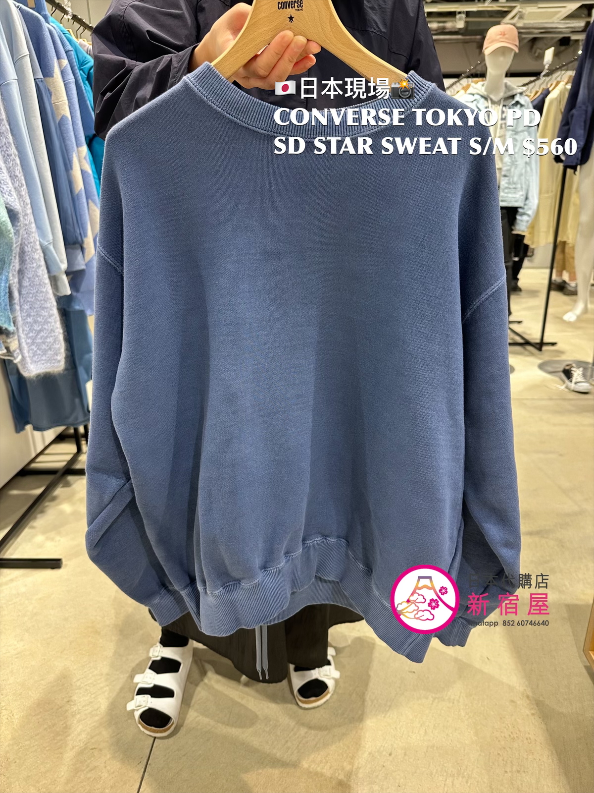 CONVERSE TOKYO PIGMENT DYE SPINDLE STAR SWEAT SIZE S/M,BLUE/ WHITE/ BLACK,$560 👚參考尺寸 SIZE S: 身幅 57 著丈 57cm SIZE M: 身幅 61 著丈 62cm