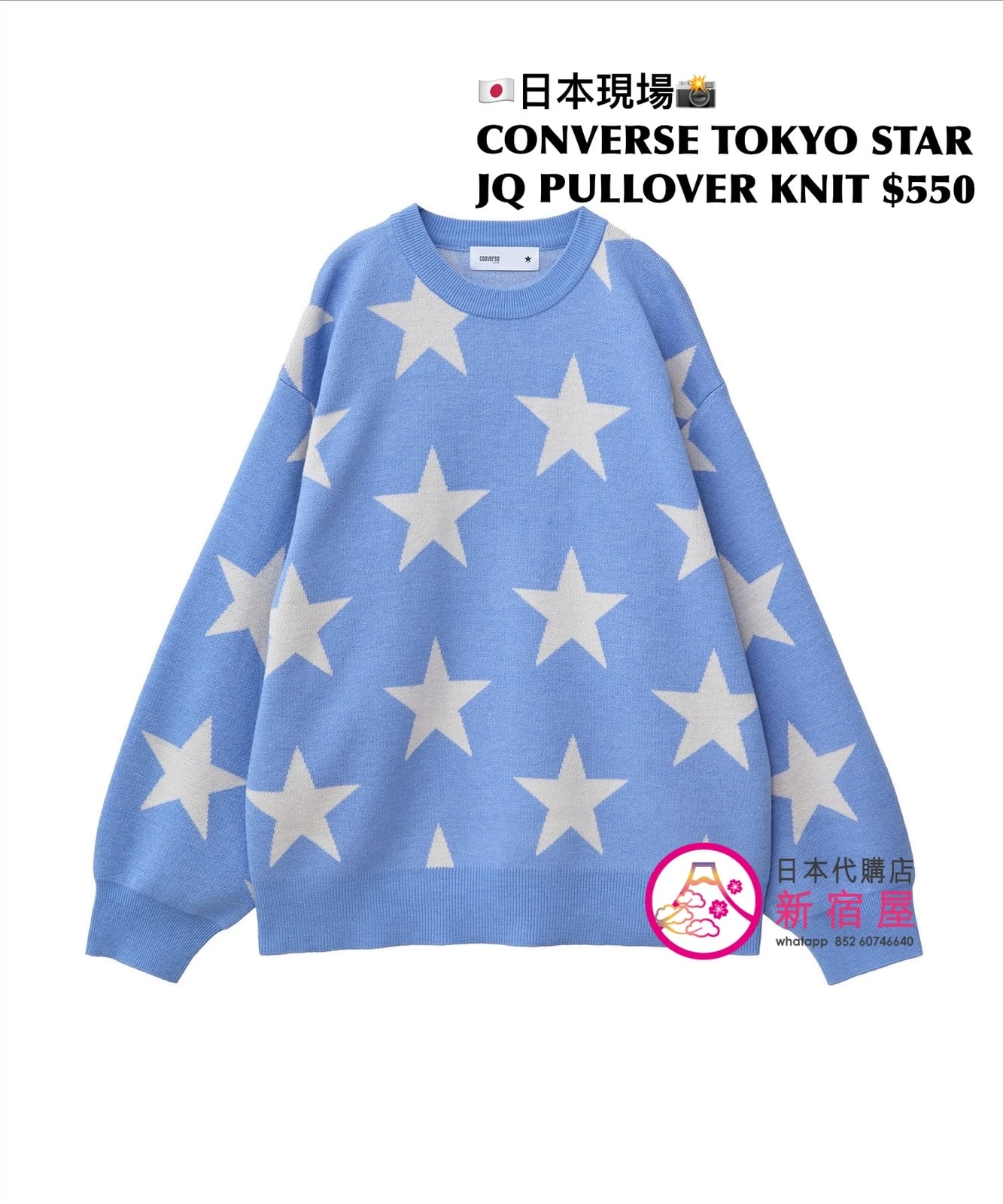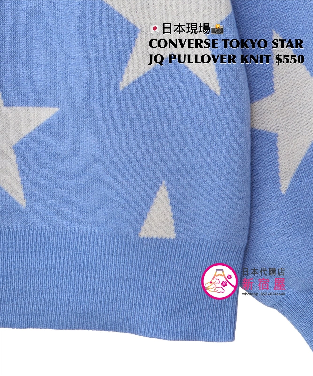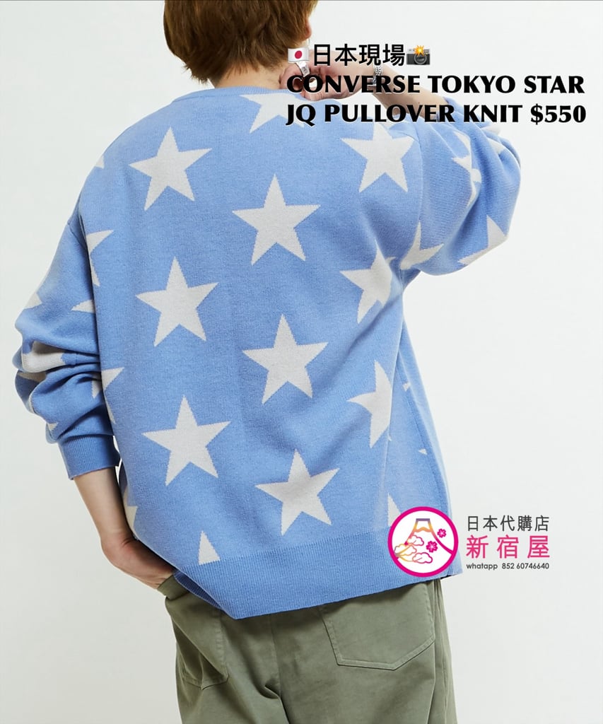 CONVERSE TOKYO STAR JACQUARD PULLOVER KNIT SIZE S,PINK/ SAX BLUE,$550 👚參考尺寸 SIZE S: 身幅 61 著丈 65cm