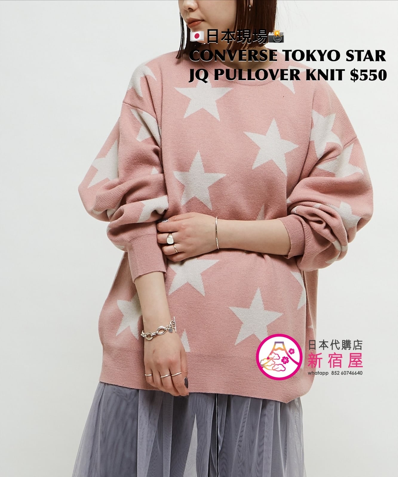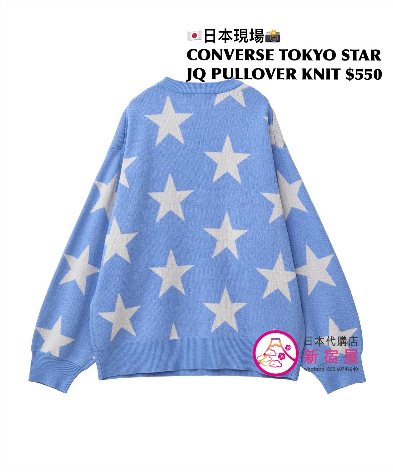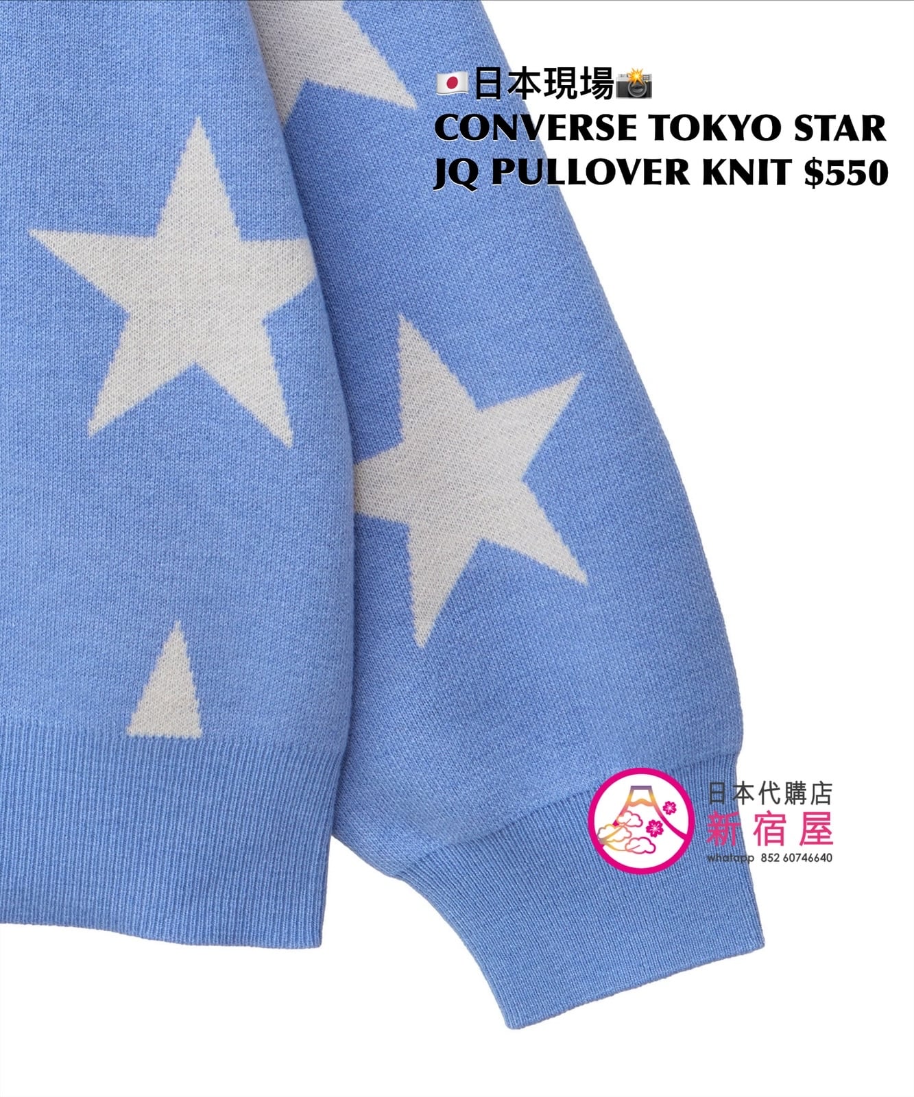 CONVERSE TOKYO STAR JACQUARD PULLOVER KNIT SIZE S,PINK/ SAX BLUE,$550 👚參考尺寸 SIZE S: 身幅 61 著丈 65cm