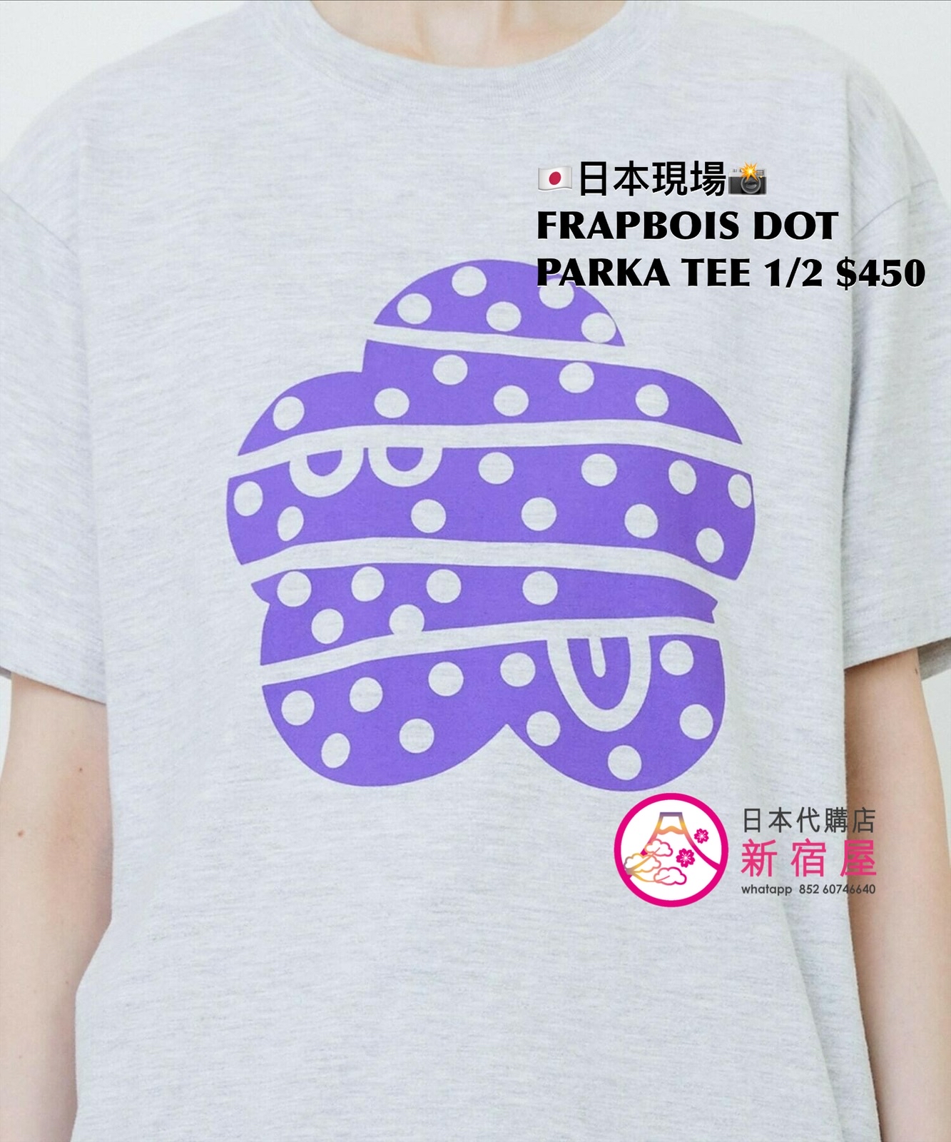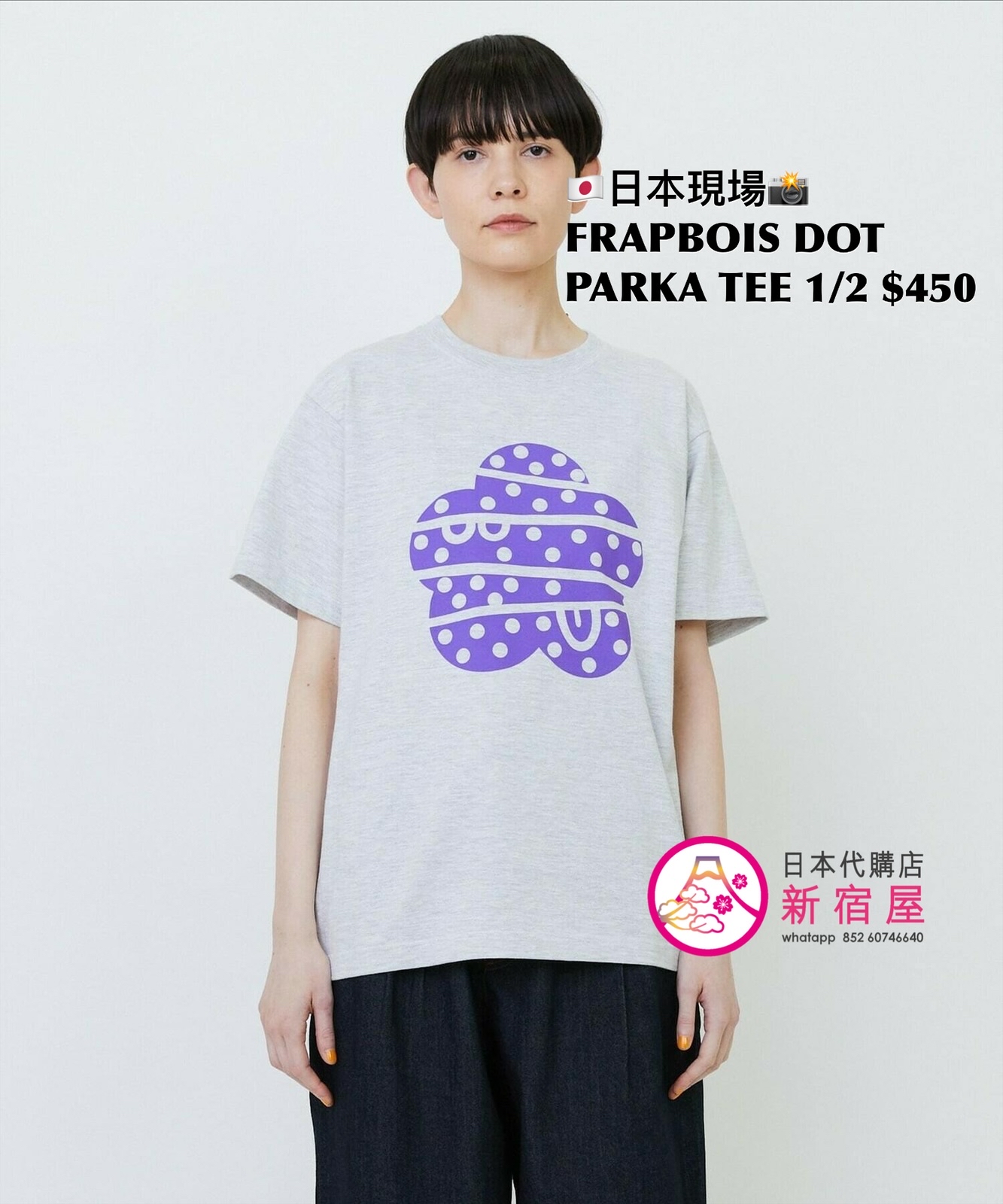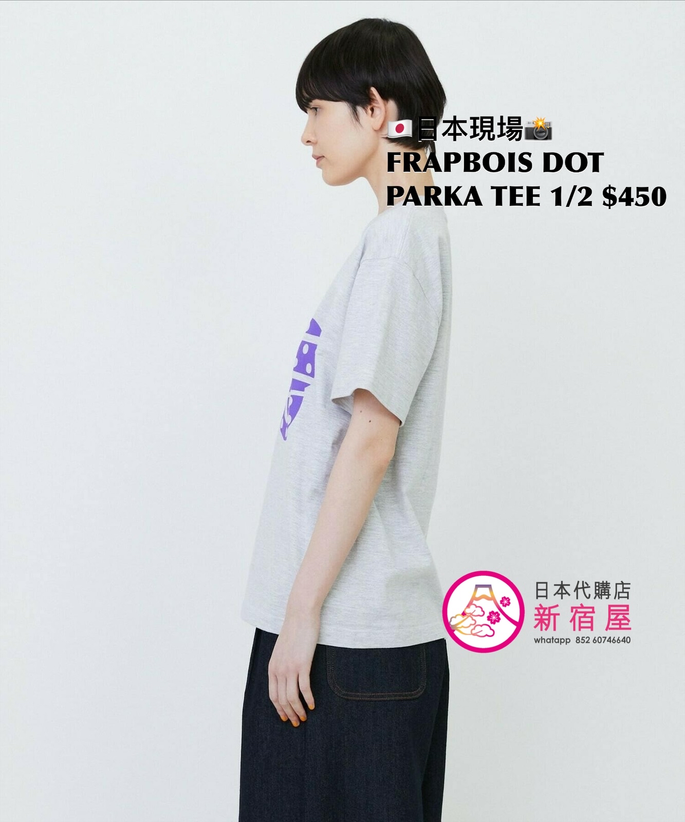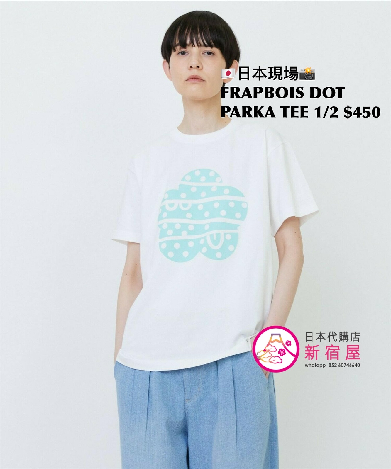 FRAPBOIS DOT PARKA T-SHIRT SIZE 1/2,WHITE/ GRAY,$450 👕👚參考尺寸 SIZE 1: 身幅 52 著丈 67cm SIZE 2: 身幅 57 著丈 76cm
