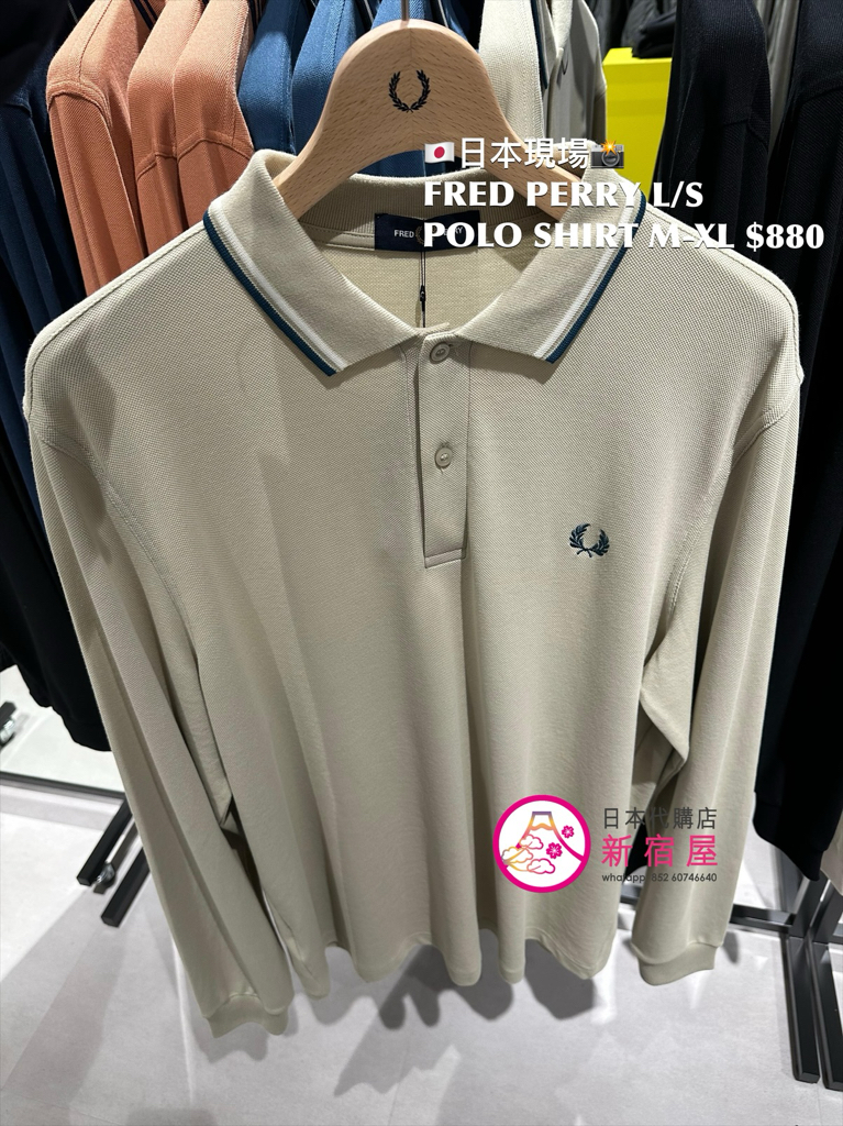 FRED PERRY L/S POLO SHIRT SIZE M-XL,NAVY/ BLACK/ BROWN/ BEIGE/ WHITE,$880
