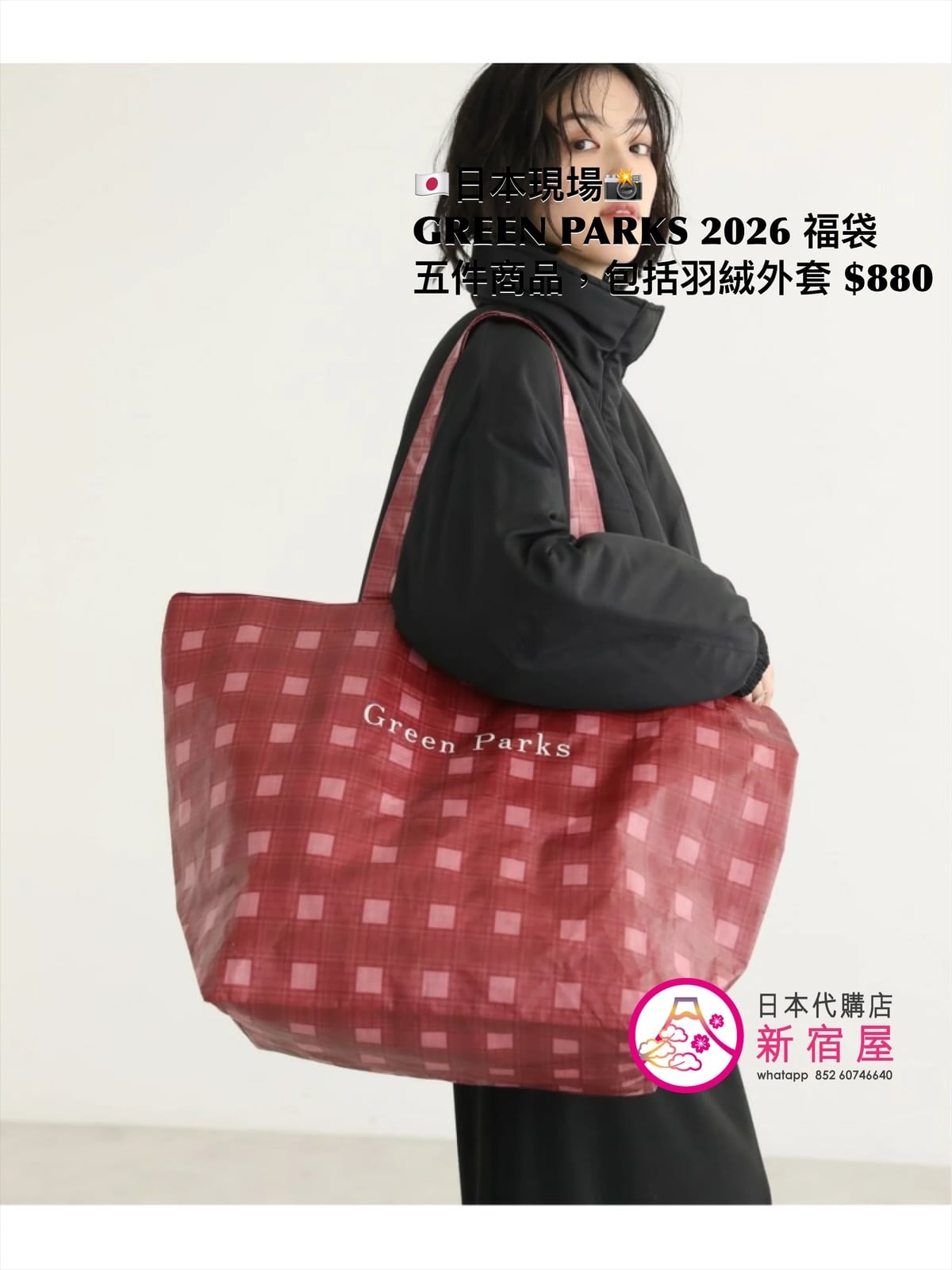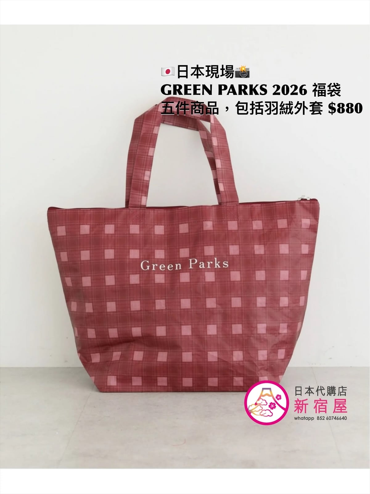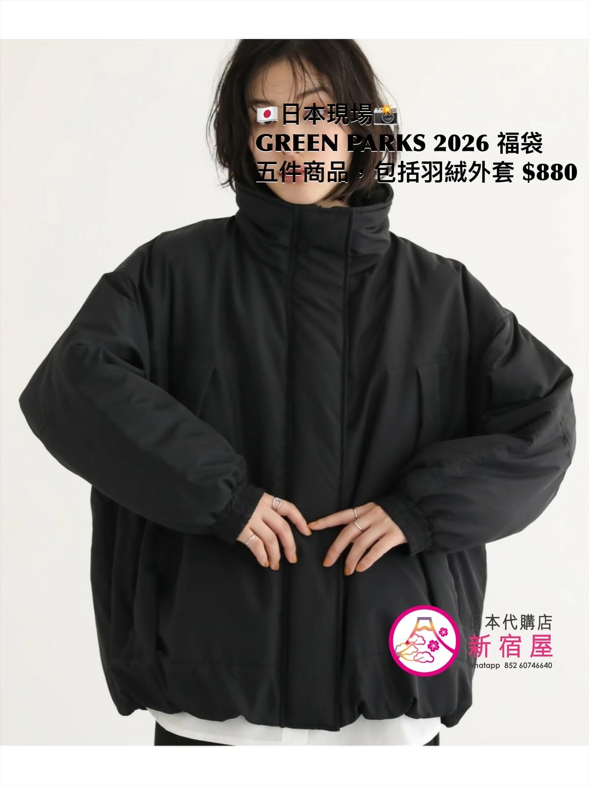 GREEN PARKS 福袋 HAPPY BAG 2026 價格已包括國際及本地運費,可選到順豐站或智能櫃取件 五件商品,包括羽絨外套,另有上衣,褲子和內搭,$880