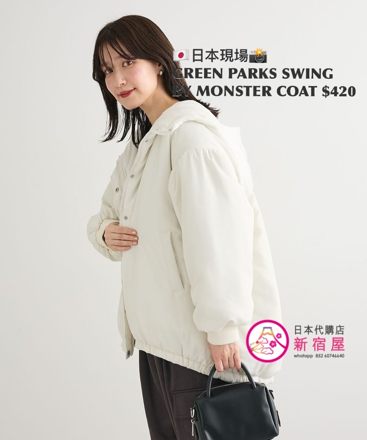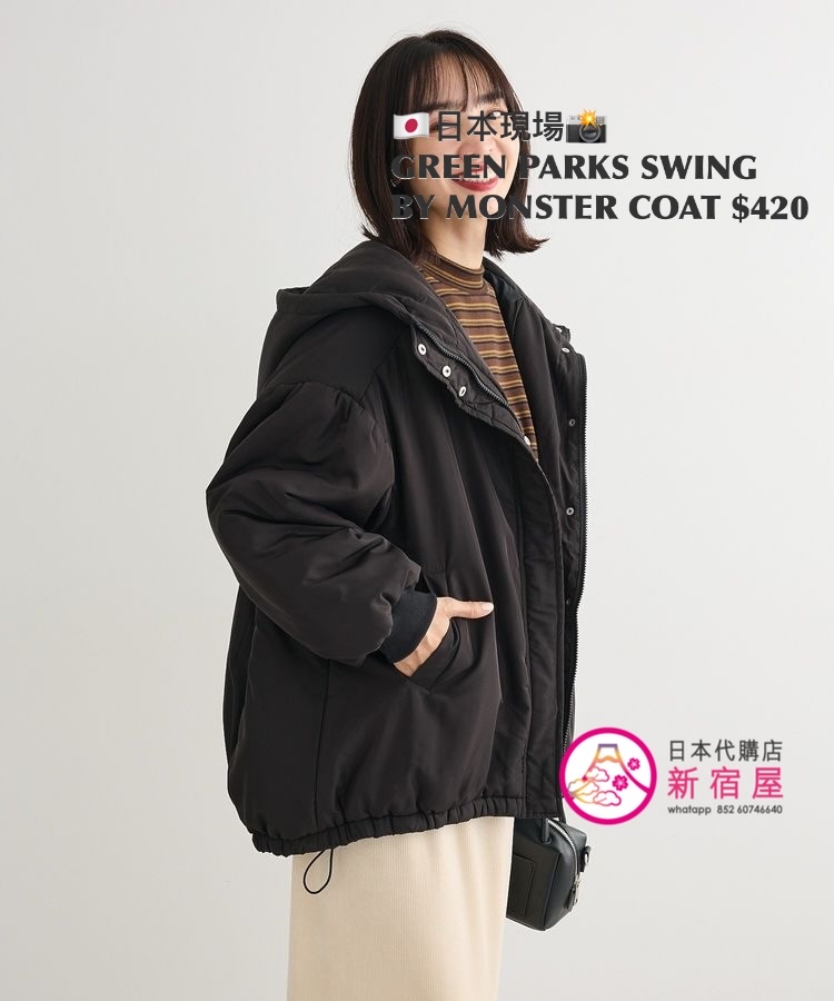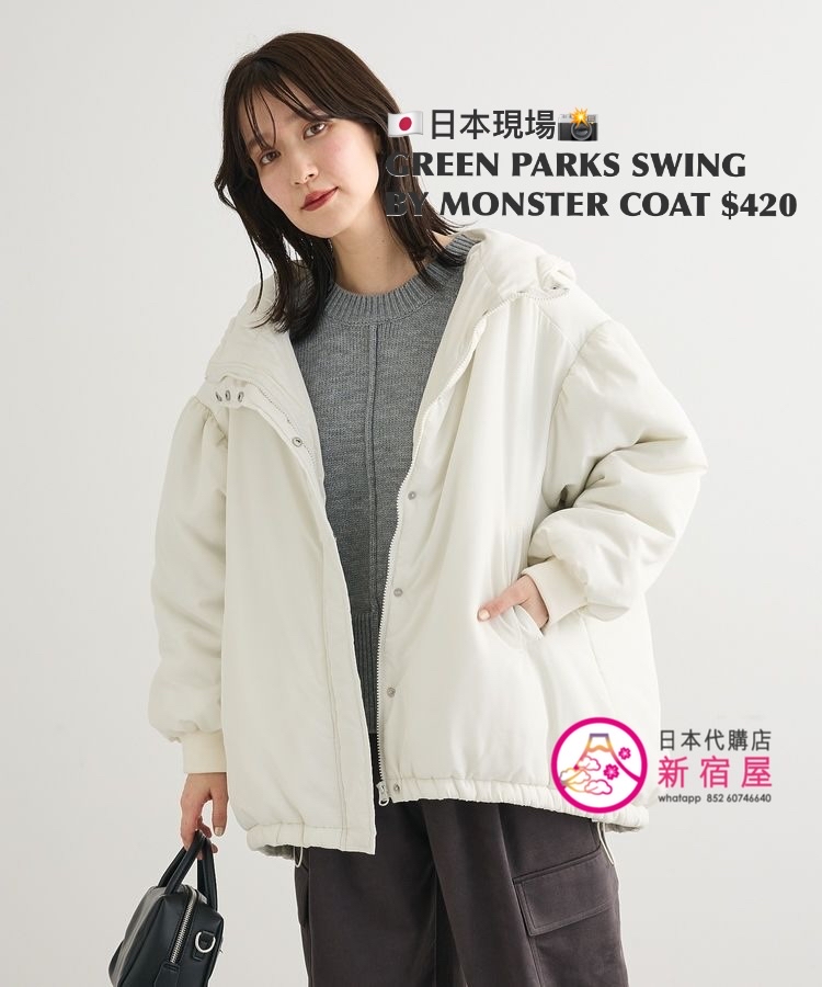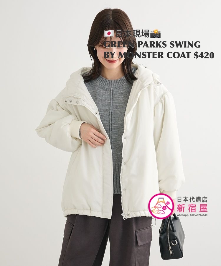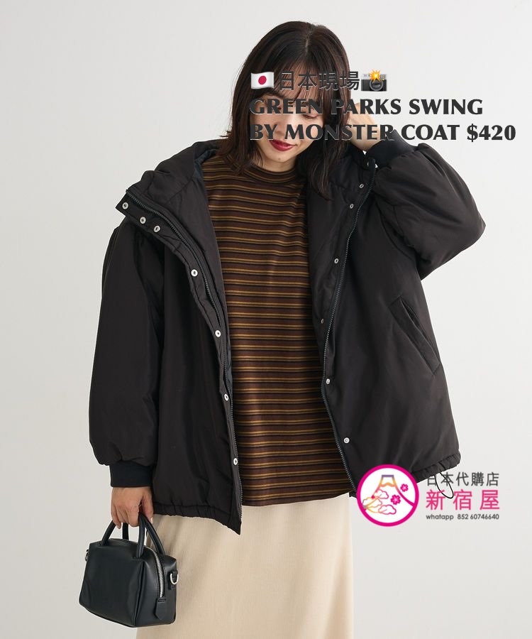 GREEN PARKS SWING BY MONSTER COAT FREE SIZE,IVORY/ BLACK/ BORDEAUX/ KHAKI,$420 👚參考尺寸 FREE SIZE: 身幅 69.5 身丈 68/78cm