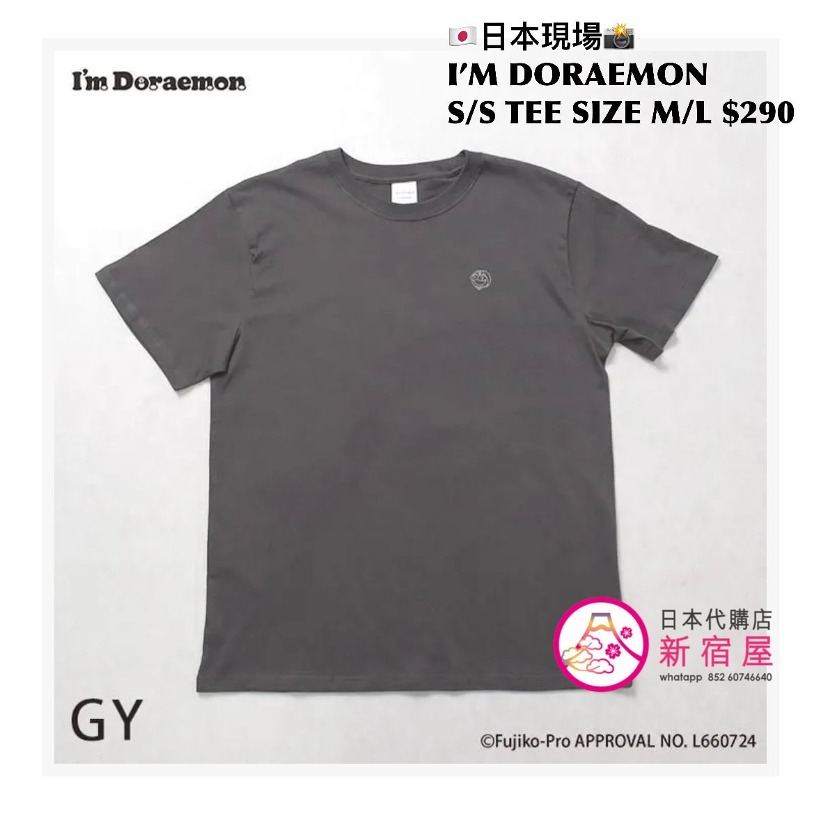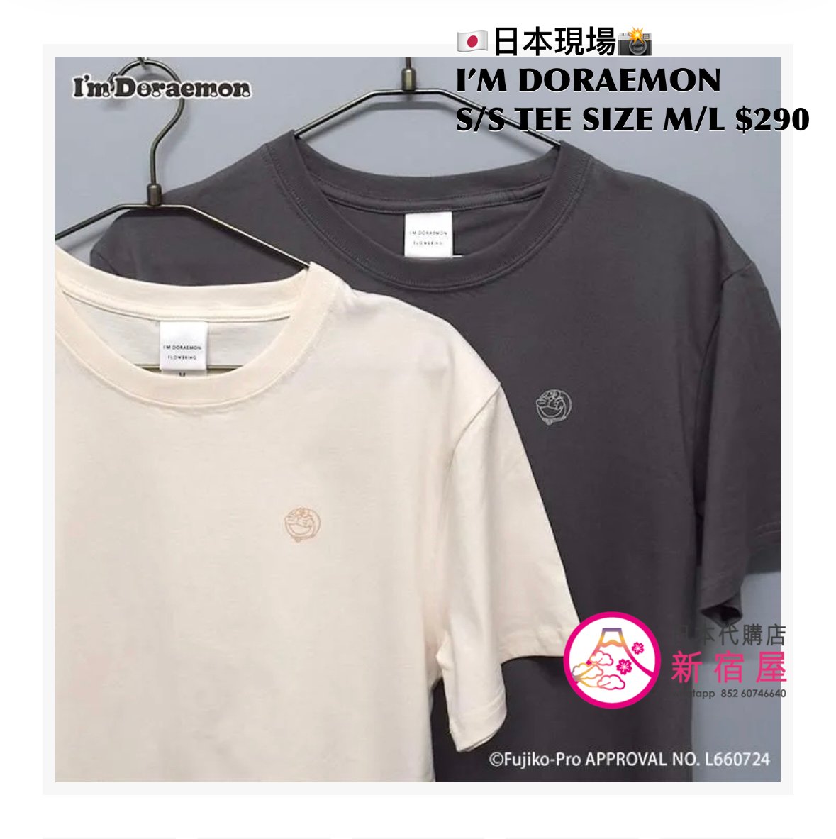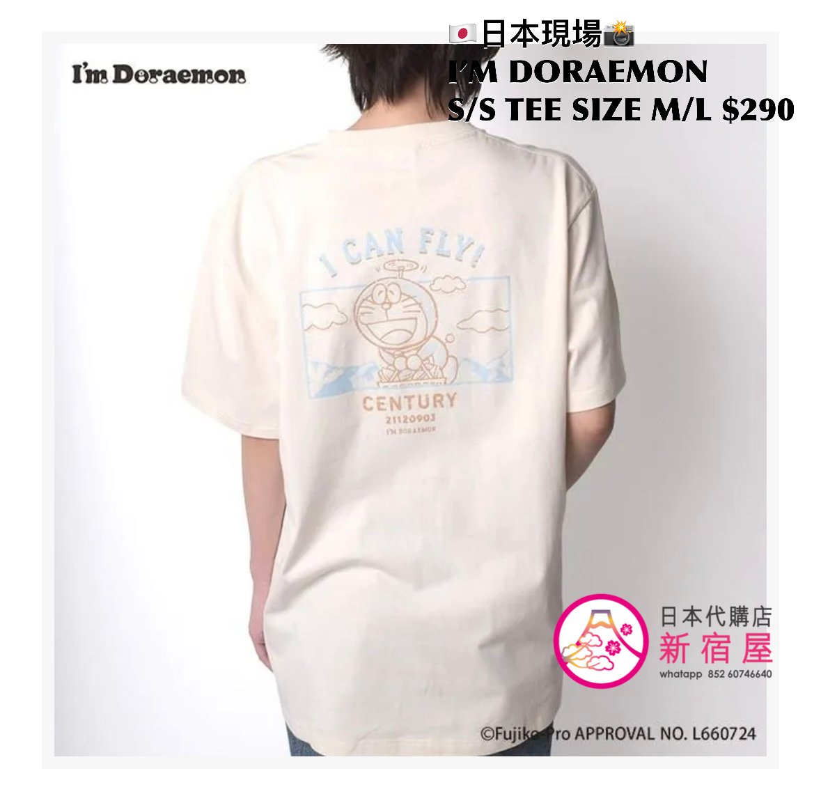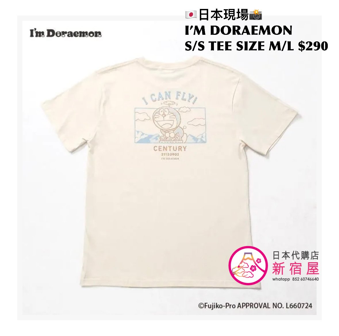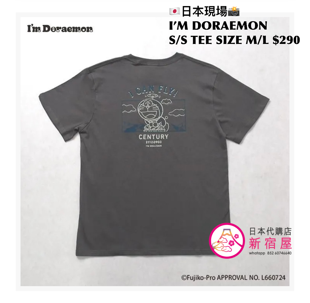 I’M DORAEMON S/S T-SHIRT SIZE M/L,IVORY/ GRAY,$290 👕👚參考尺寸 SIZE M: 身幅 52 著丈 69cm SIZE L: 身幅 55 著丈 76cm