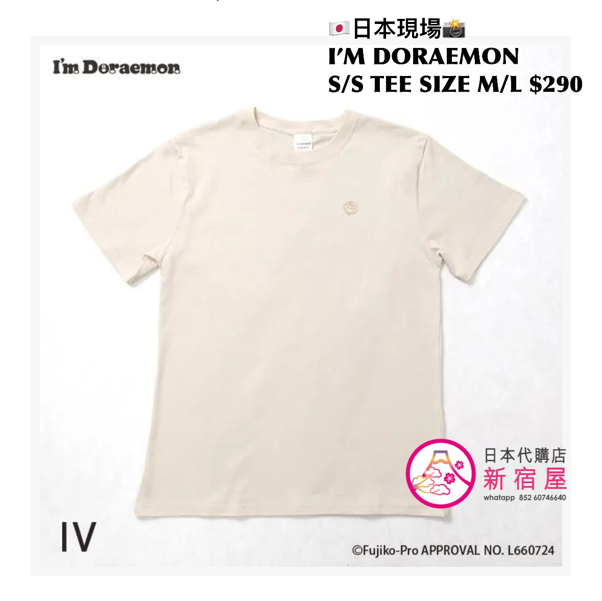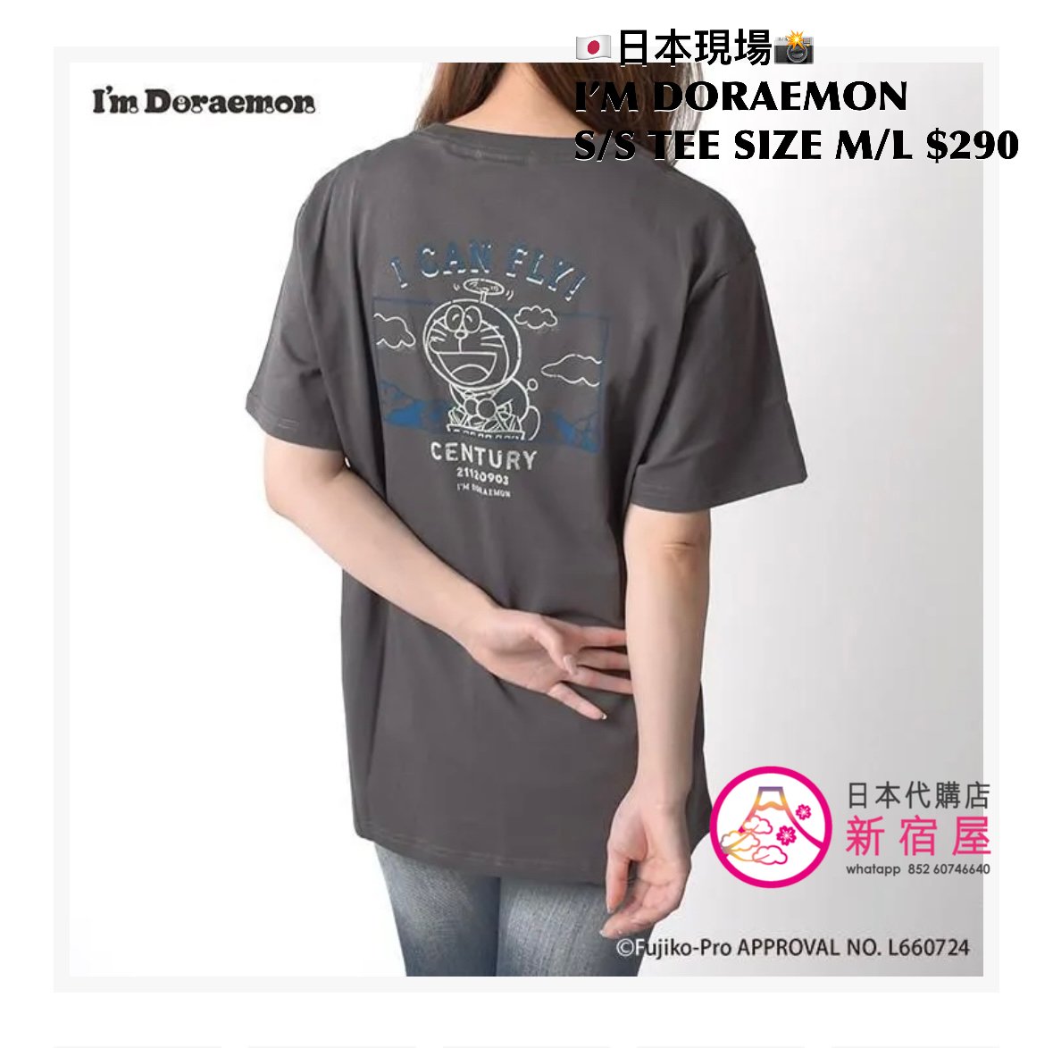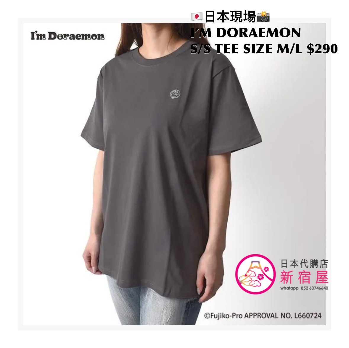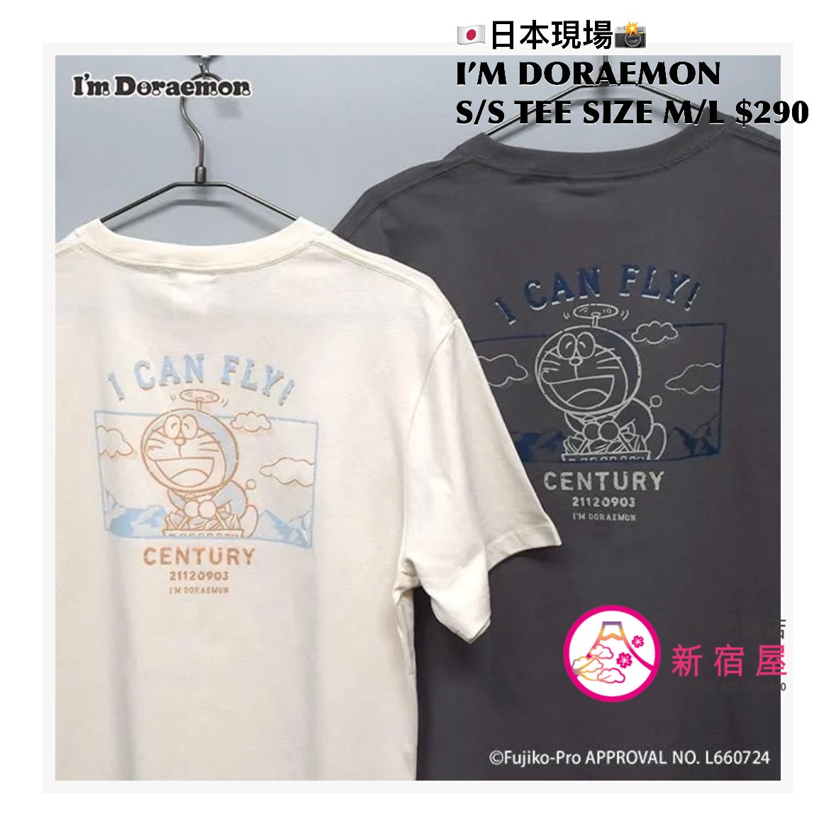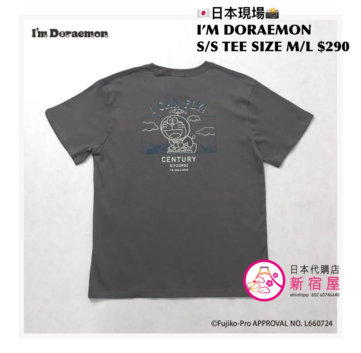 I’M DORAEMON S/S T-SHIRT SIZE M/L,IVORY/ GRAY,$290 👕👚參考尺寸 SIZE M: 身幅 52 著丈 69cm SIZE L: 身幅 55 著丈 76cm
