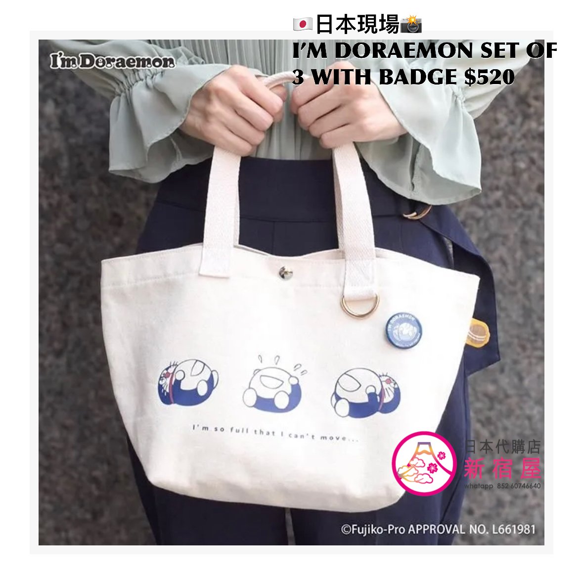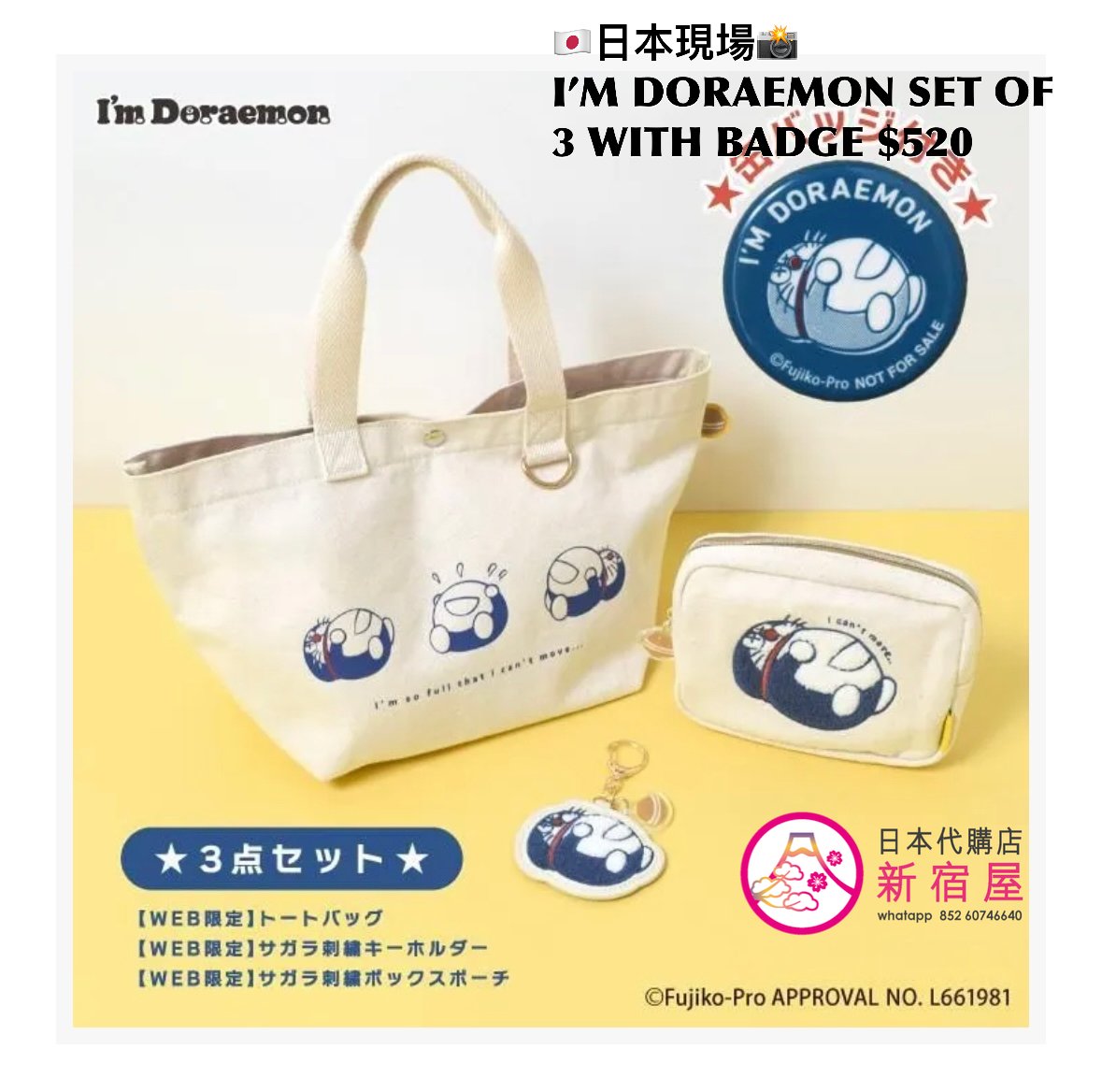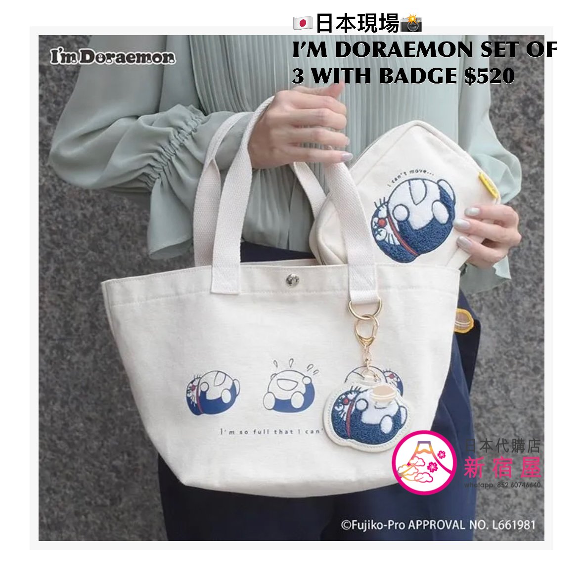 I’M DORAEMON TOTE BAG/ KEYCHAIN/ BOX POUCH PIECE OF 3,WITH BUTTON BADGE,$520