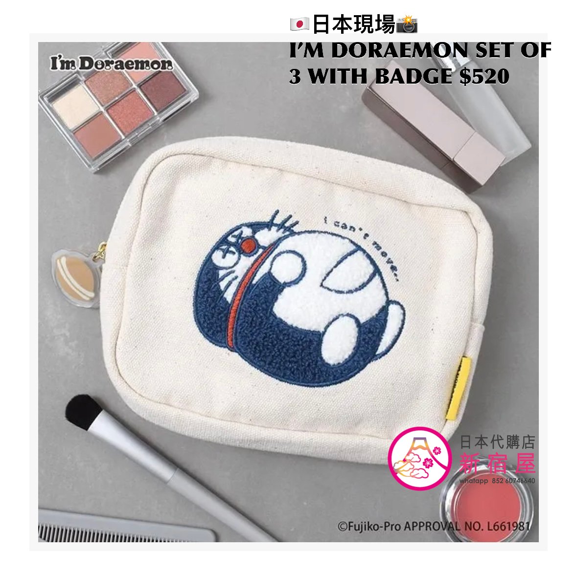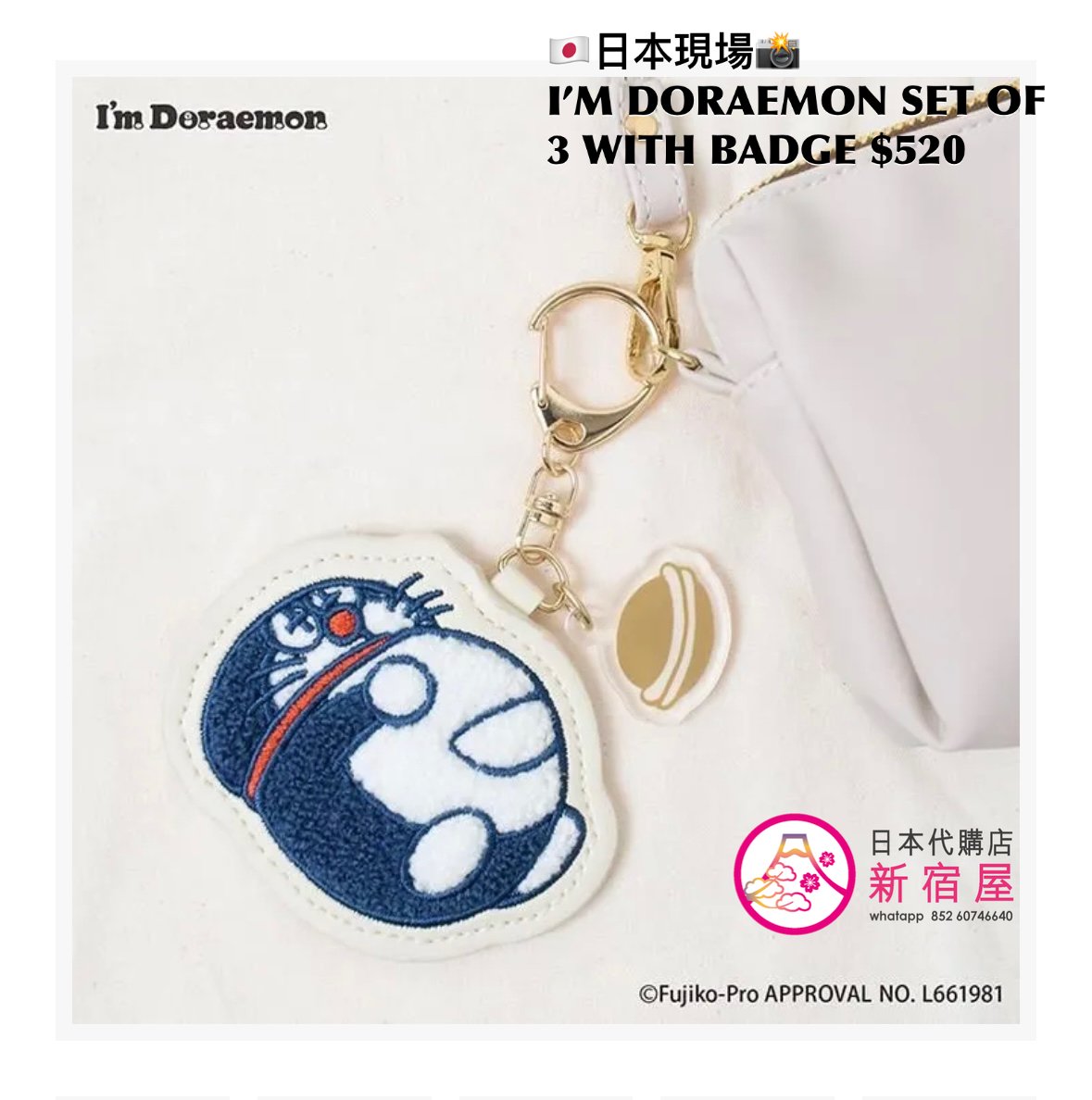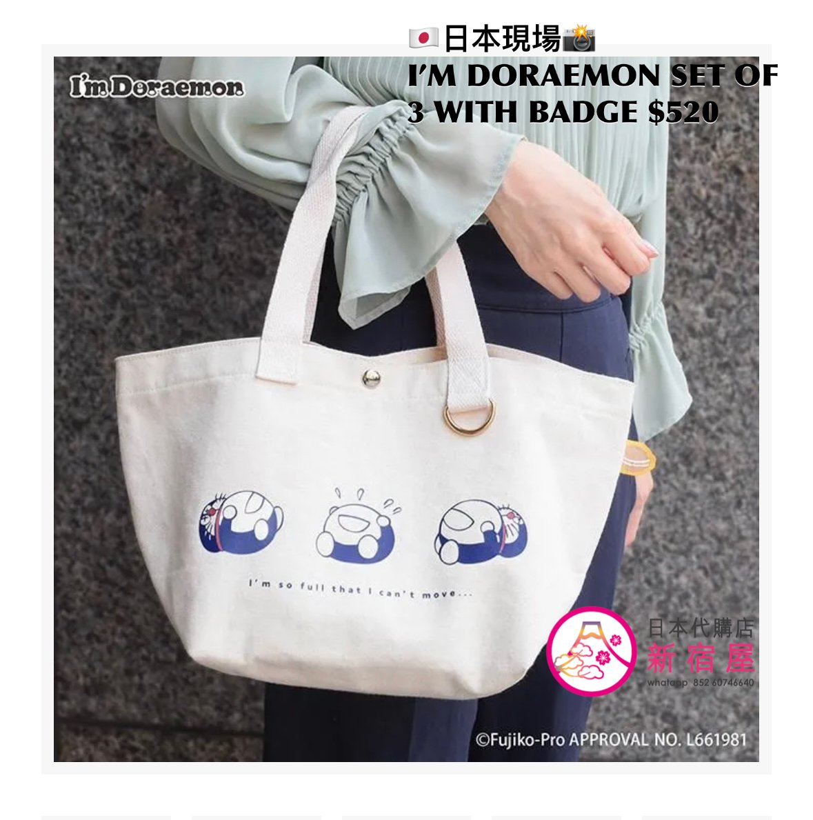I’M DORAEMON TOTE BAG/ KEYCHAIN/ BOX POUCH PIECE OF 3,WITH BUTTON BADGE,$520