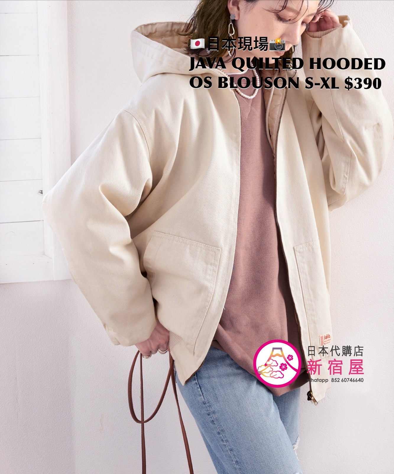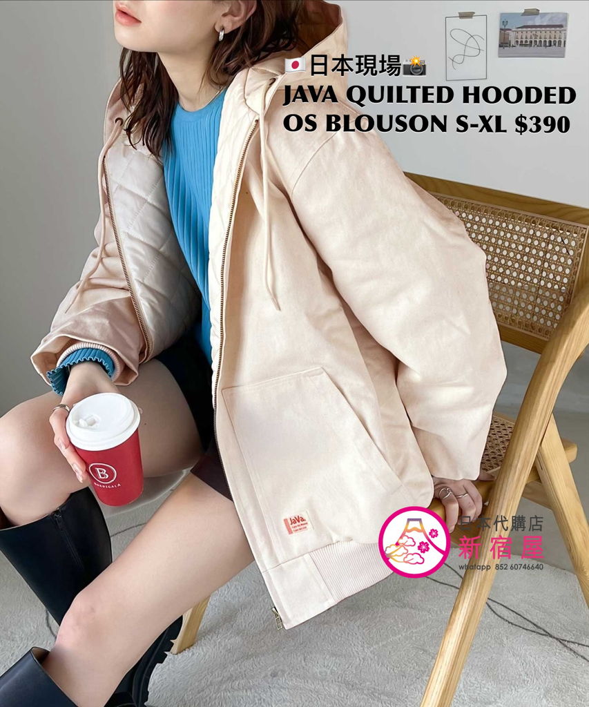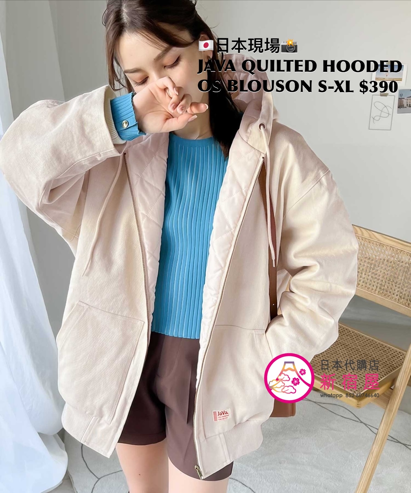 JAVA QUILTED HOODED OVERSIZE BLOUSON SIZE S-XL,IVORY/ BLACK/ BEIGE,$390 👚參考尺寸 SIZE S: 身幅 65 著丈 69cm SIZE M: 身幅 68.5 著丈 69.5cm SIZE L: 身幅 70.5 著丈 70cm SIZE XL: 身幅 73 著丈 75cm