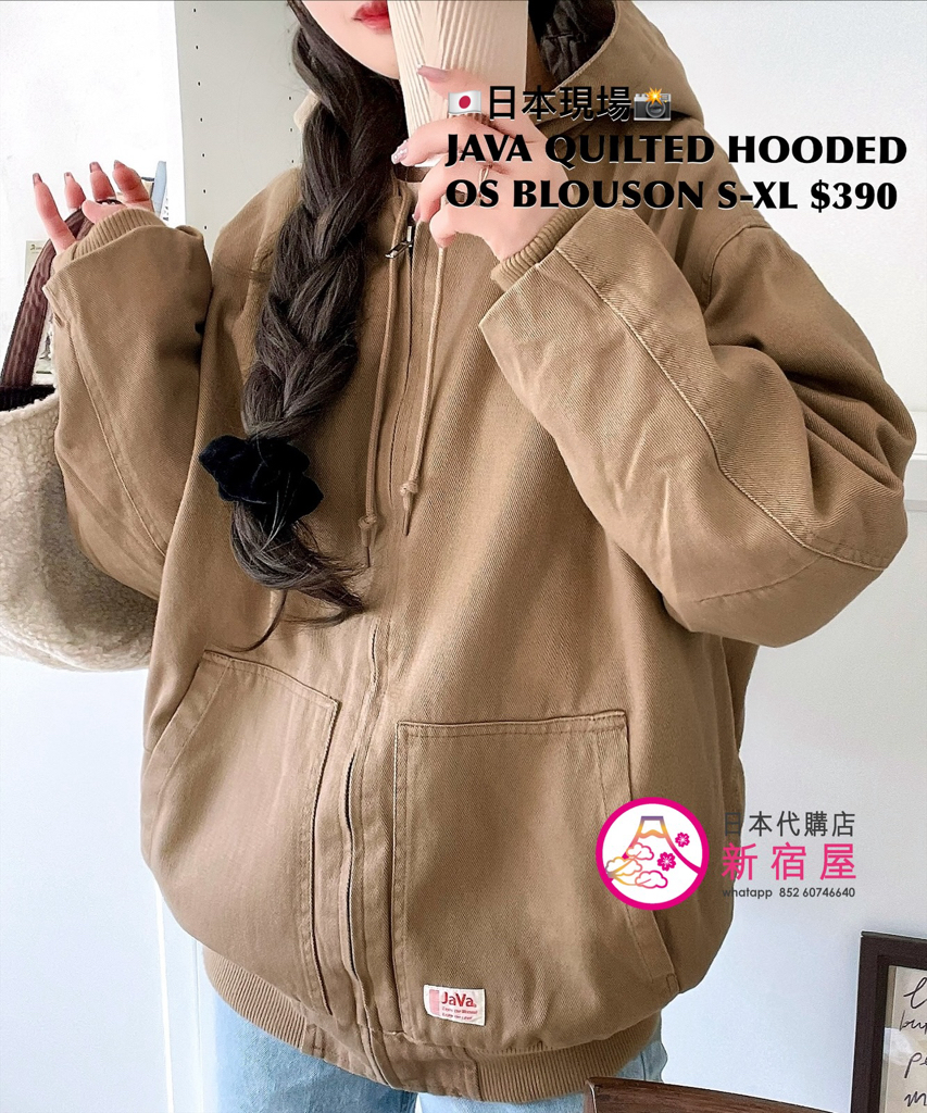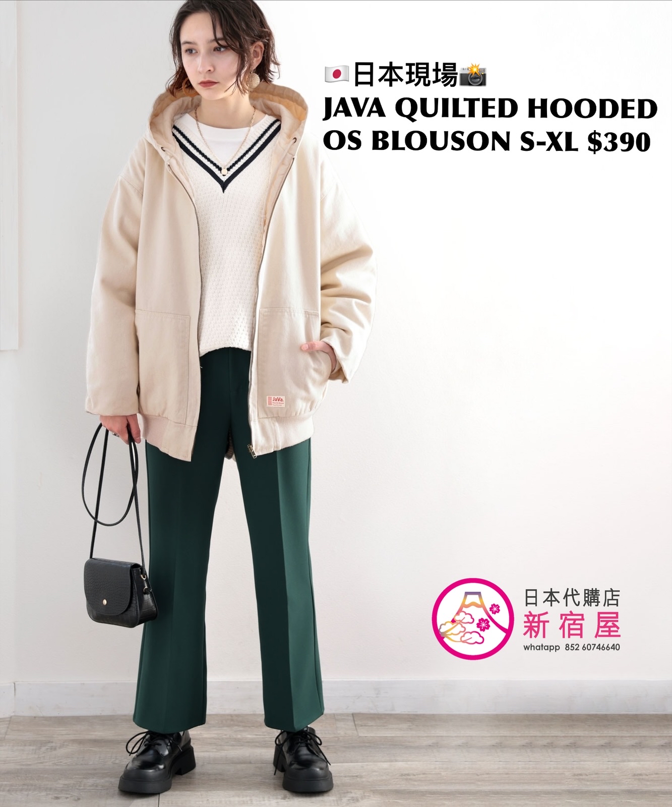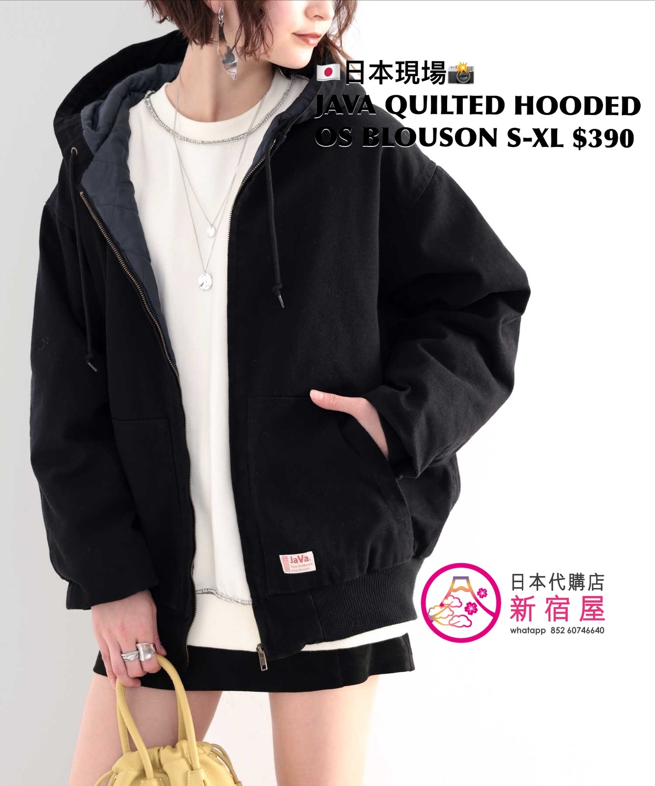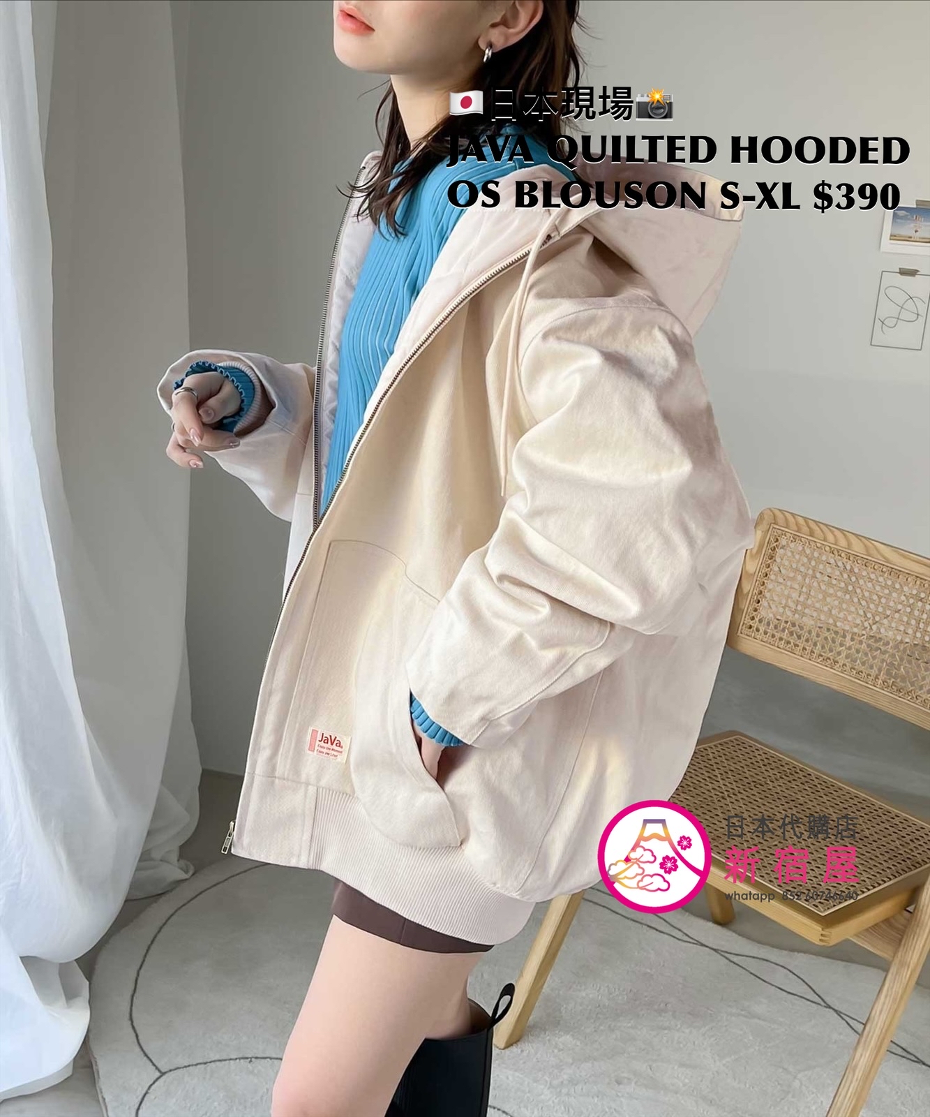 JAVA QUILTED HOODED OVERSIZE BLOUSON SIZE S-XL,IVORY/ BLACK/ BEIGE,$390 👚參考尺寸 SIZE S: 身幅 65 著丈 69cm SIZE M: 身幅 68.5 著丈 69.5cm SIZE L: 身幅 70.5 著丈 70cm SIZE XL: 身幅 73 著丈 75cm
