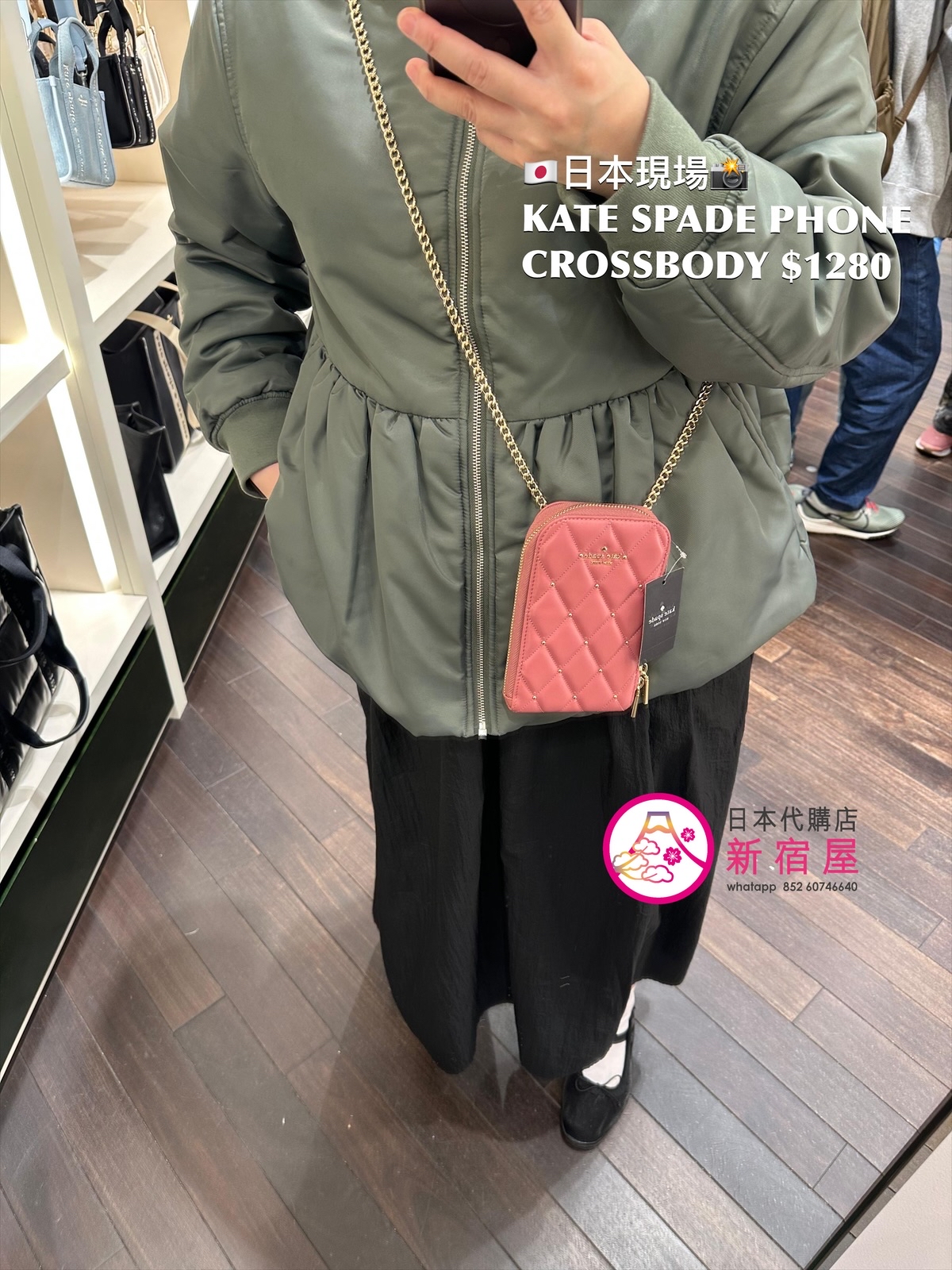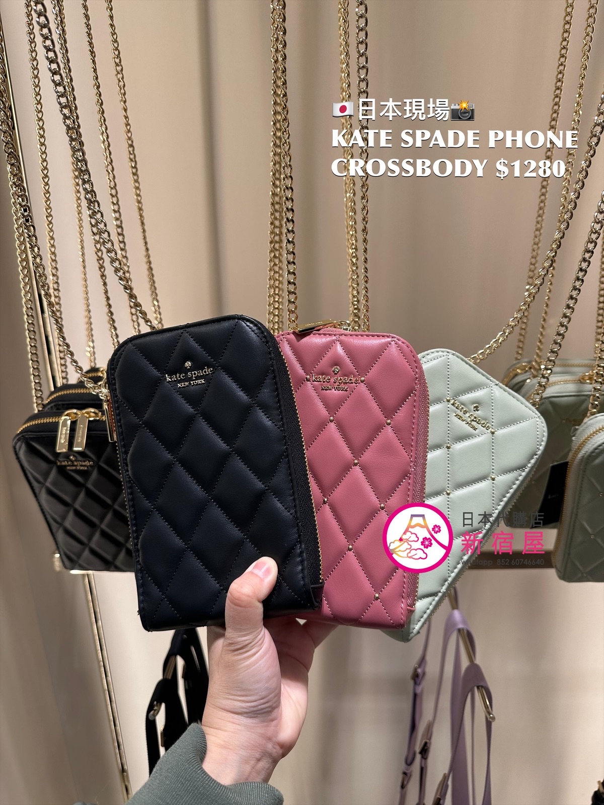 KATE SPADE PHONE CROSSBODY 18x3x11cm,BLACK/ PINK/ LIGHT GREEN,$1280