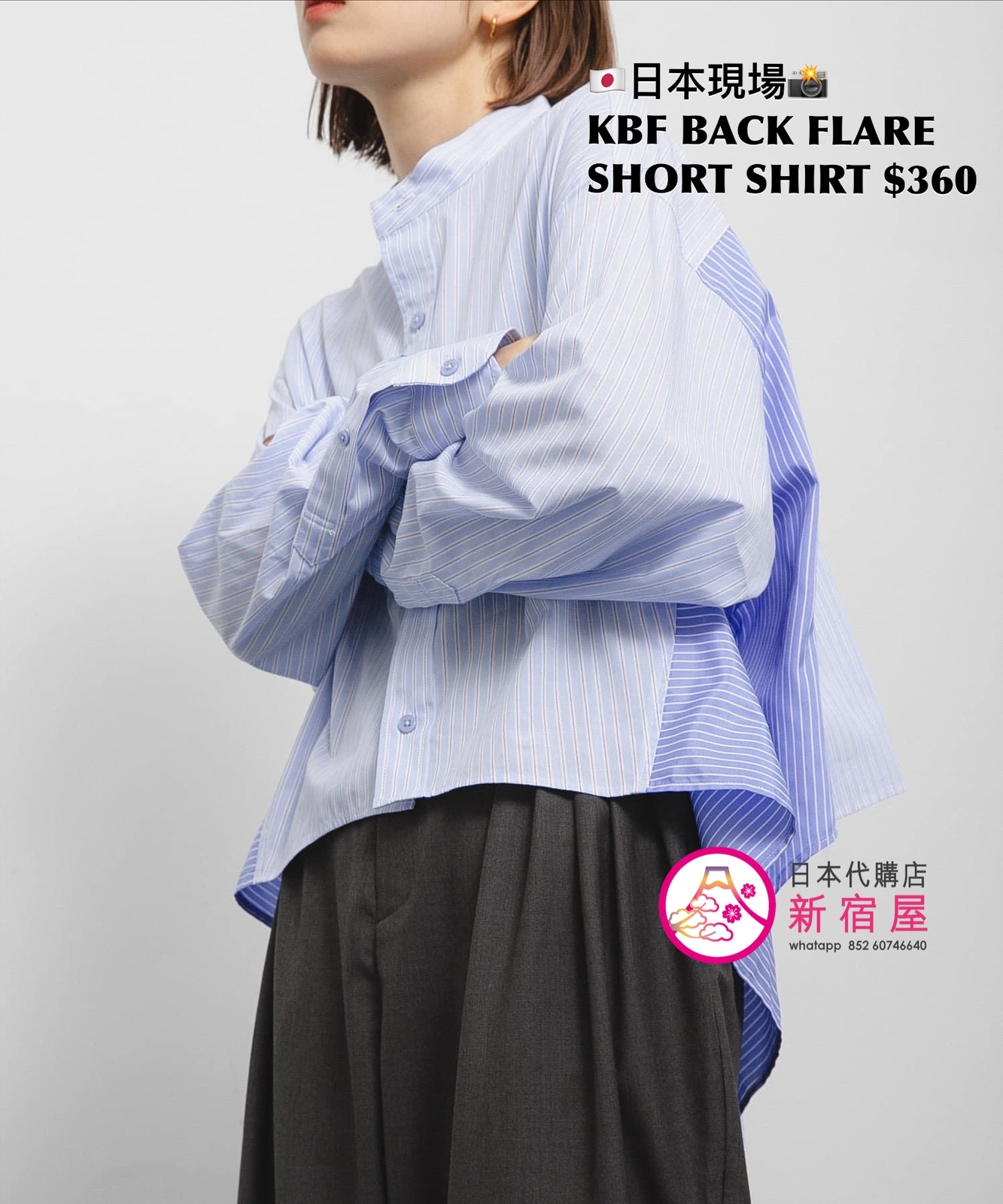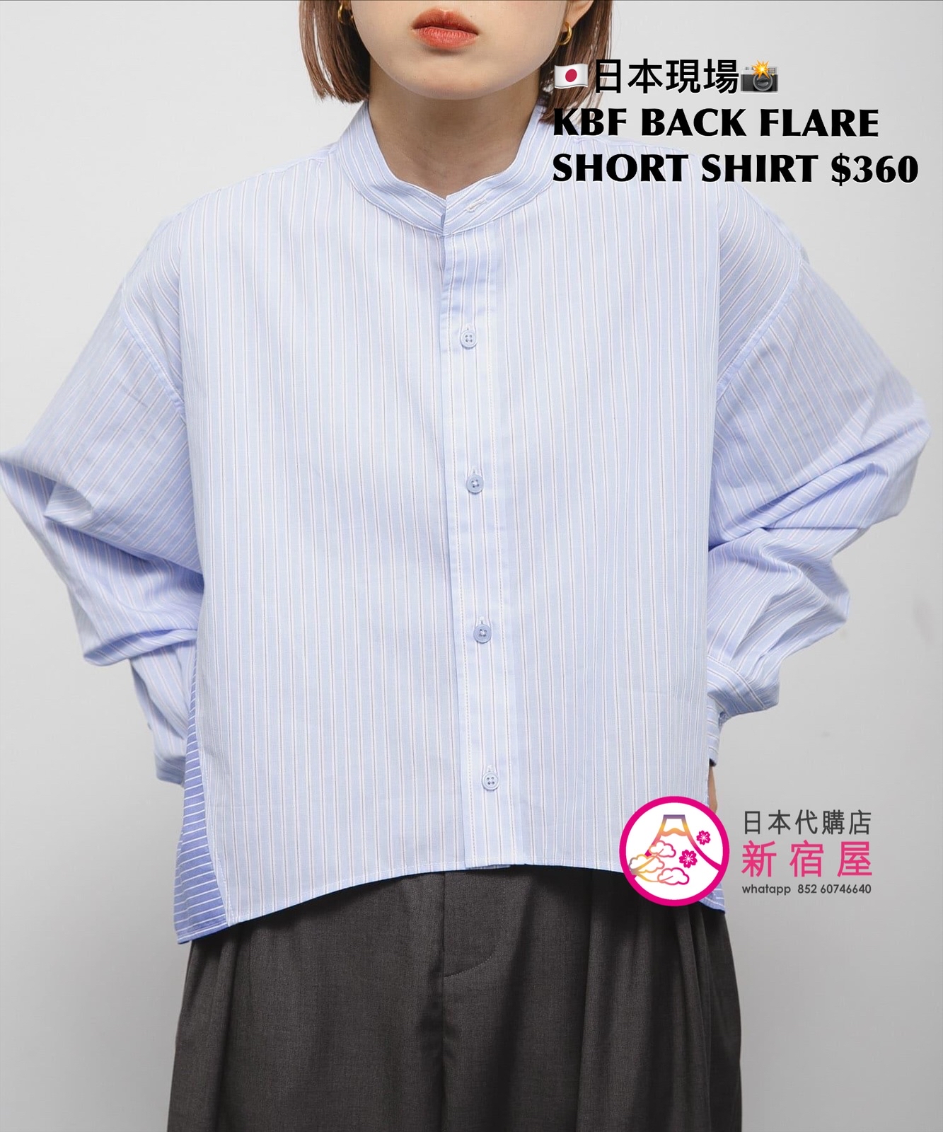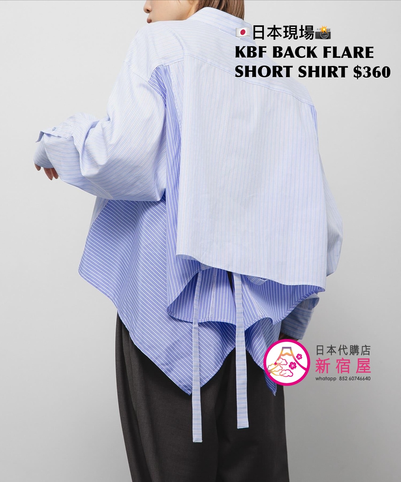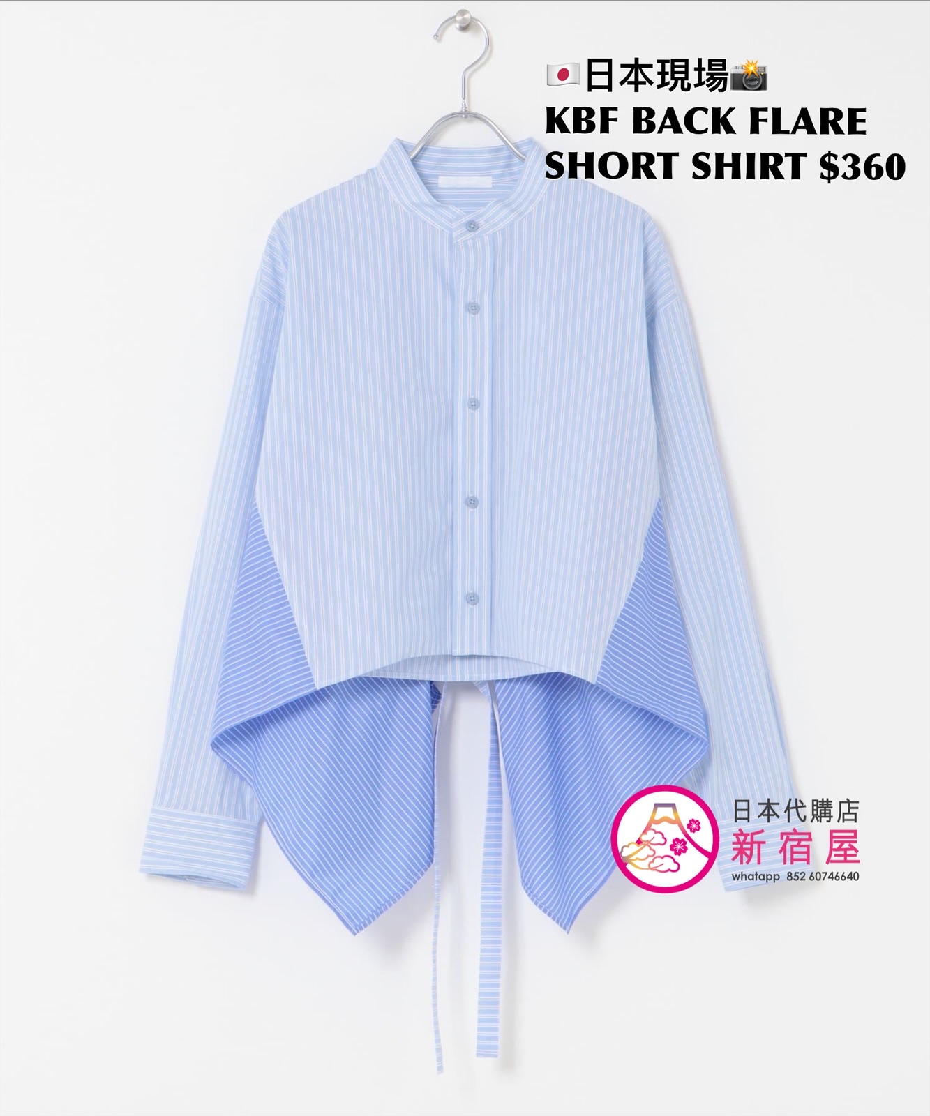 KBF BACK FLARE SHORT SHIRT ONE SIZE,BLUE,$360 👚參考尺寸 ONE SIZE: 身幅 78 著丈 48cm