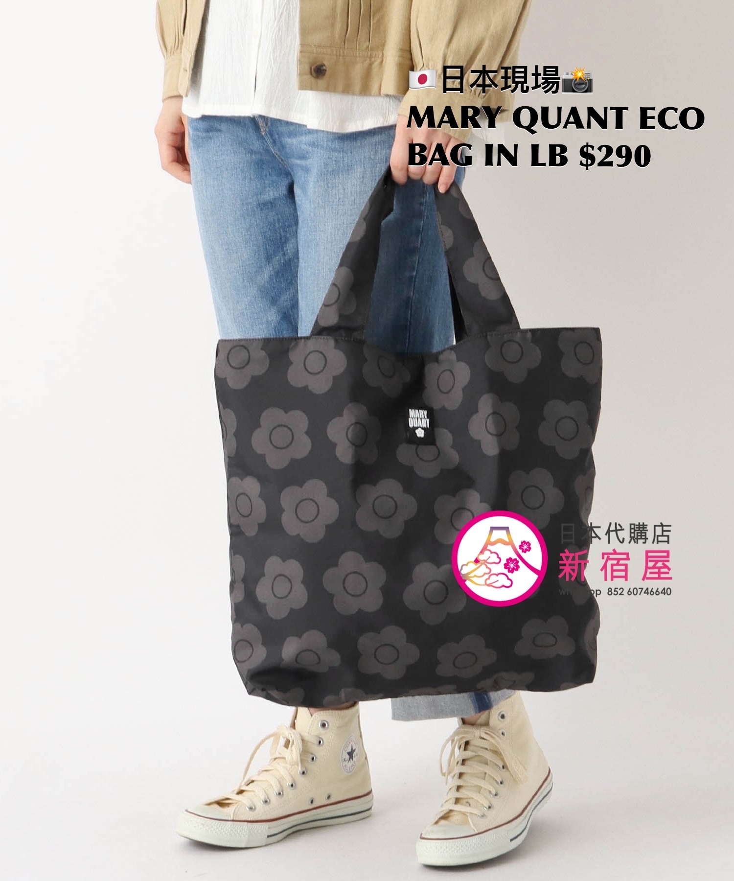 MARY QUANT ECO BAG IN LARGE BOX 41x10x38cm,BLACK,$290