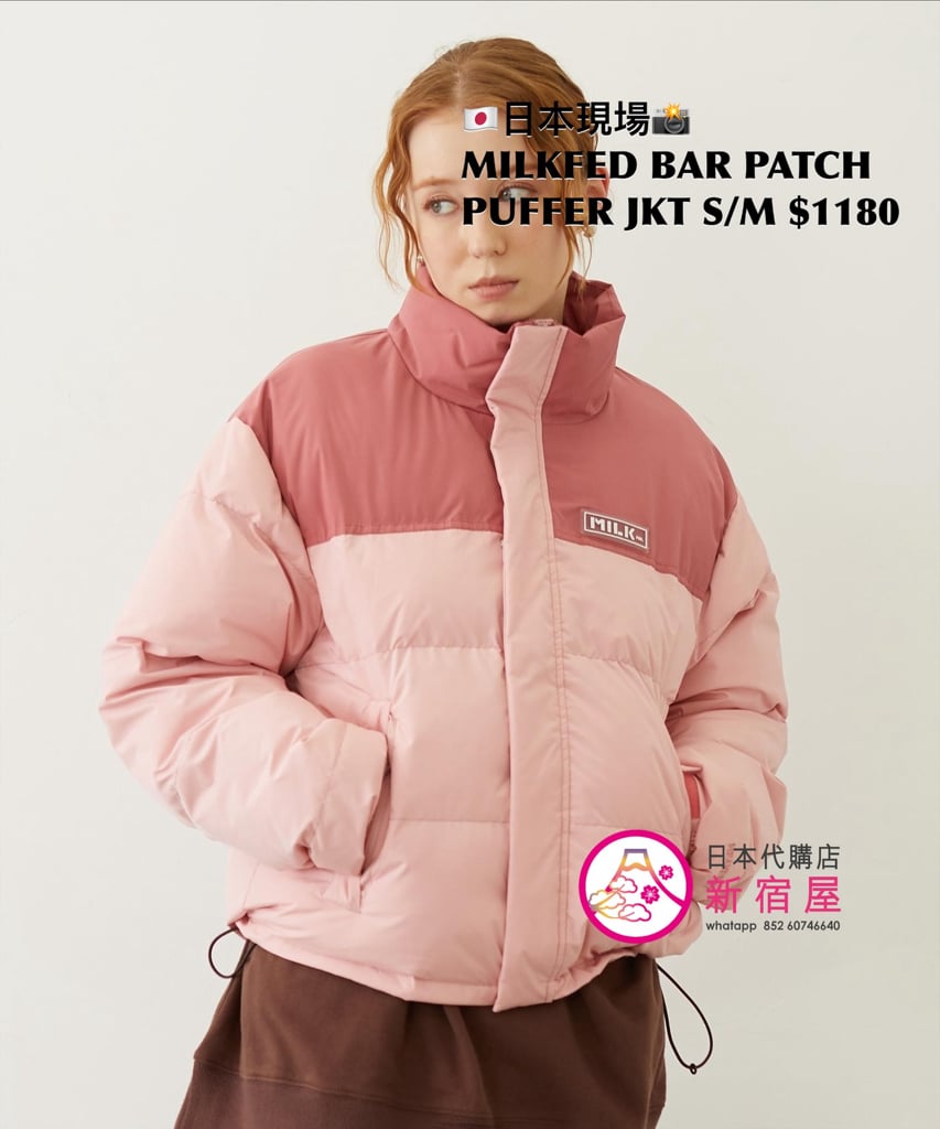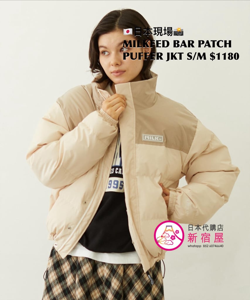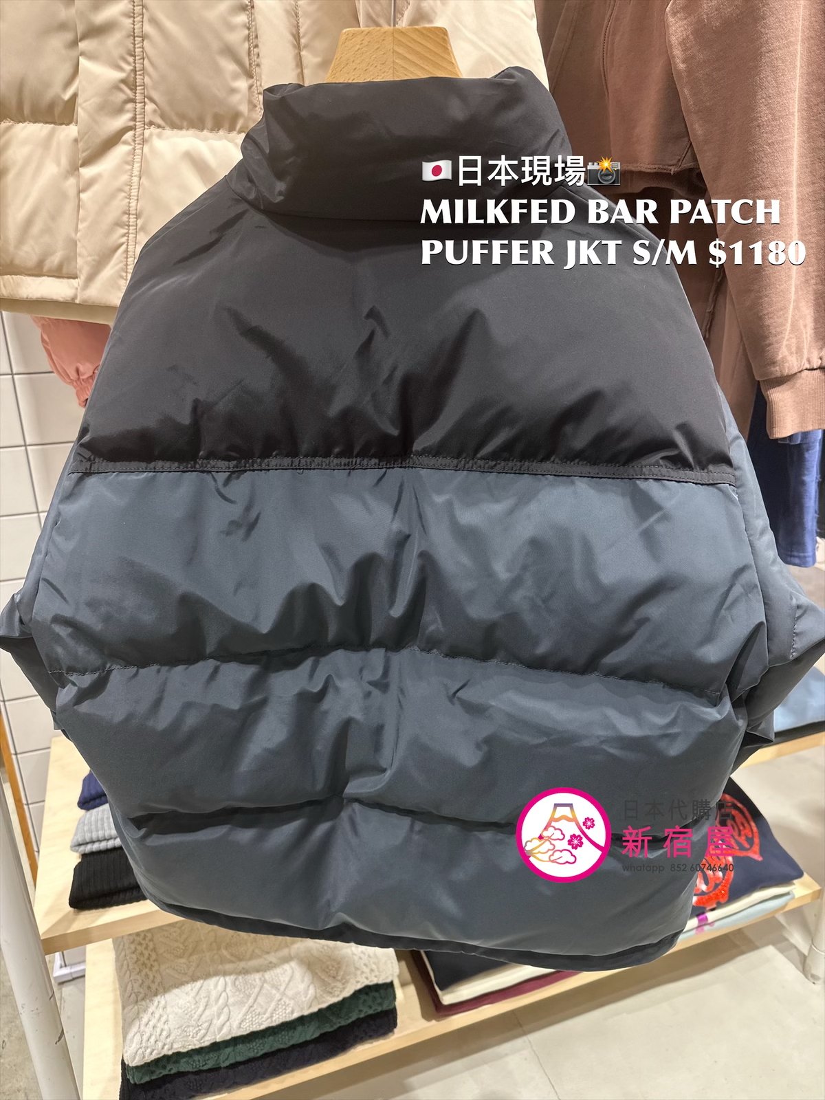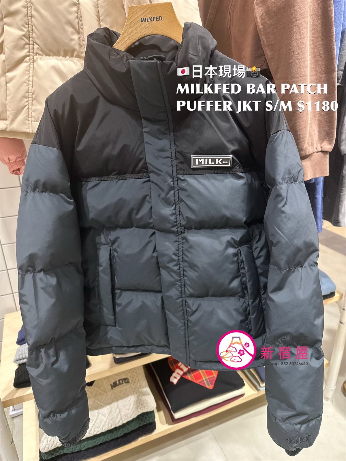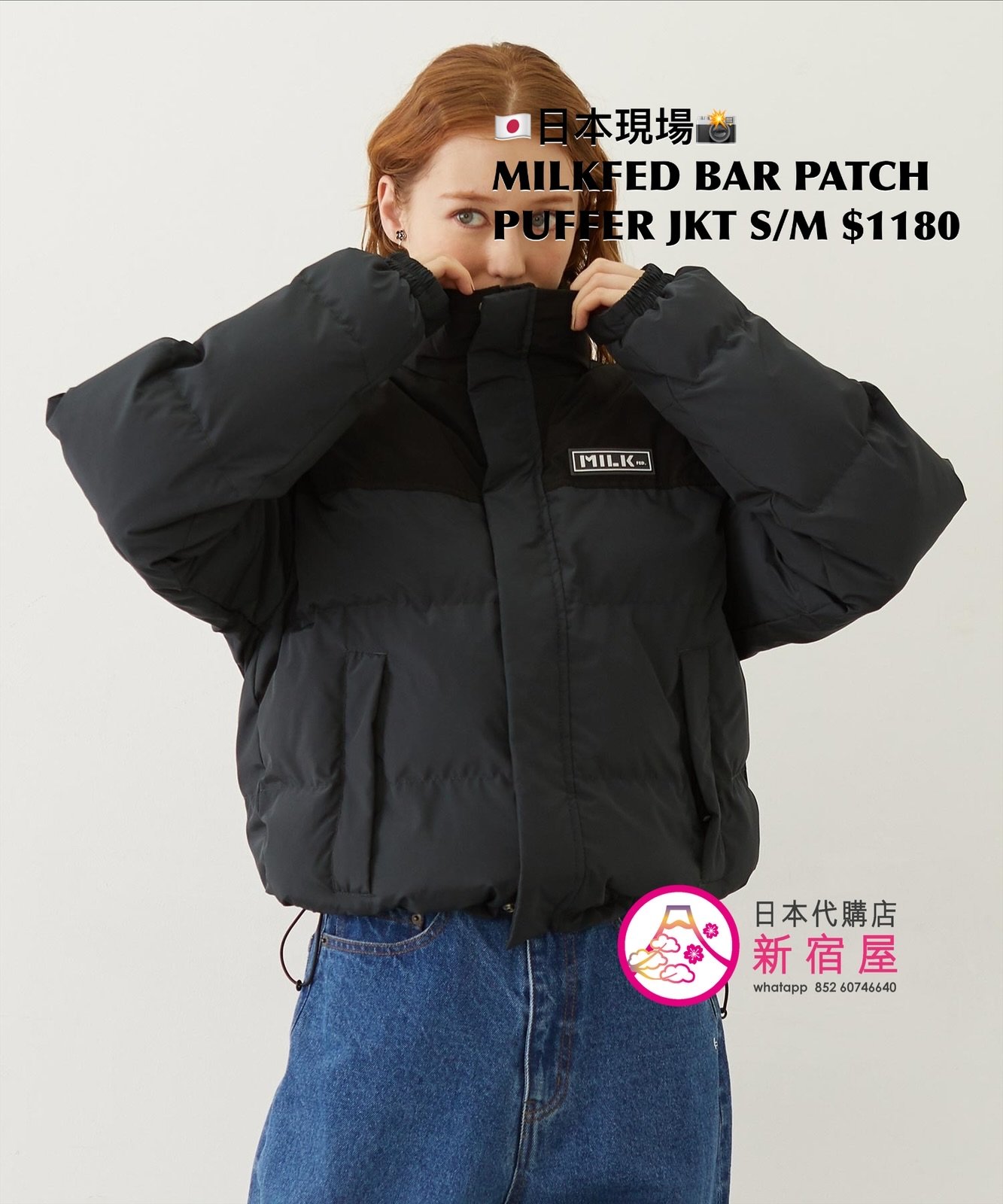 MILKFED BAR PATCH PUFFER JACKET SIZE S/M,OFF WHITE/ BLACK/ LIGHT PINK,$1180 🧥參考尺寸 SIZE S: 身幅 58.5 著丈 59cm SIZE M: 身幅 60.5 著丈 61cm