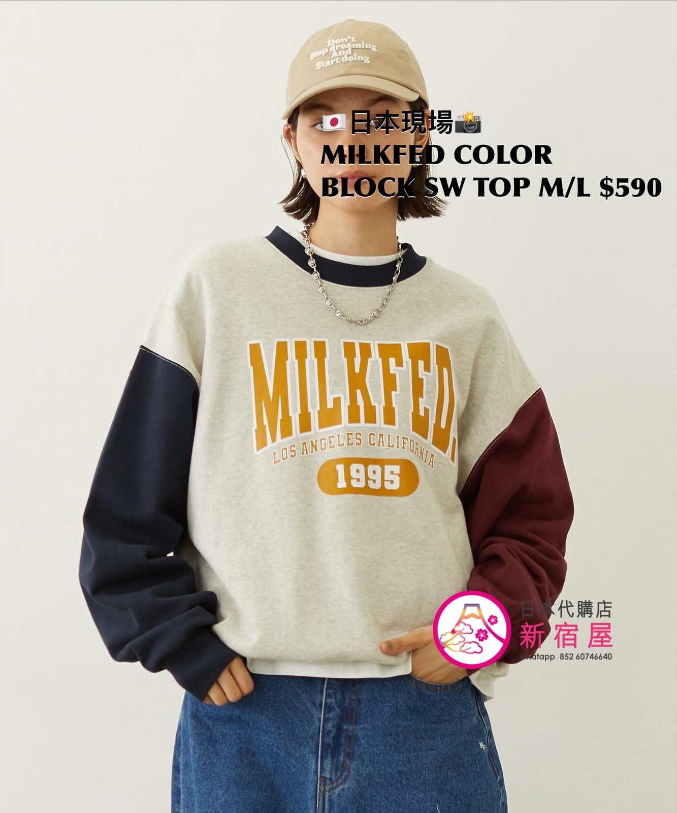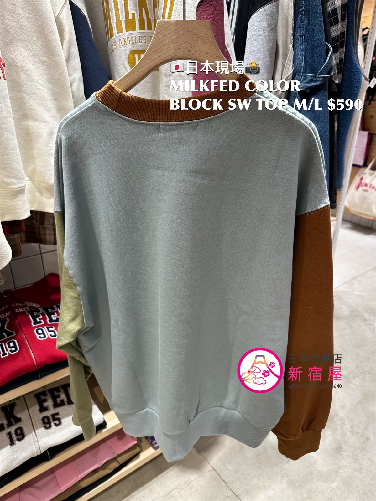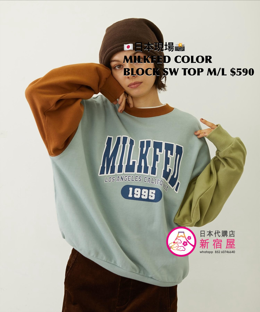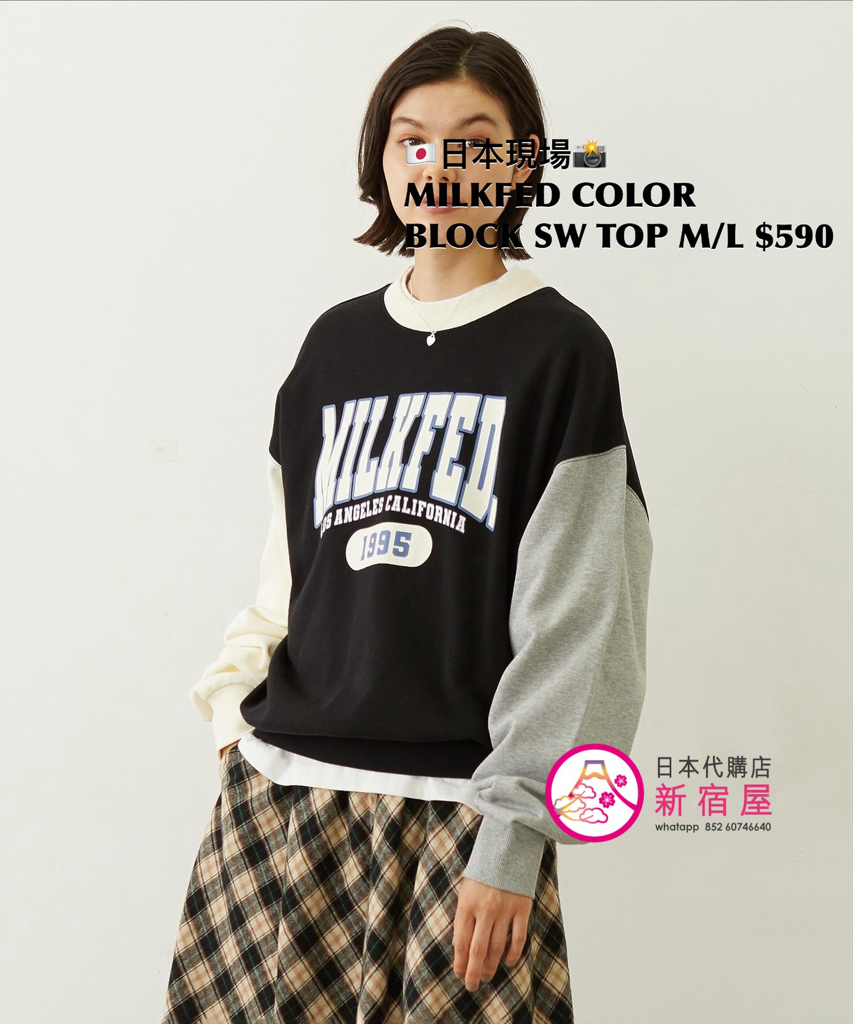 MILKFED COLOR BLOCK SWEAT TOP SIZE M/L,LIGHT BLUE/ OAT MEAL/ BLACK,$590 👚參考尺寸 SIZE M: 身幅 64 著丈 62cm SIZE L: 身幅 66 著丈 64cm