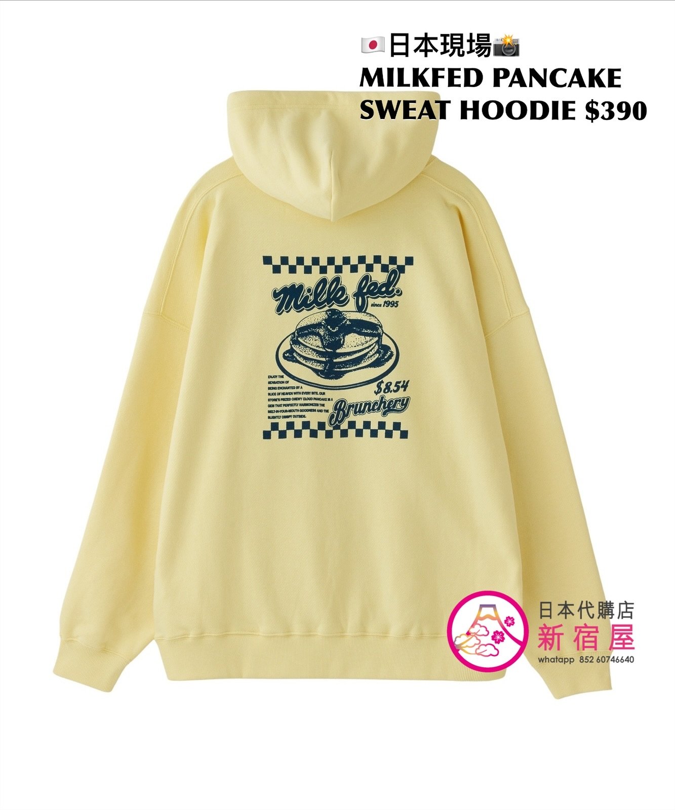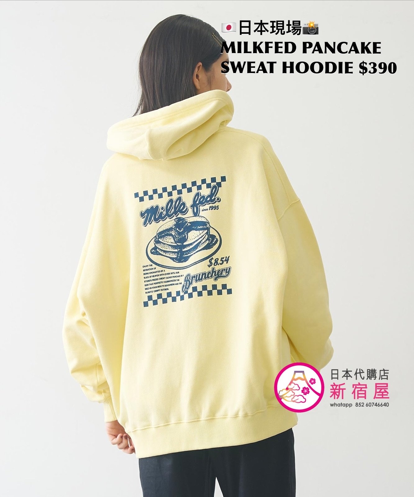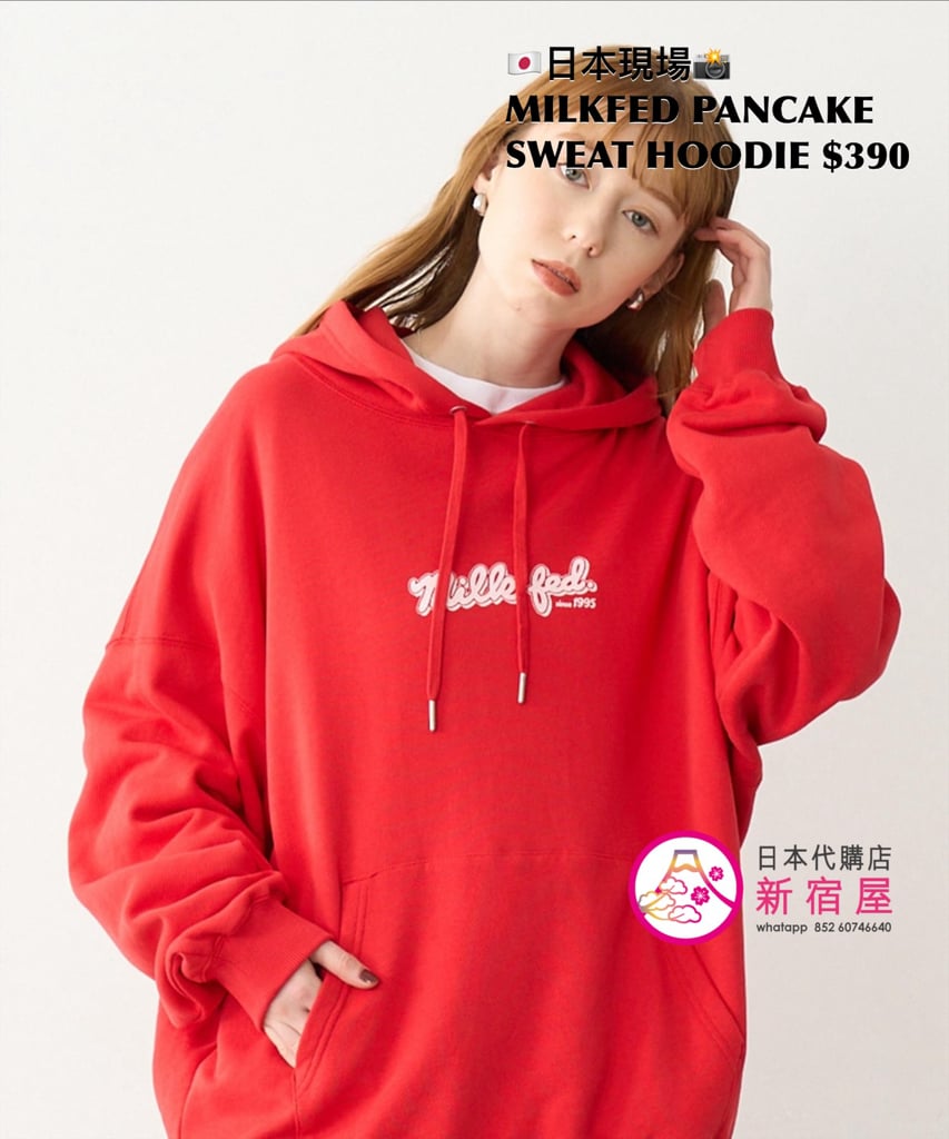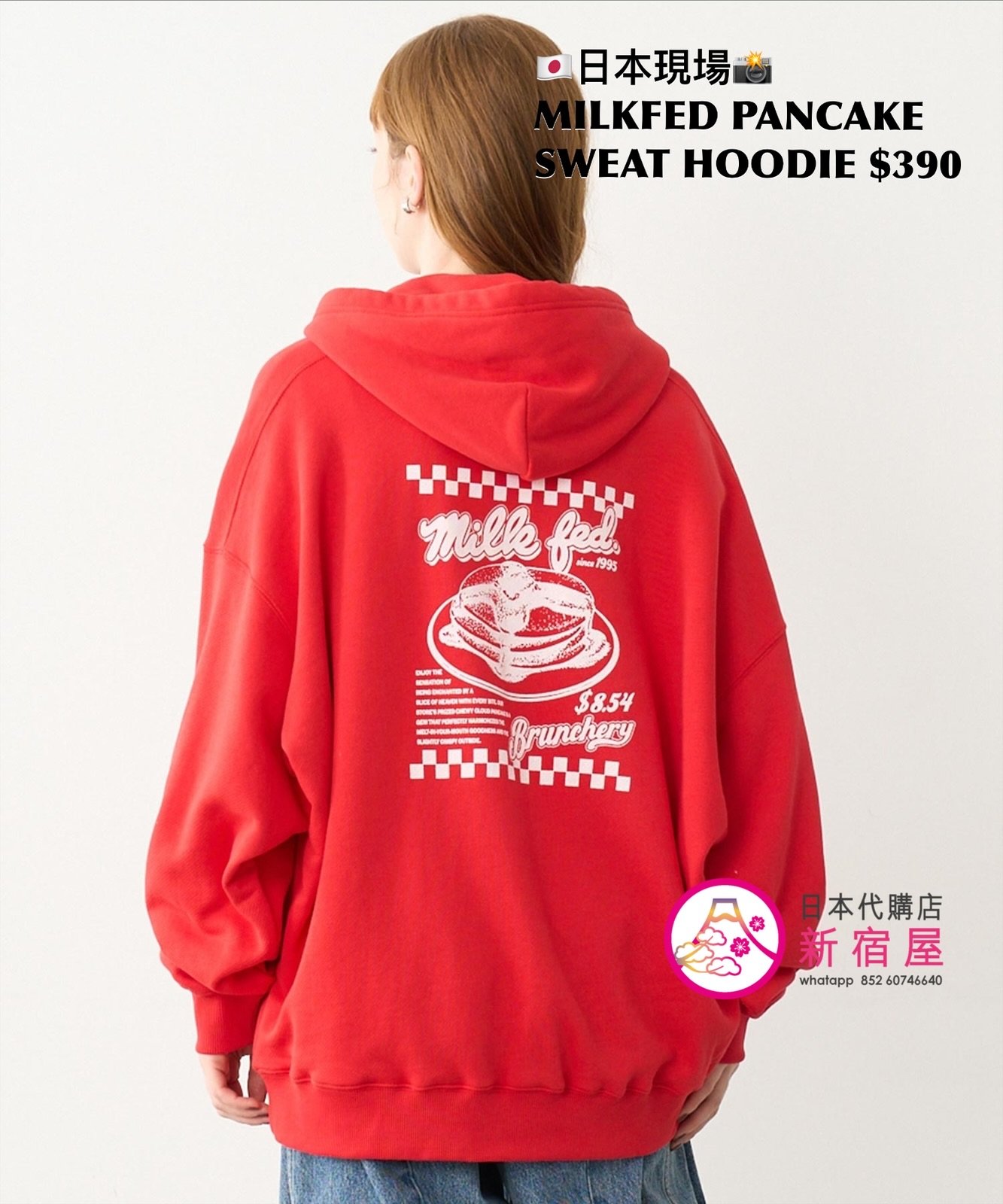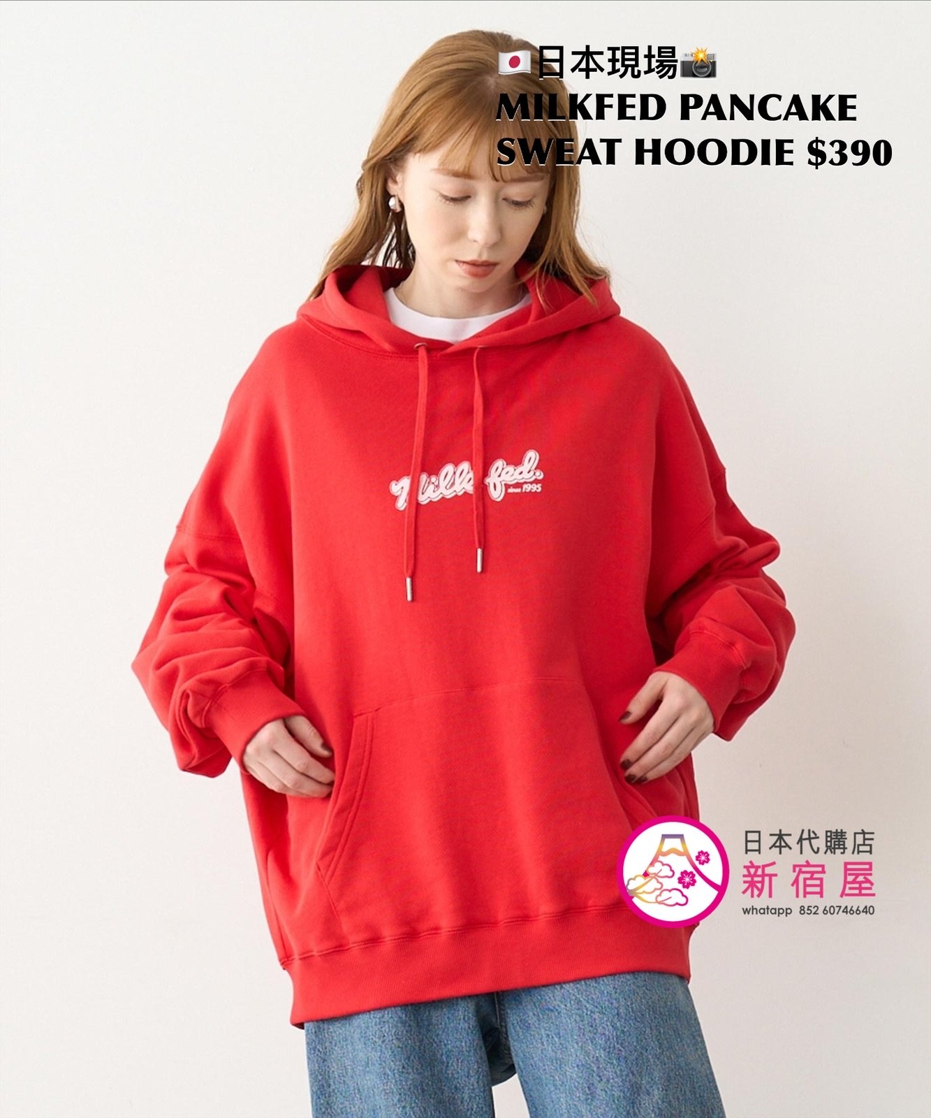 MILKFED PANCAKE SWEAT HOODIE SIZE M,RED/ OATMEAL/ LIGHT YELLOW,$390 👚參考尺寸 SIZE M: 身幅 66 著丈 62cm