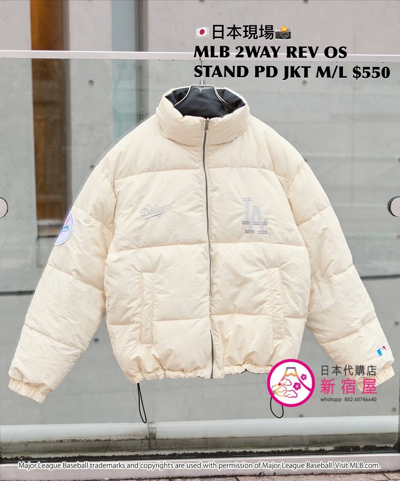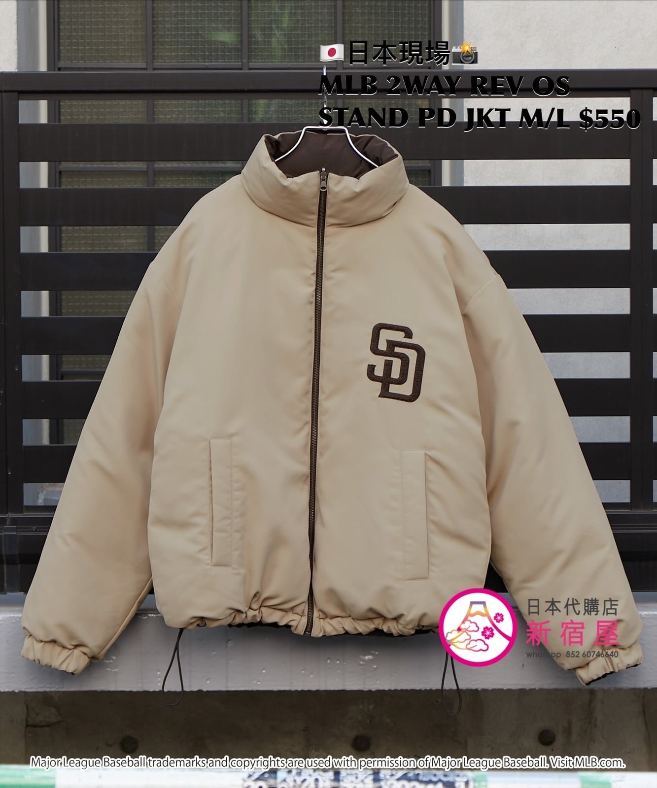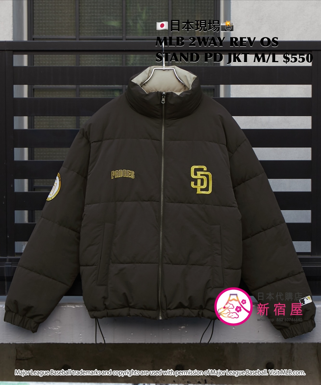 MLB 2WAY REVERSIBLE OVERSIZED STAND PADDED JACKET SIZE M/L,DARK BROWN/ OFF WHITE/ BLACK,$550 👕👚參考尺寸 SIZE M: 身幅 67 著丈 69cm SIZE L: 身幅 69 著丈 71cm