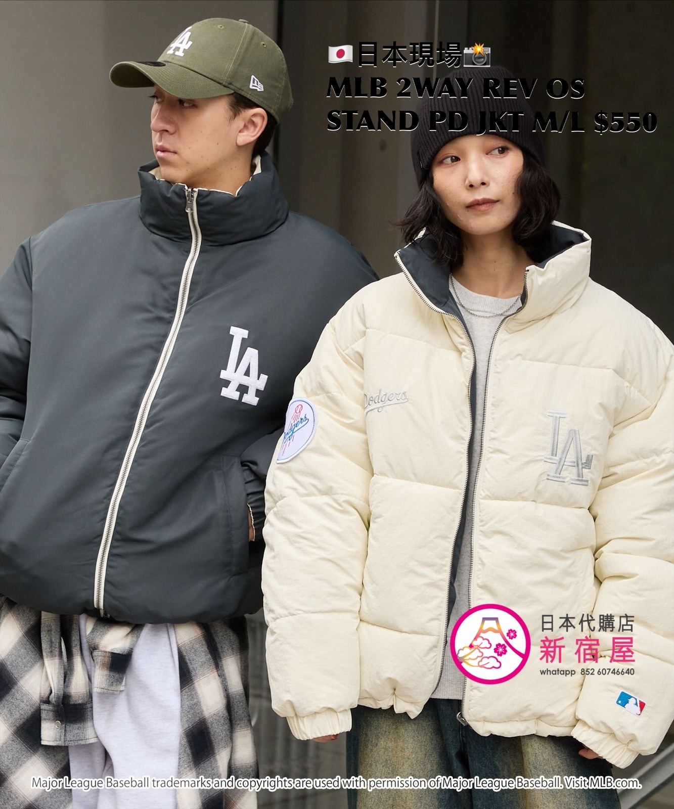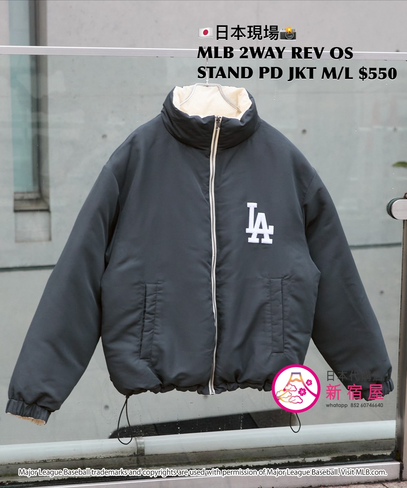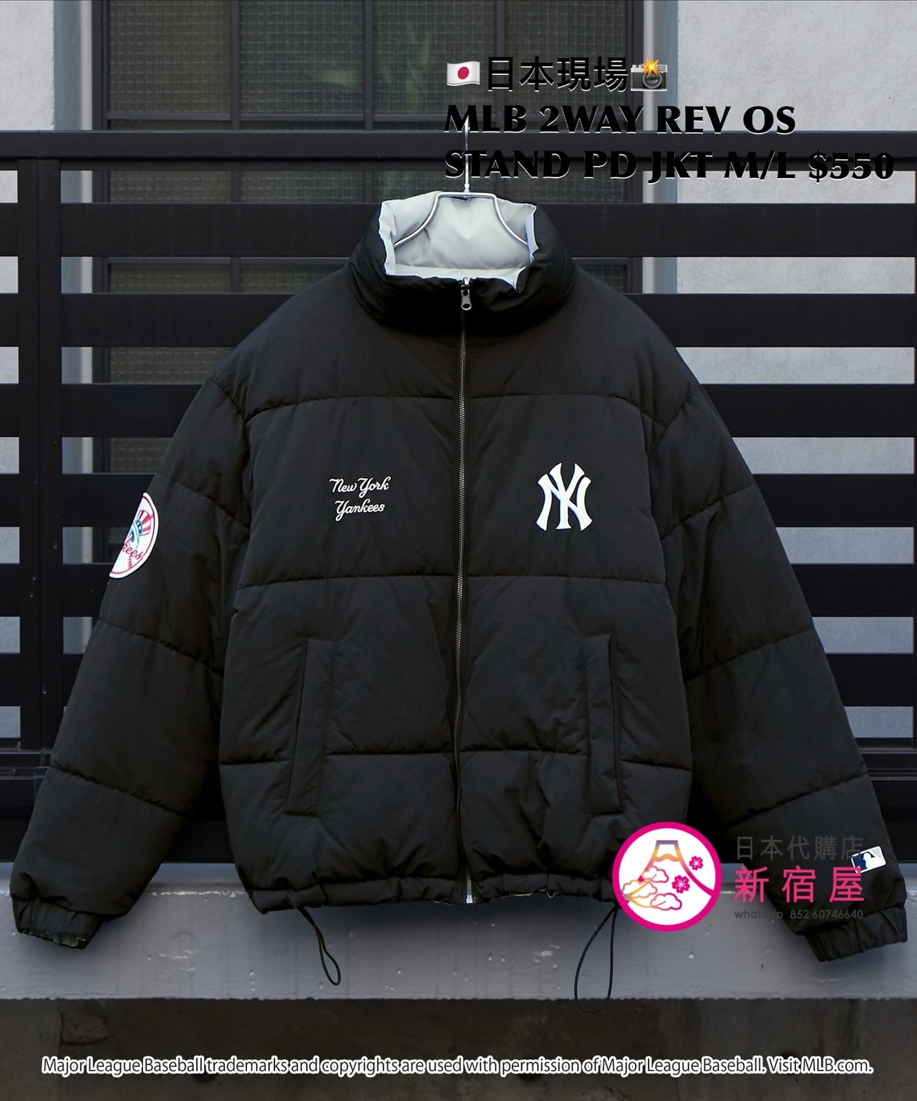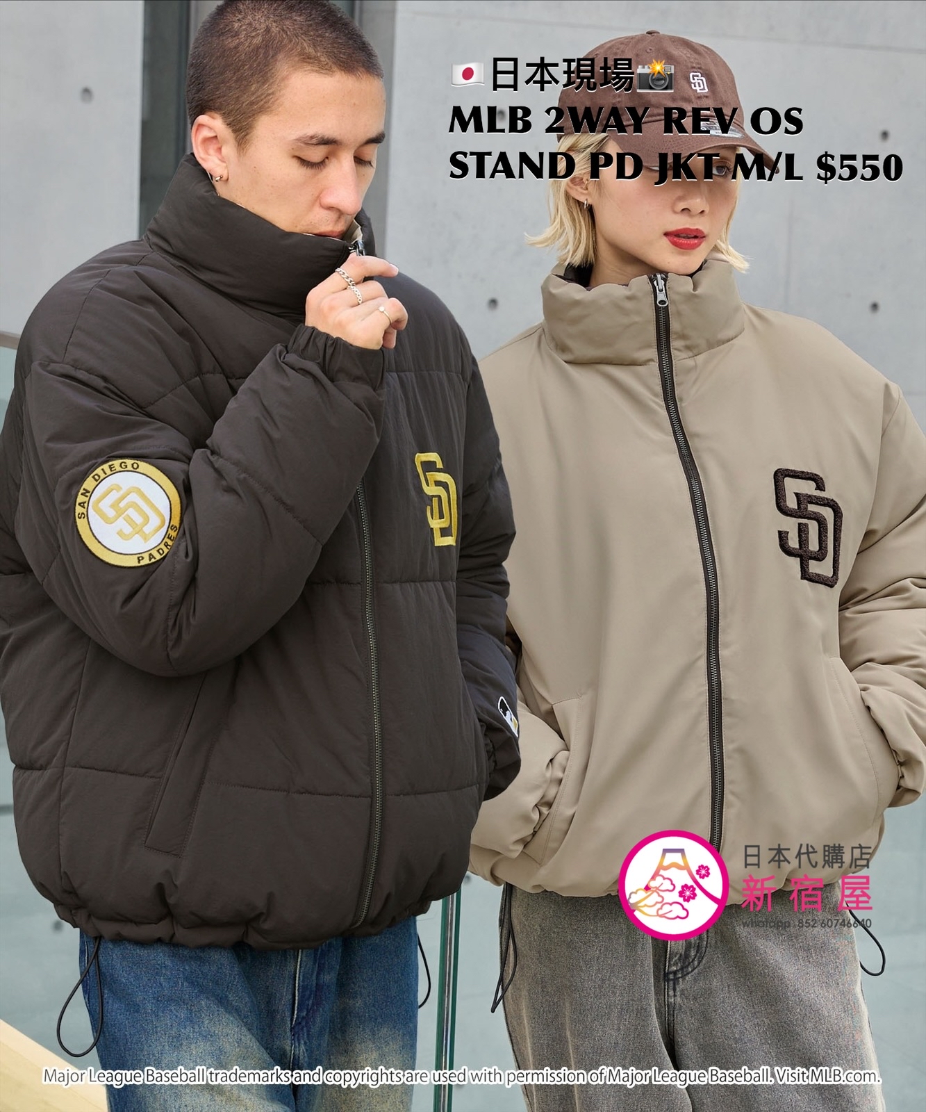 MLB 2WAY REVERSIBLE OVERSIZED STAND PADDED JACKET SIZE M/L,DARK BROWN/ OFF WHITE/ BLACK,$550 👕👚參考尺寸 SIZE M: 身幅 67 著丈 69cm SIZE L: 身幅 69 著丈 71cm