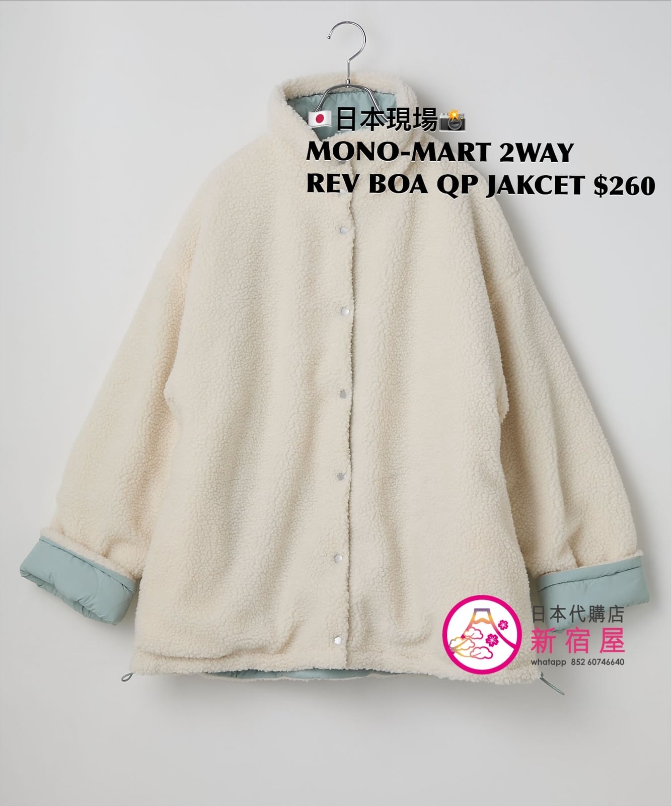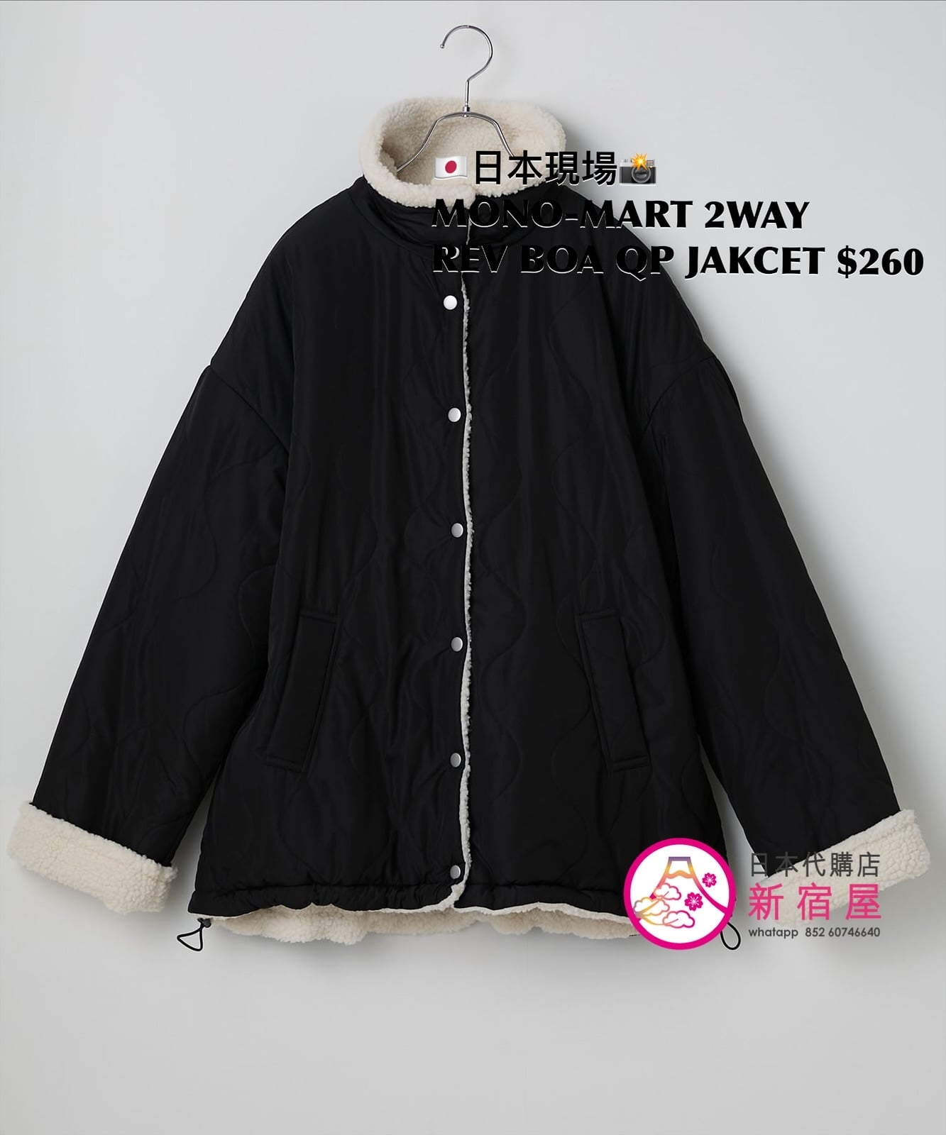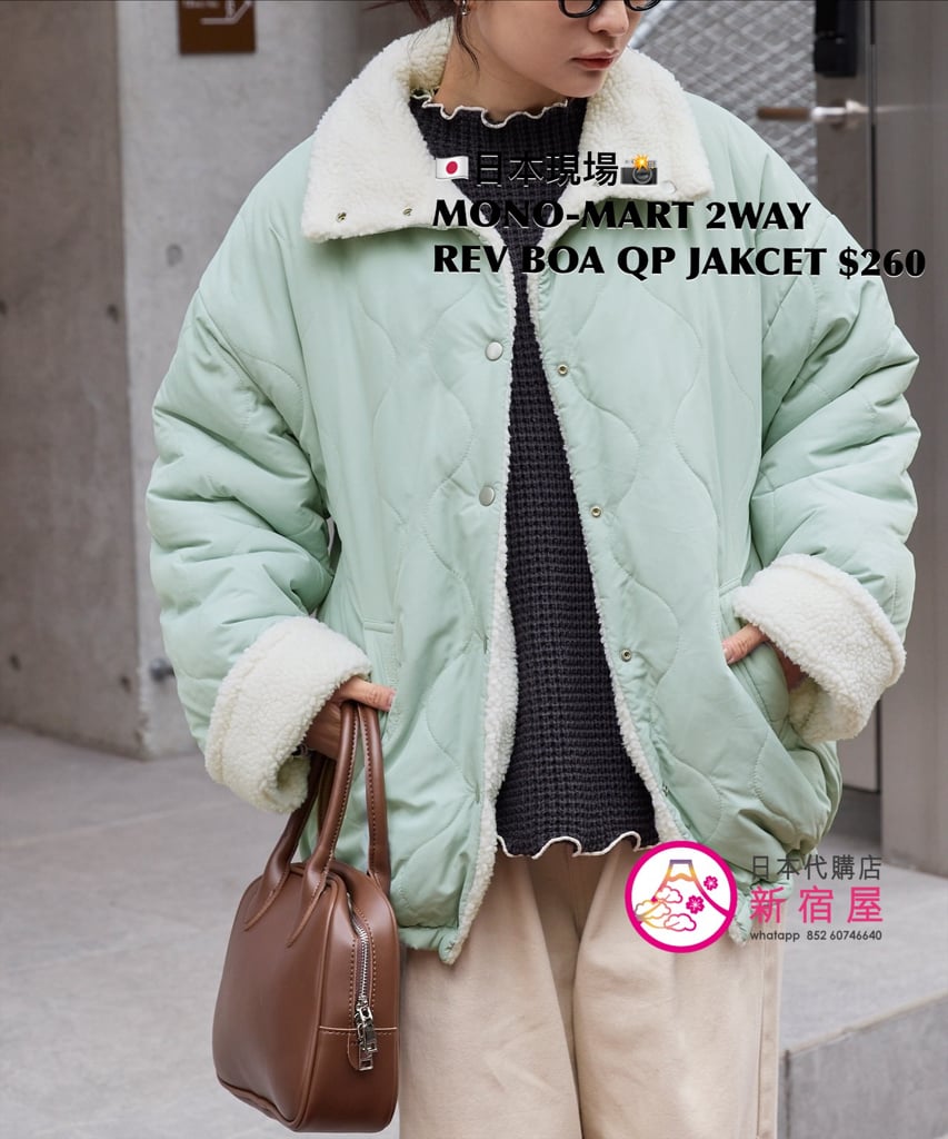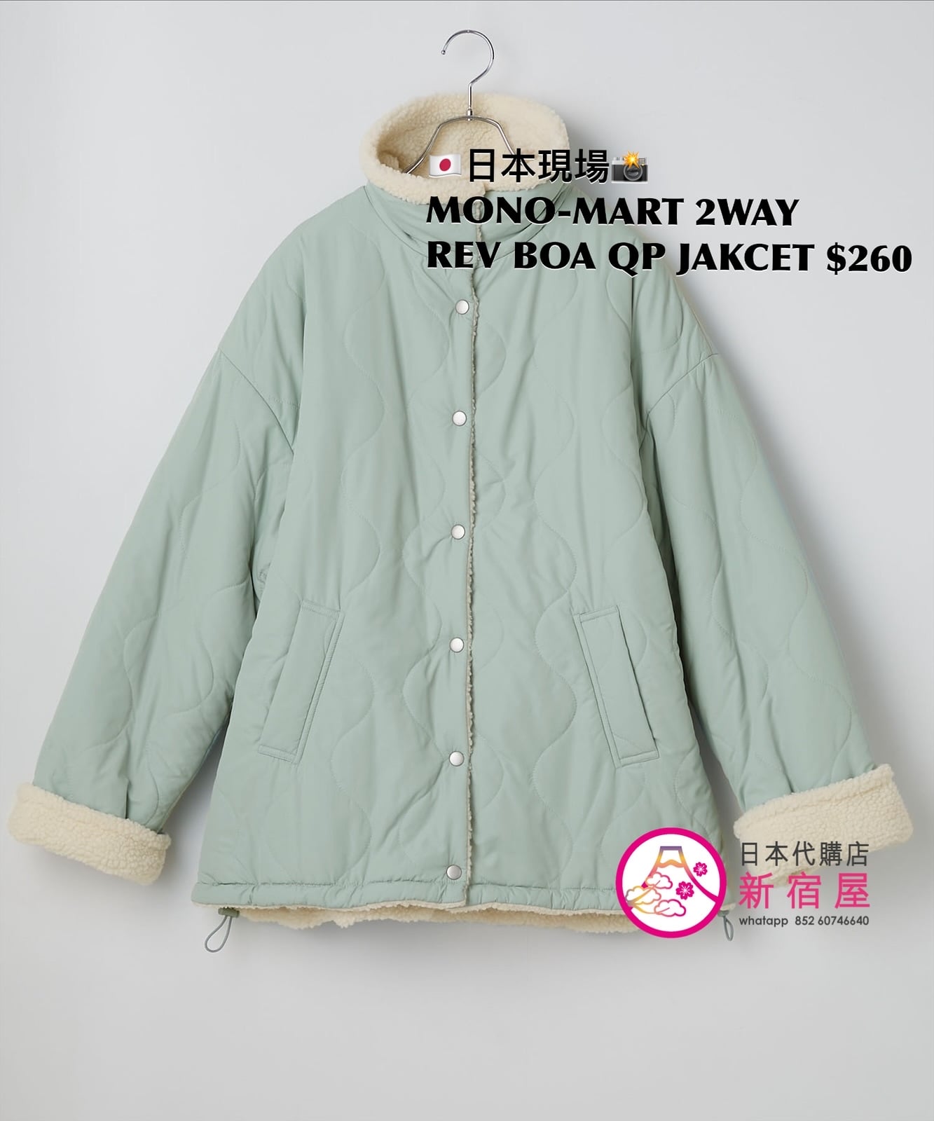 MONO-MART 2WAY REVERSIBLE BOA QUILTED PADDED JACKET FREE SIZE,BLACK/ IVORY/ BROWN/ LIGHT GREEN,$260 👚參考尺寸 FREE SIZE: 身幅 63 著丈 76.4cm