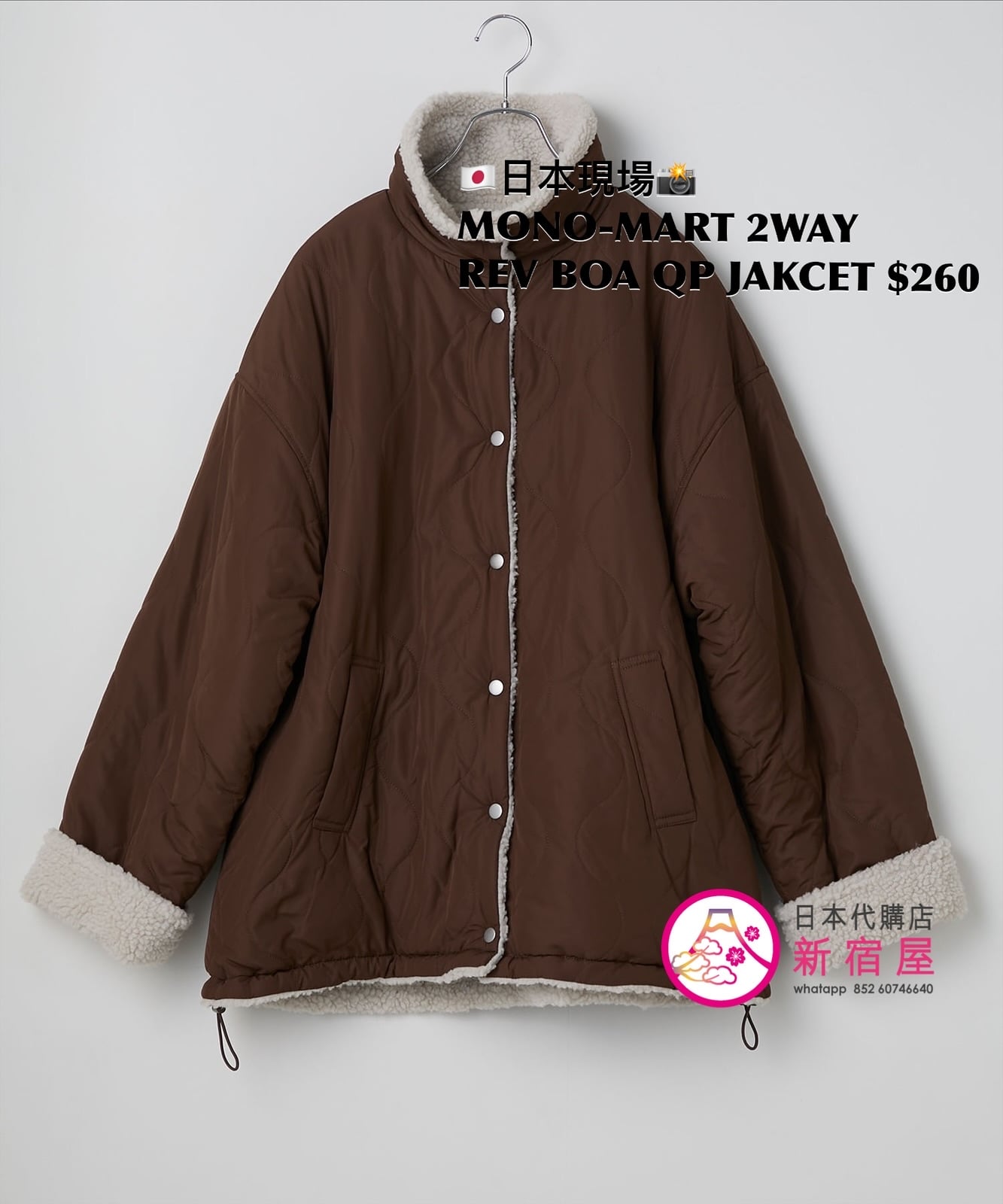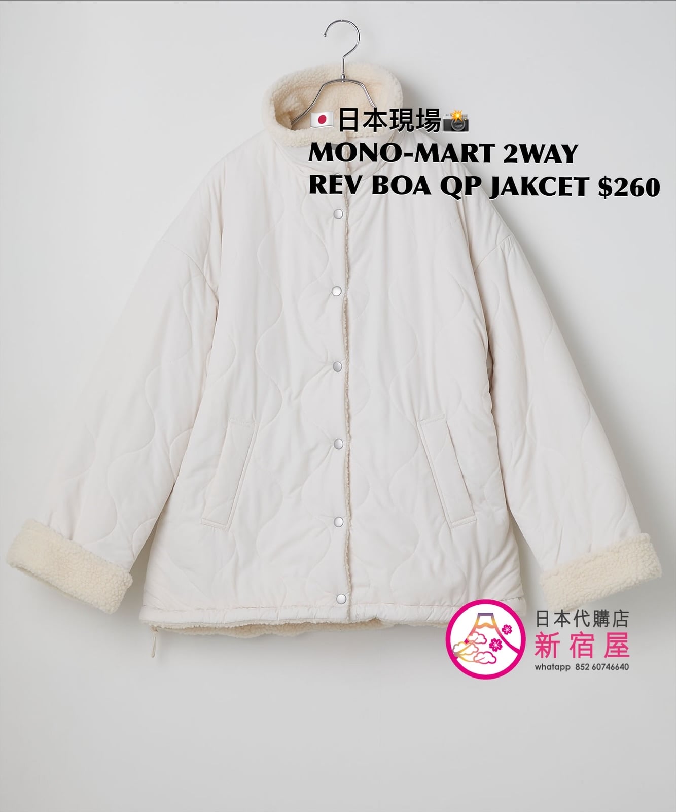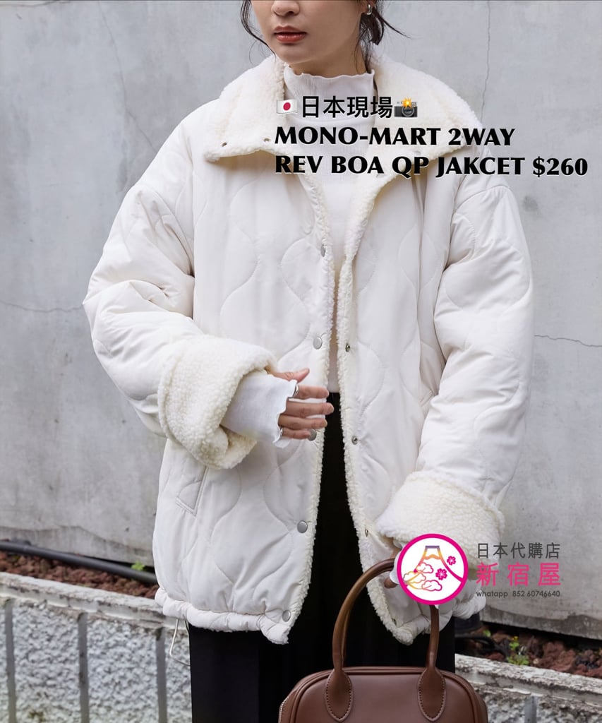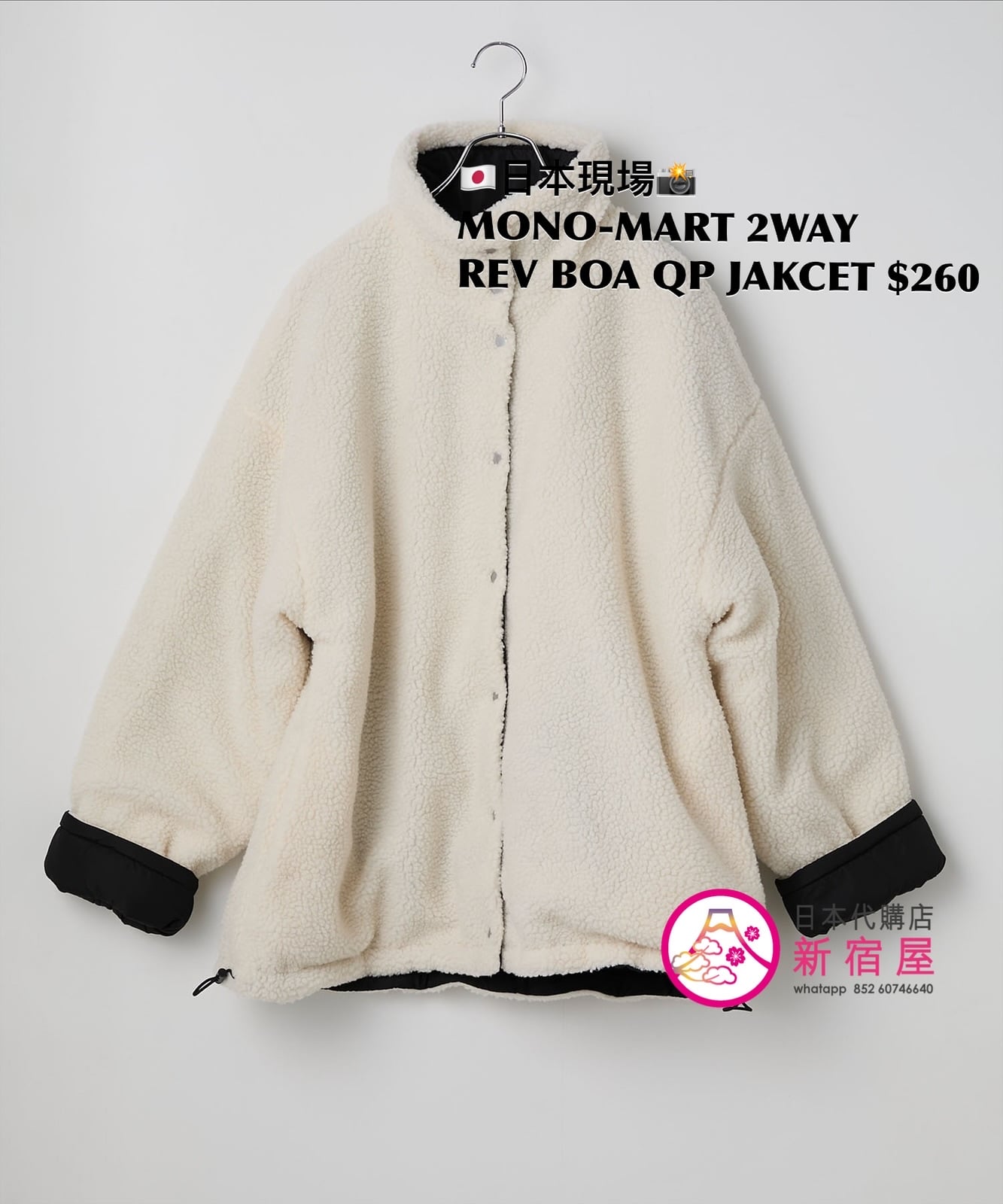 MONO-MART 2WAY REVERSIBLE BOA QUILTED PADDED JACKET FREE SIZE,BLACK/ IVORY/ BROWN/ LIGHT GREEN,$260 👚參考尺寸 FREE SIZE: 身幅 63 著丈 76.4cm