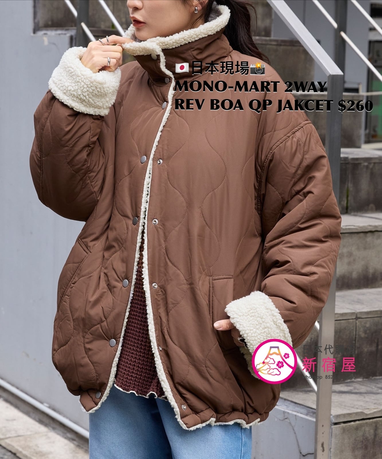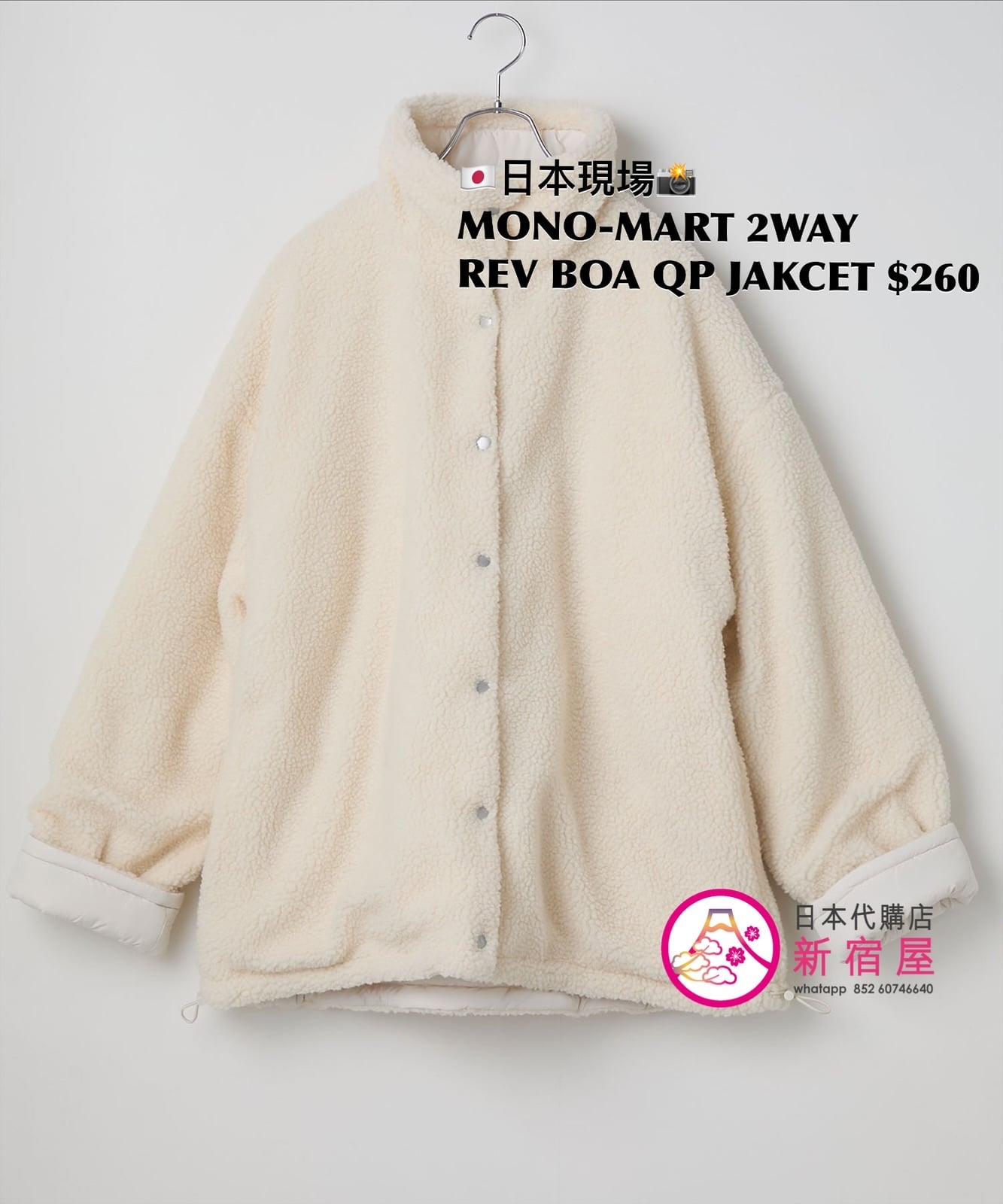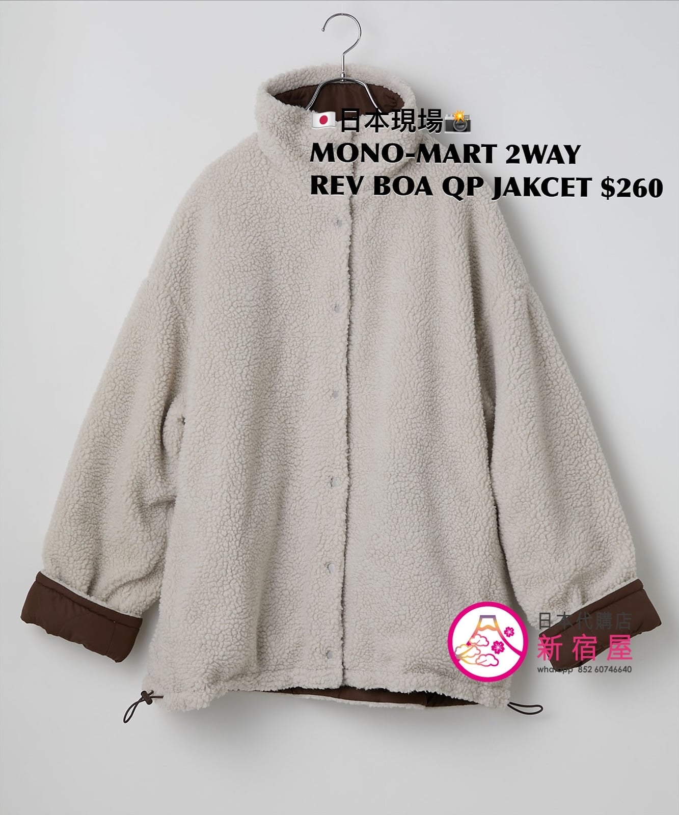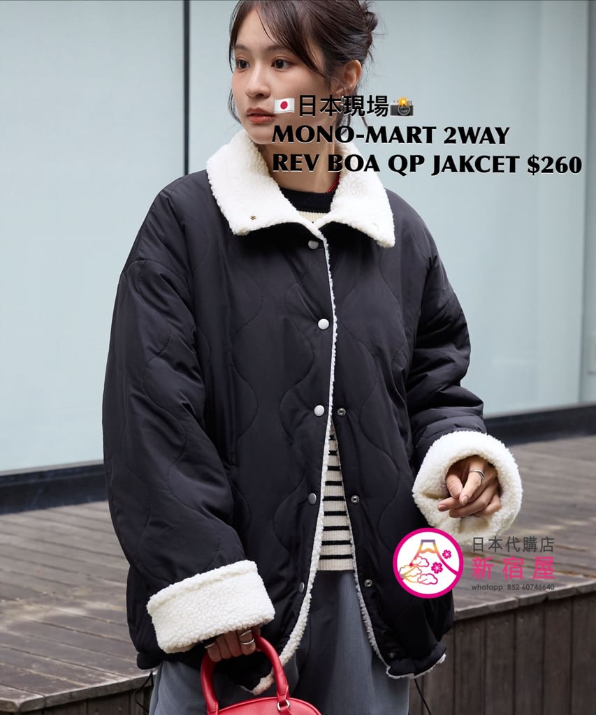 MONO-MART 2WAY REVERSIBLE BOA QUILTED PADDED JACKET FREE SIZE,BLACK/ IVORY/ BROWN/ LIGHT GREEN,$260 👚參考尺寸 FREE SIZE: 身幅 63 著丈 76.4cm