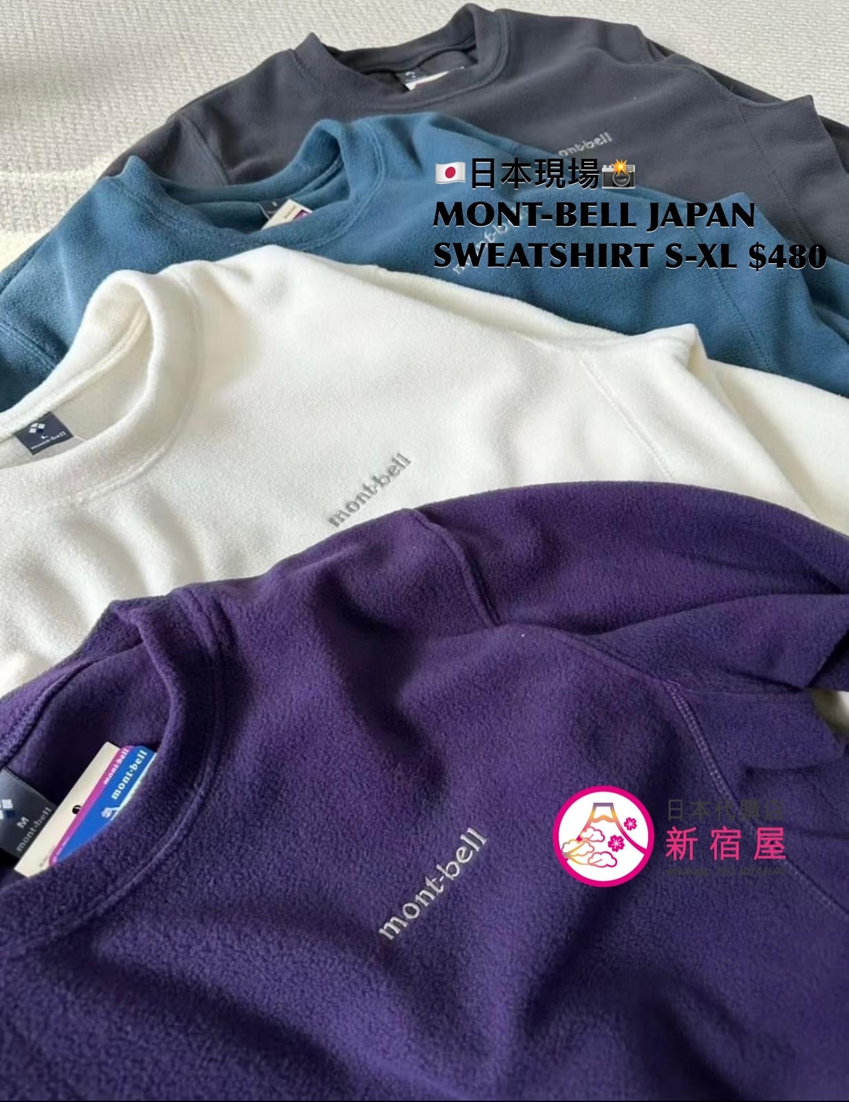 MONT-BELL JAPAN SWEATSHIRT SIZE S-XL,IVORY/ BLUE GREEN/ GRAY/ PURPLE ,$480