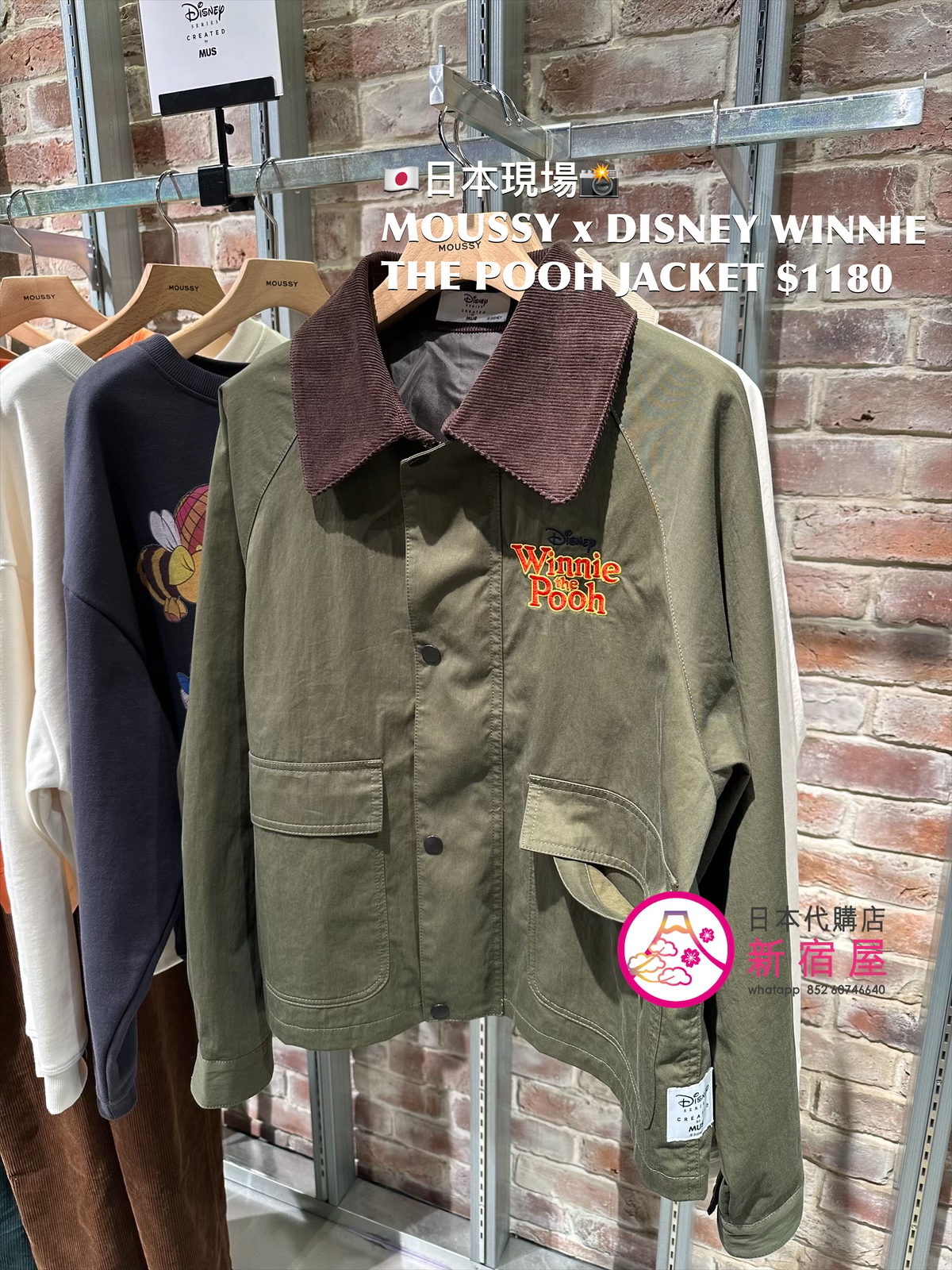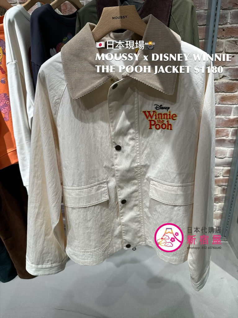 MOUSSY x DISNEY WINNIE THE POOH JACKET FREE SIZE,IVORY/ KHAKI,$1180 👚參考尺寸 FREE SIZE: 身幅 57 總丈 58cm