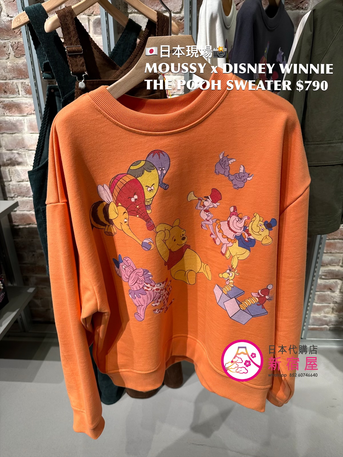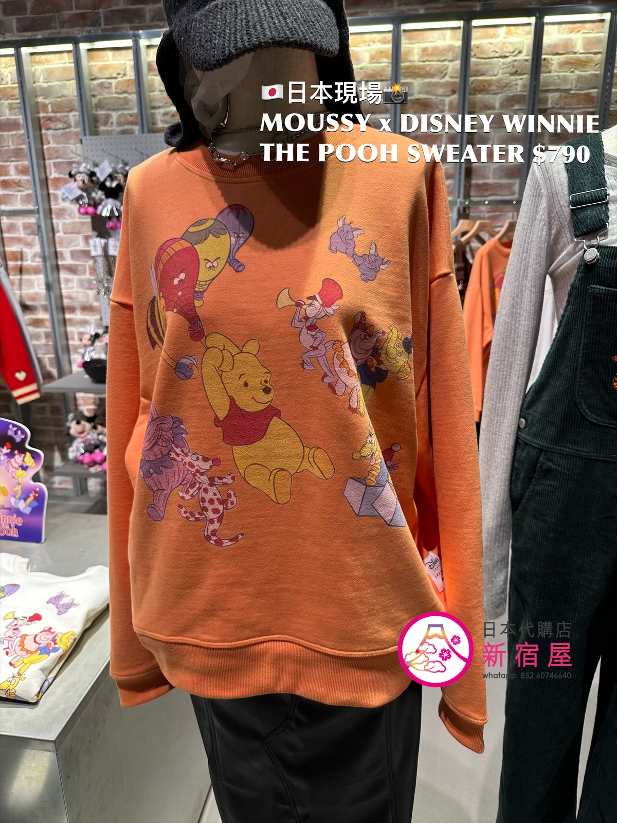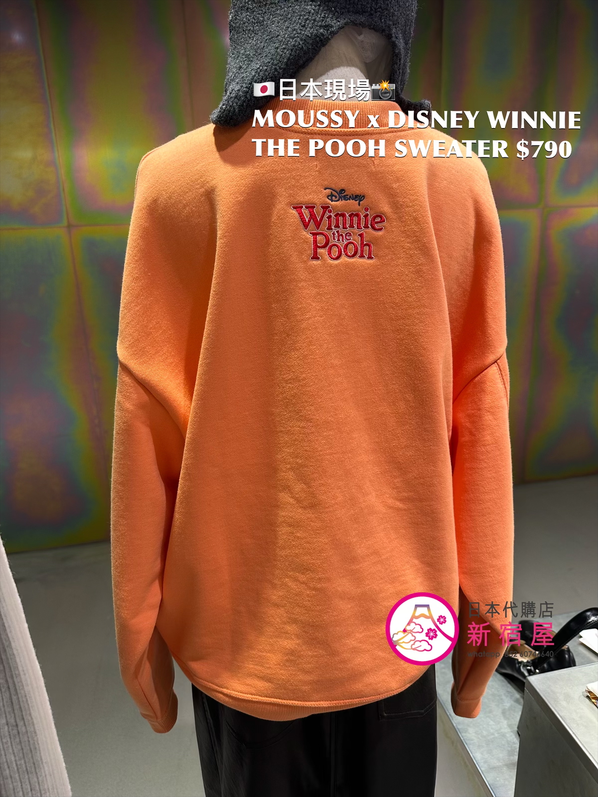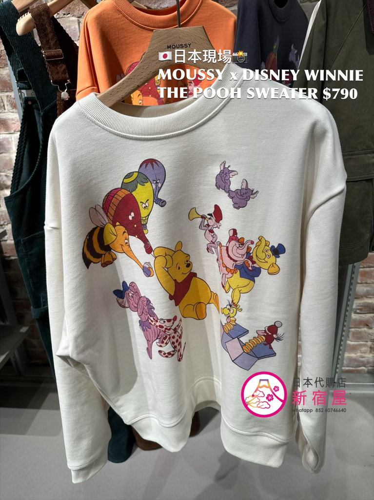 MOUSSY x DISNEY WINNIE THE POOH SWEATER FREE SIZE,ORANGE/ BLACK/ WHITE,$790 👚參考尺寸 FREE SIZE: 身幅 66 總丈 66cm