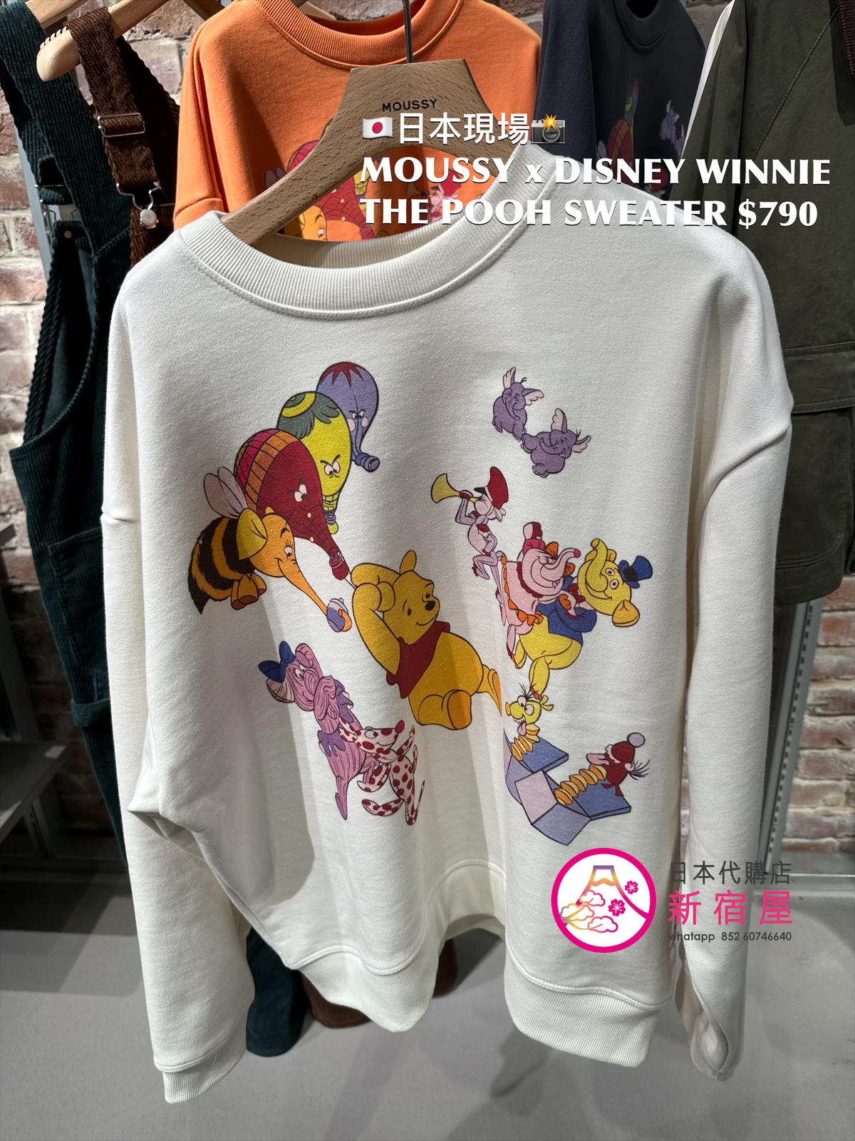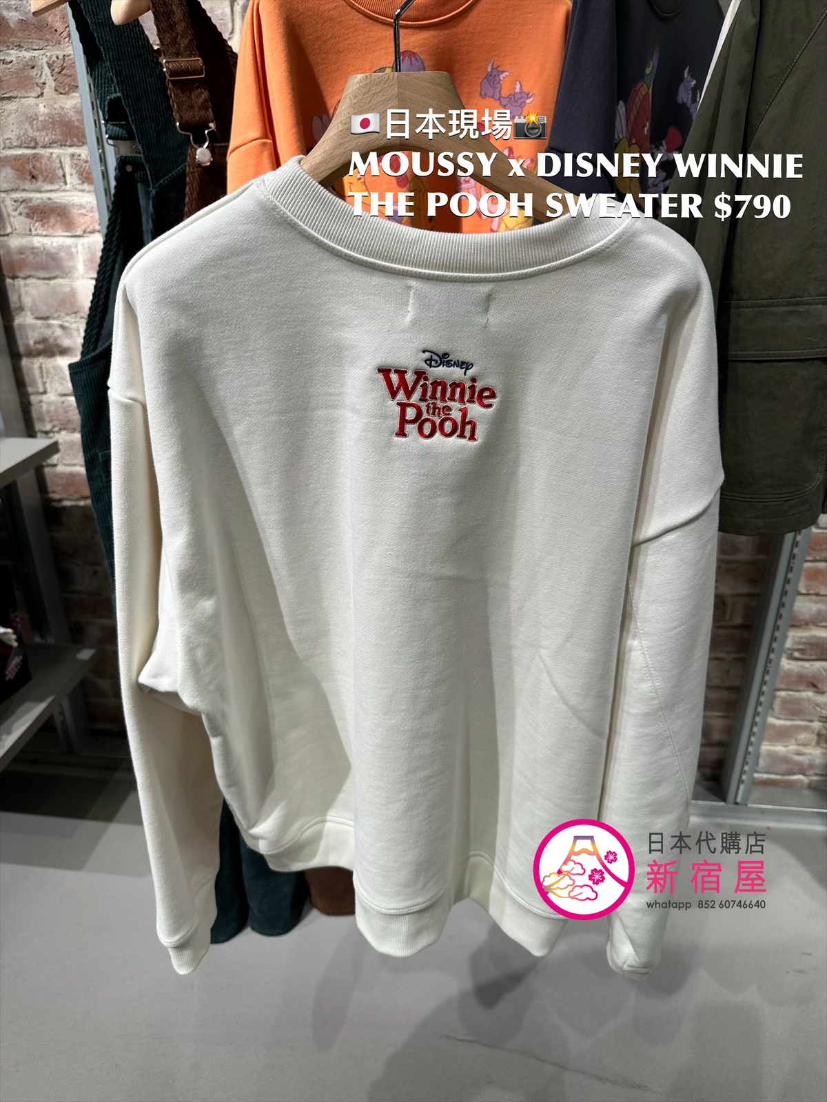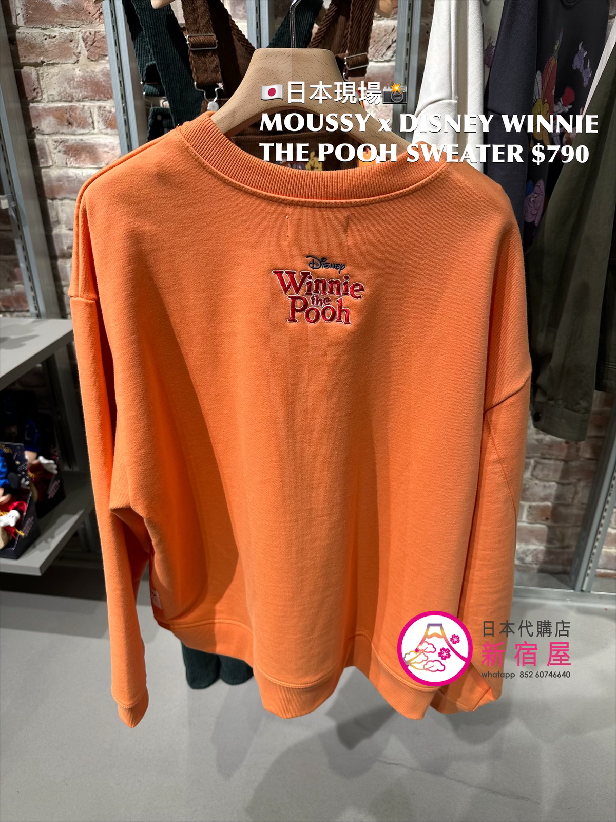 MOUSSY x DISNEY WINNIE THE POOH SWEATER FREE SIZE,ORANGE/ BLACK/ WHITE,$790 👚參考尺寸 FREE SIZE: 身幅 66 總丈 66cm