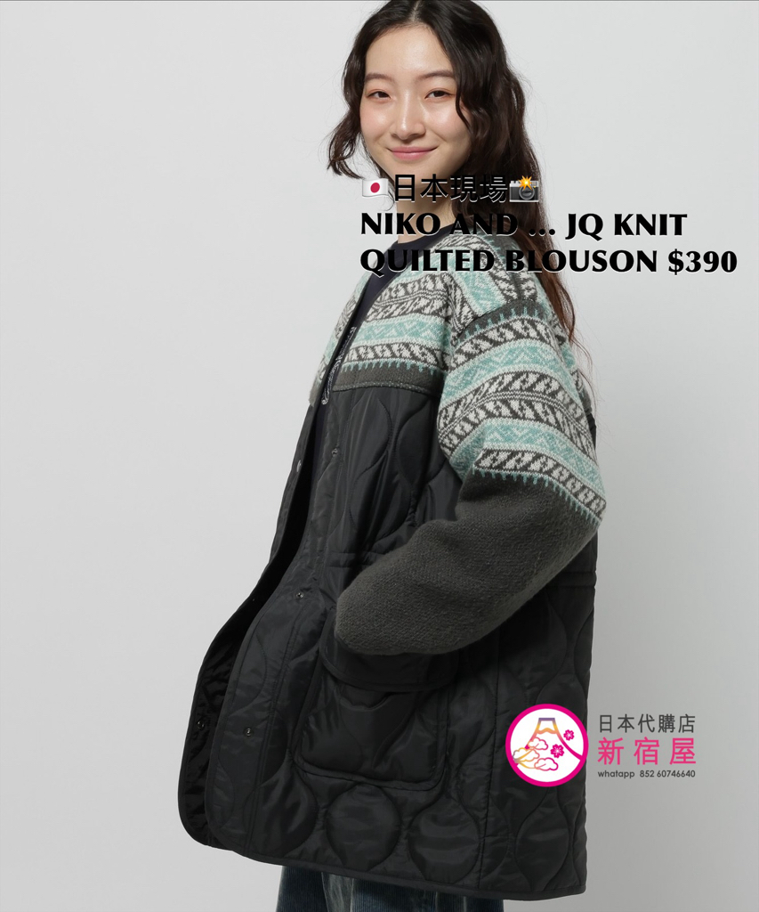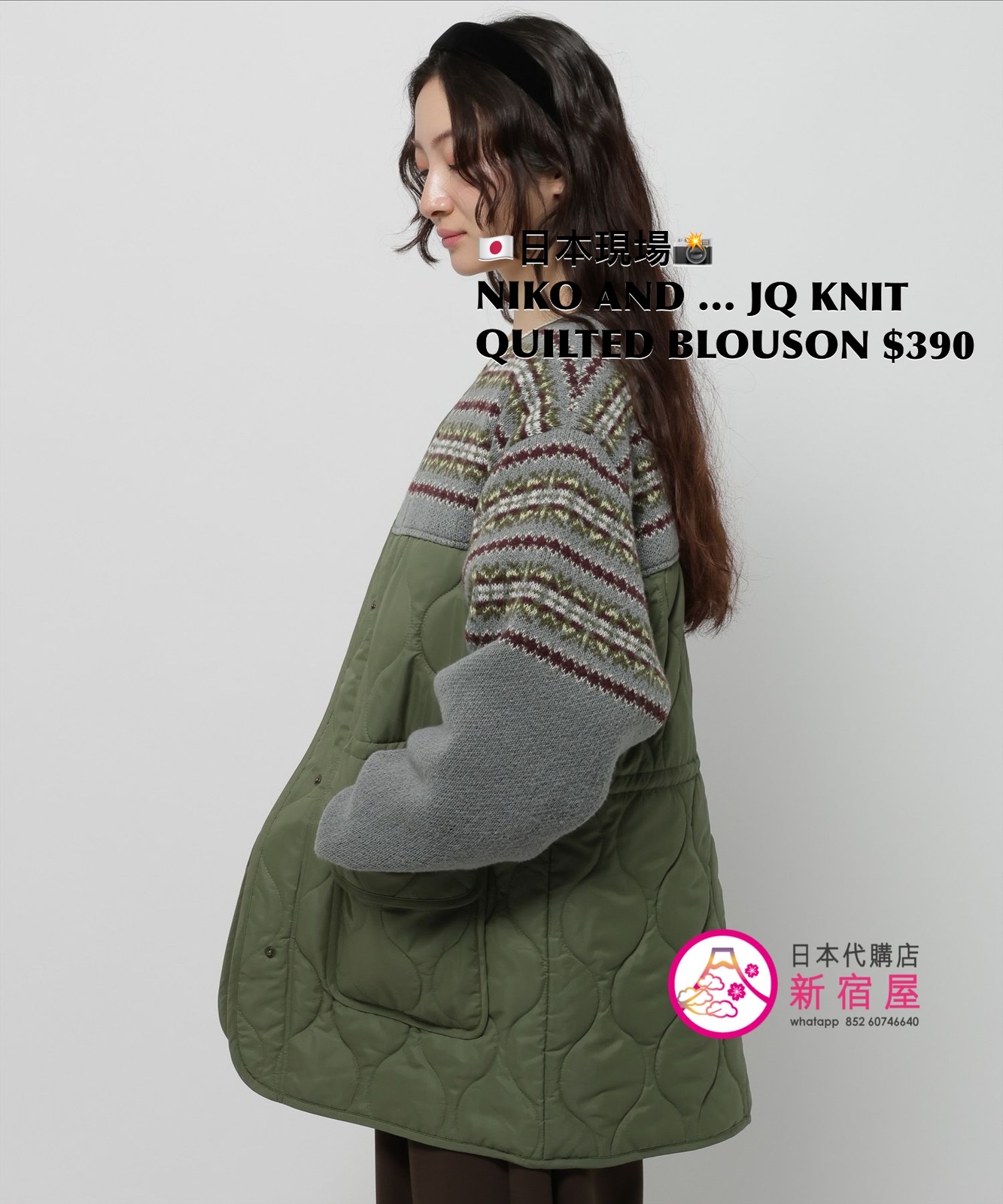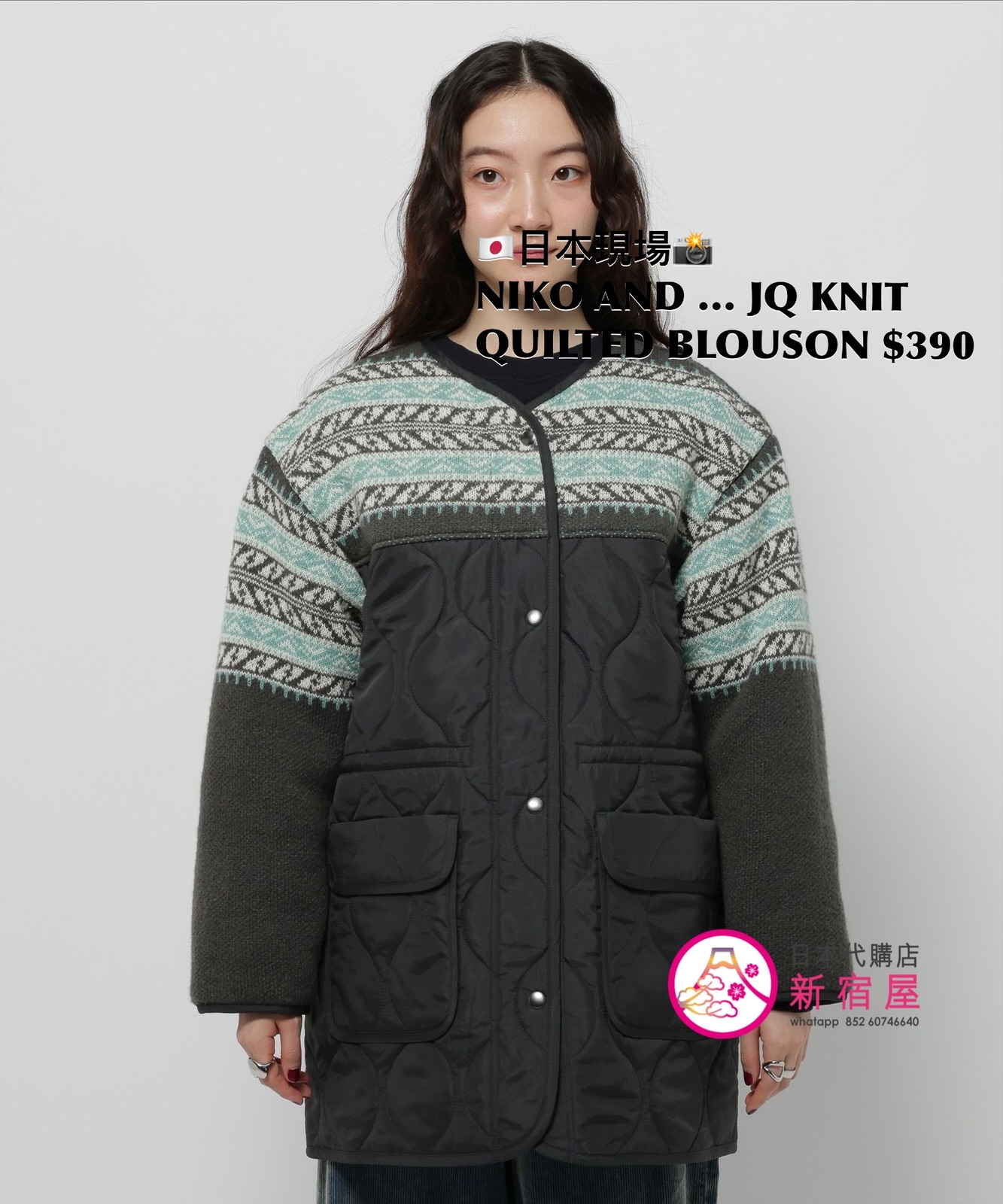 NIKO AND … JACQUARD KNIT QUILTED BLOUSON FREE SIZE,CHARCOAL/ IVORY/ KHAKI,$390 👚參考尺寸 FREE SIZE: 身幅 58 著丈 77cm