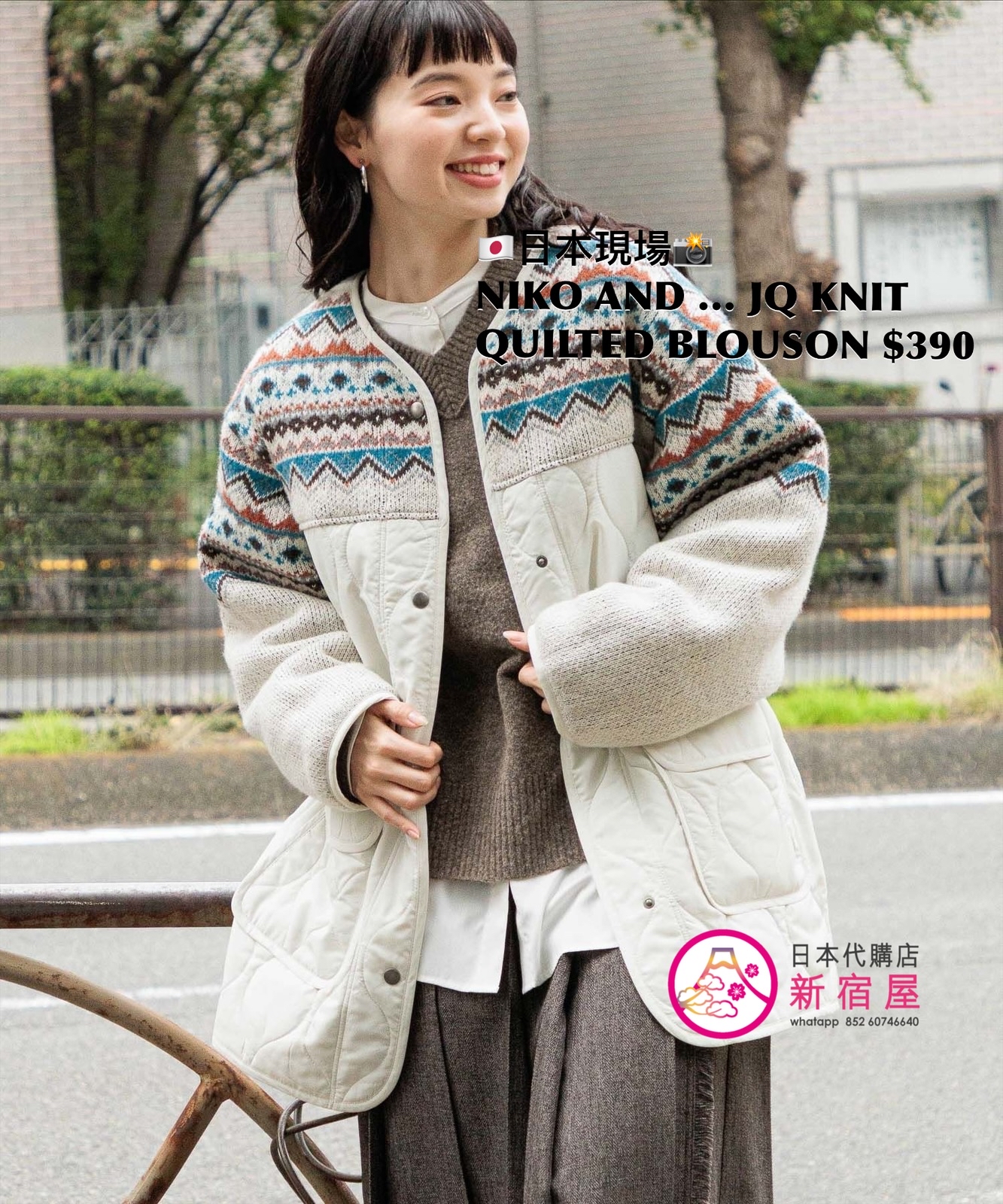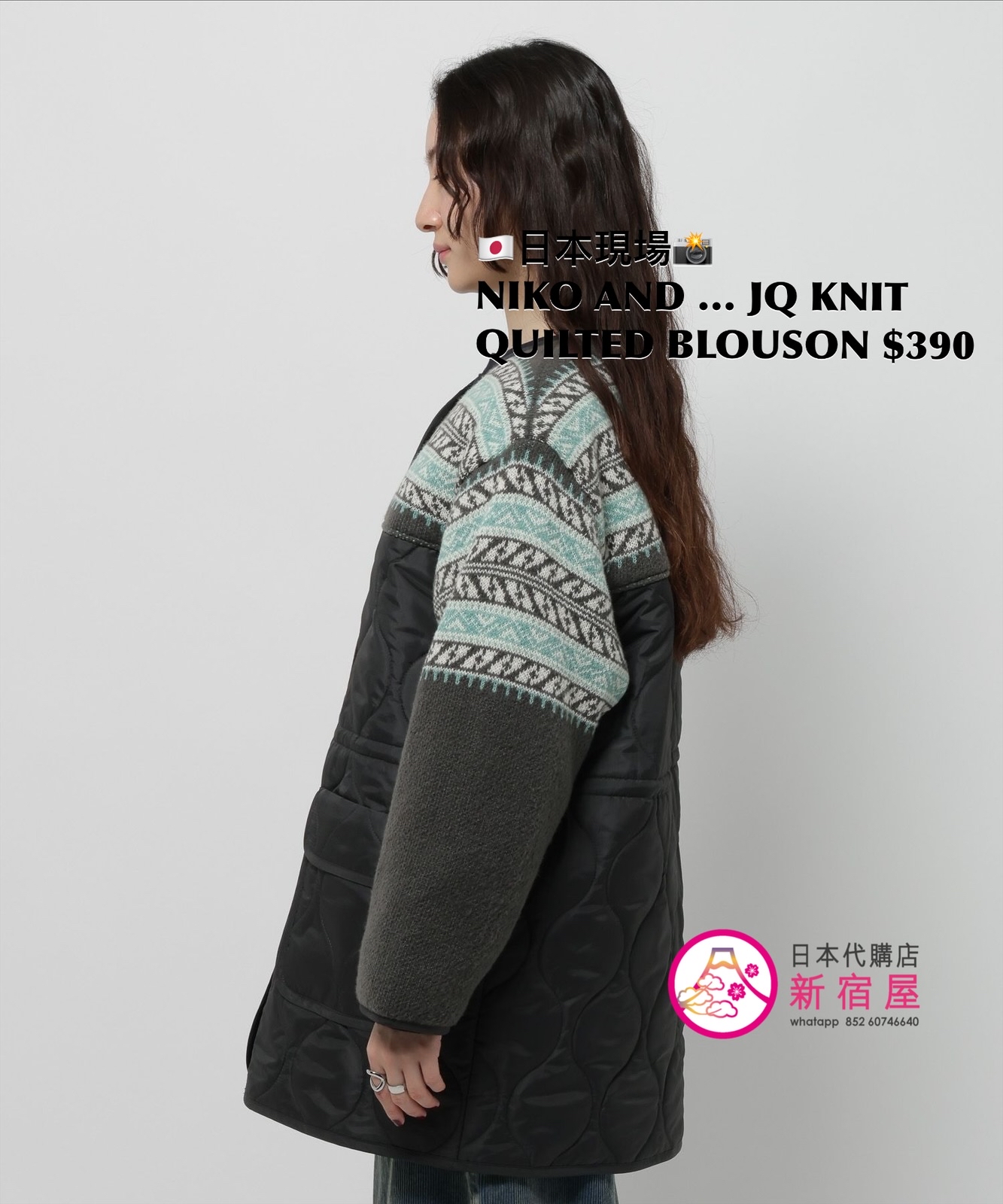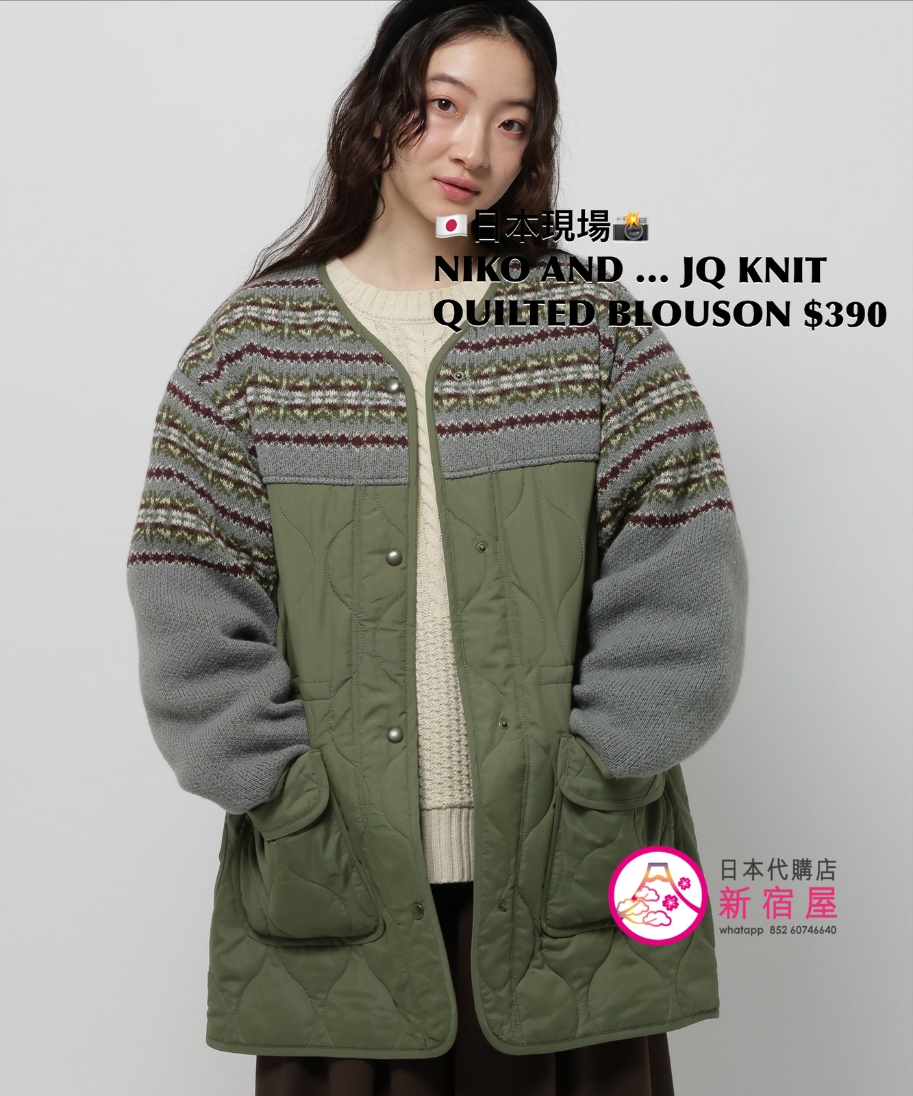 NIKO AND … JACQUARD KNIT QUILTED BLOUSON FREE SIZE,CHARCOAL/ IVORY/ KHAKI,$390 👚參考尺寸 FREE SIZE: 身幅 58 著丈 77cm