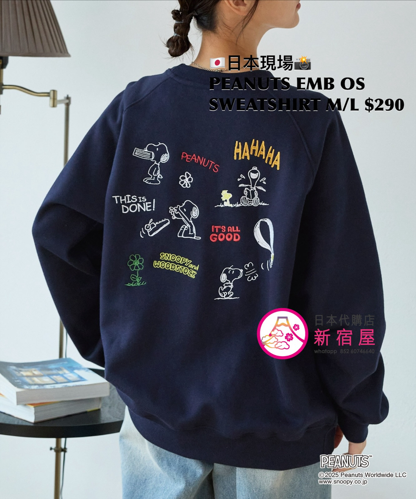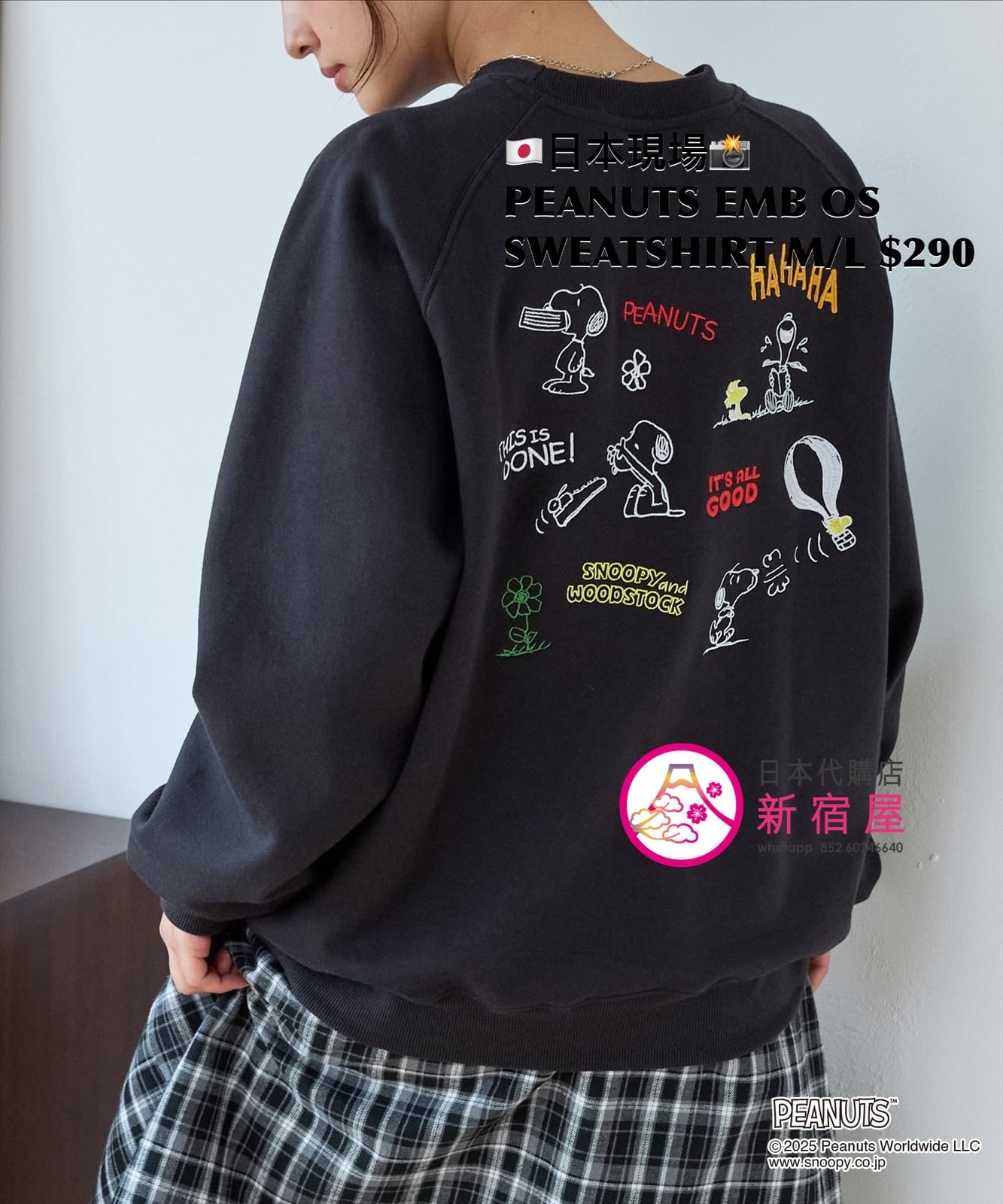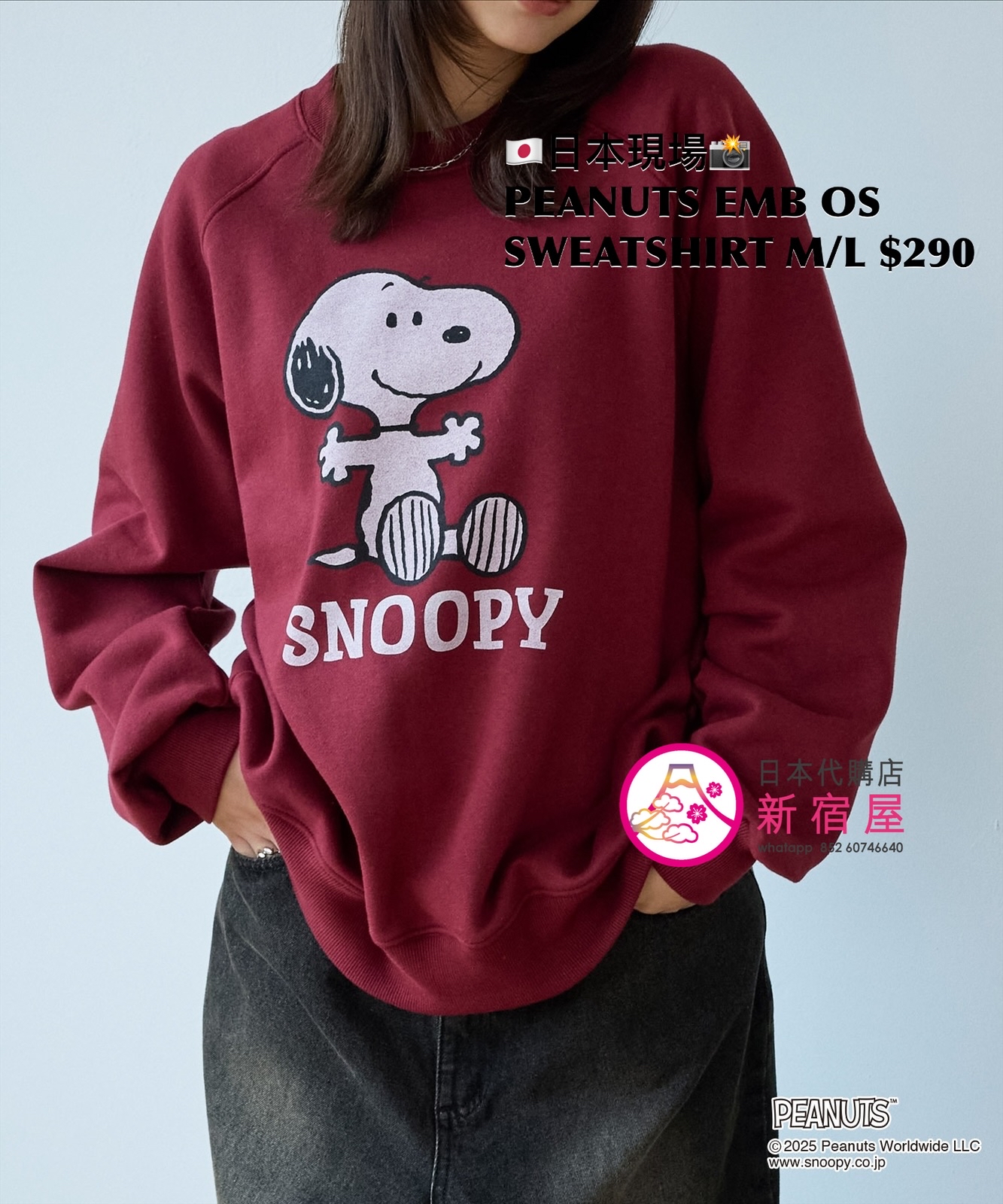 PEANUTS SNOOPY EMBROIDERED OVERSIZED SWEATSHIRT SIZE M/L,WINE/ BLACK/ OATMEAL/ NAVY/ GRAY,$290 👚參考尺寸 SIZE M: 身幅 60 總丈 68cm SIZE L: 身幅 62.5 總丈 70cm