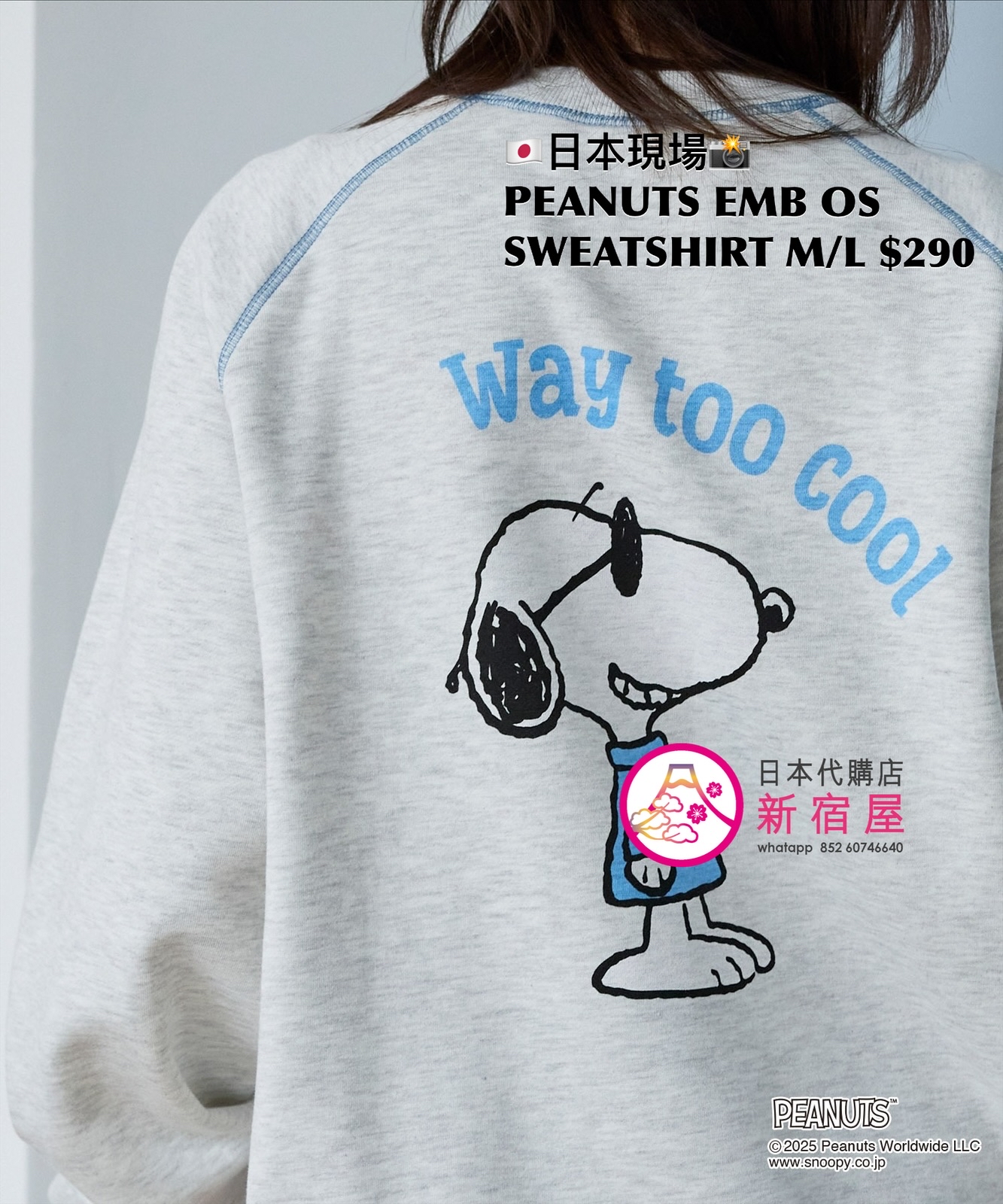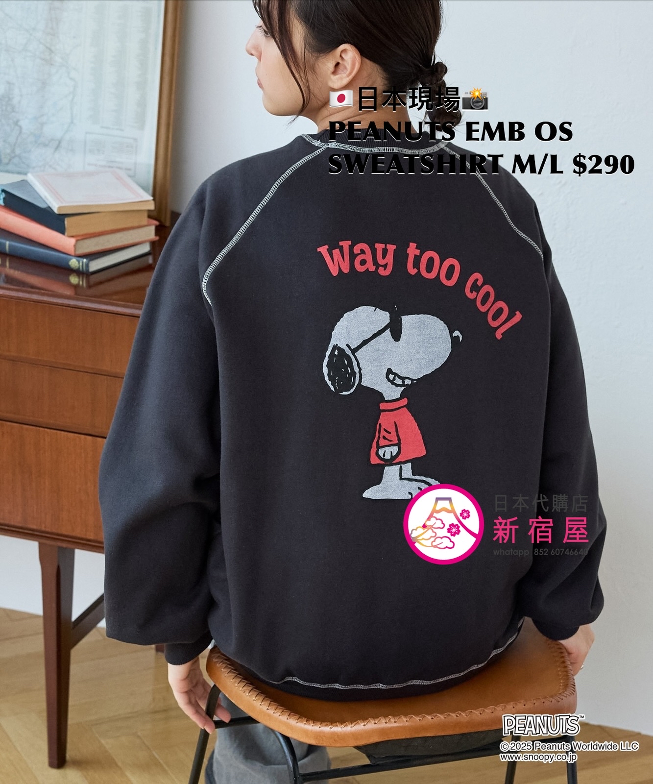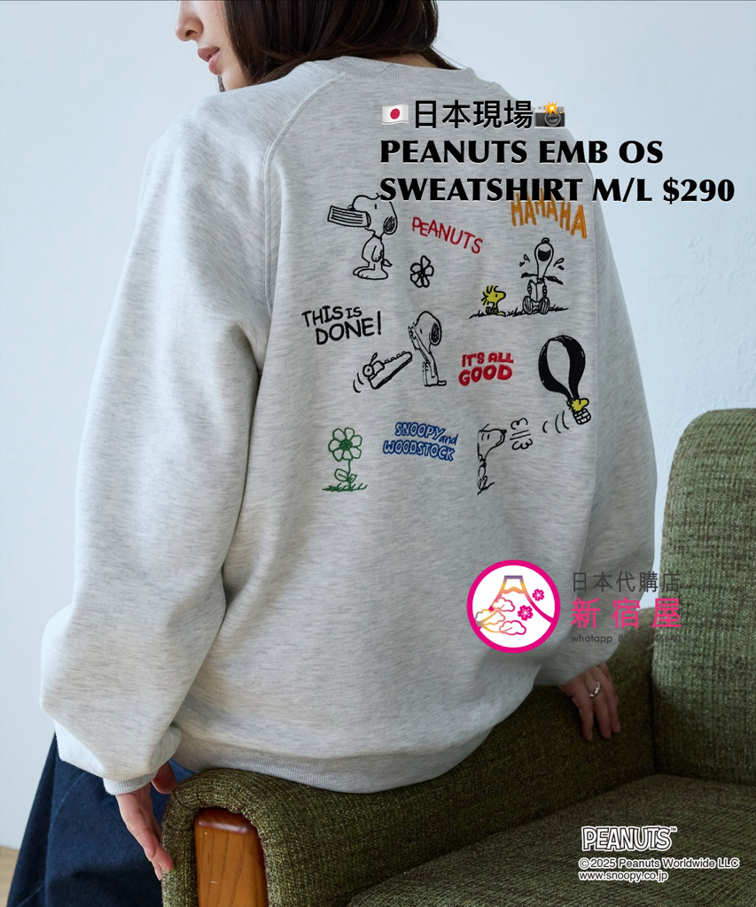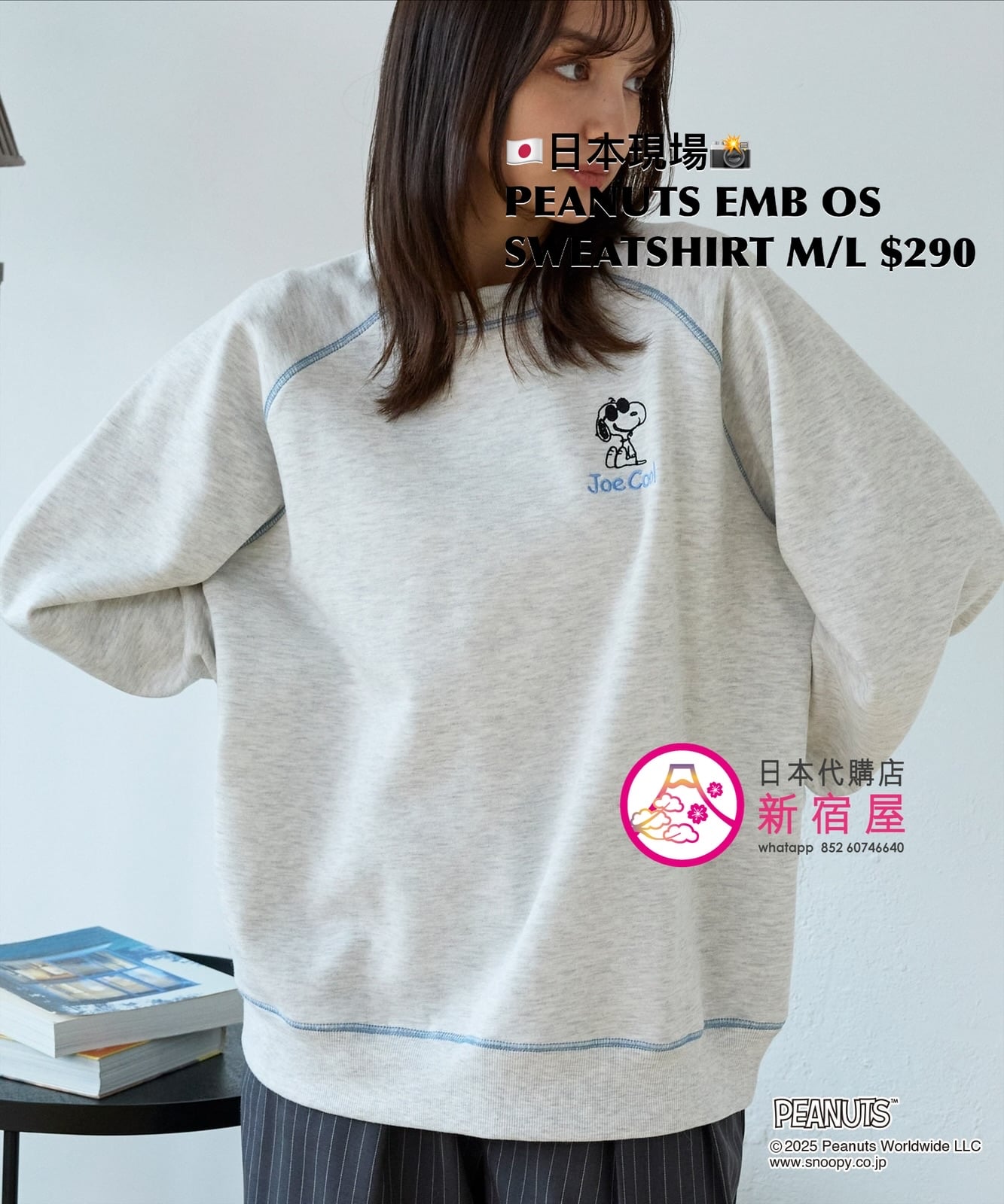 PEANUTS SNOOPY EMBROIDERED OVERSIZED SWEATSHIRT SIZE M/L,WINE/ BLACK/ OATMEAL/ NAVY/ GRAY,$290 👚參考尺寸 SIZE M: 身幅 60 總丈 68cm SIZE L: 身幅 62.5 總丈 70cm