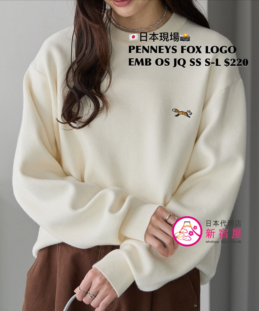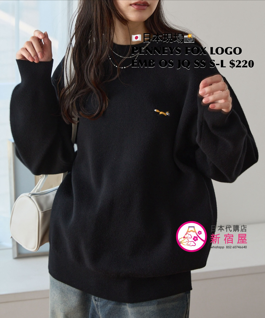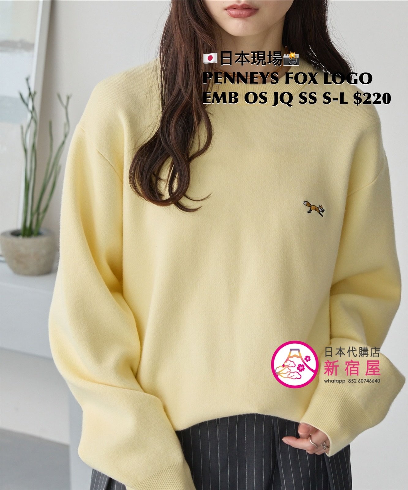 PENNYS FOX LOGO EMBROIDERED OVERSIZED JACQUARD SWEATSHIRT SIZE S/M/L,YELLOW/ OFF WHITE/ BLACK/ LIGHT GRAY/ CHARCOAL/ BEIGE/ BLUE/ NAVY/ RED/ PINK,$220 👚參考尺寸 SIZE S: 身幅 53 著丈 63cm SIZE M: 身幅 57.5 著丈 64.5cm SIZE L: 身幅 58 著丈 66cm