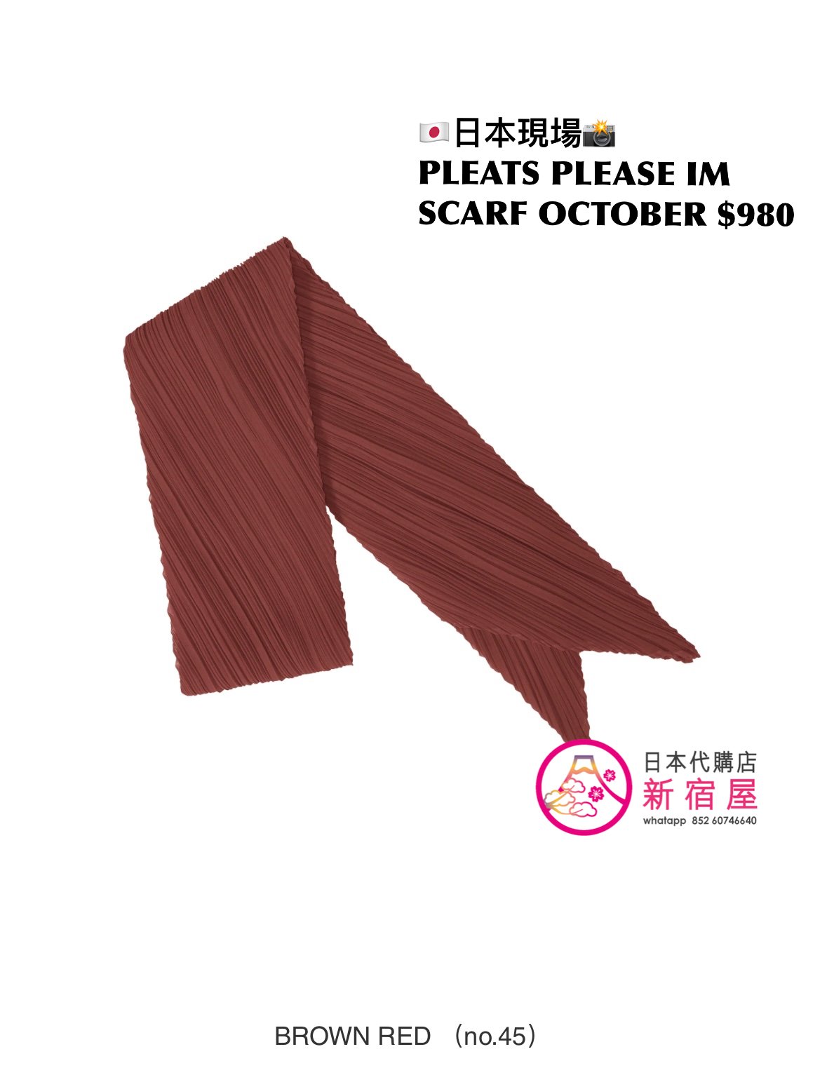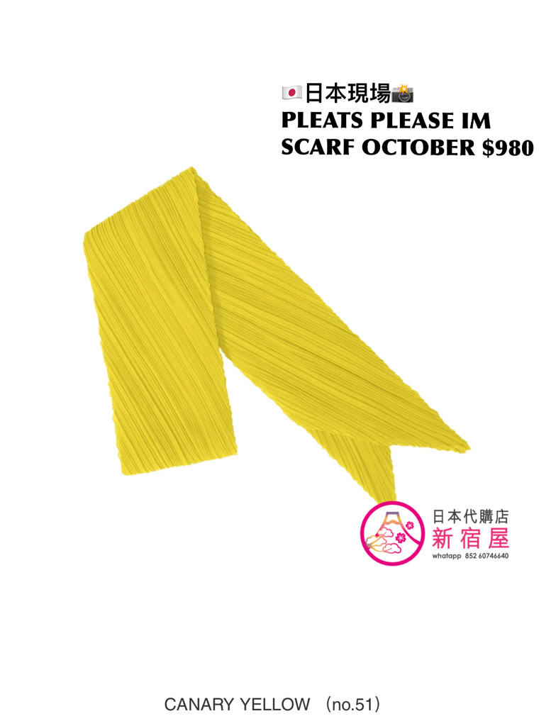 PLEATS PLEASE ISSEY MIYAKE OCT SCARF FREE SIZE,BROWN RED/ CANARY YELLOW/ GREEN,146x44cm,$980