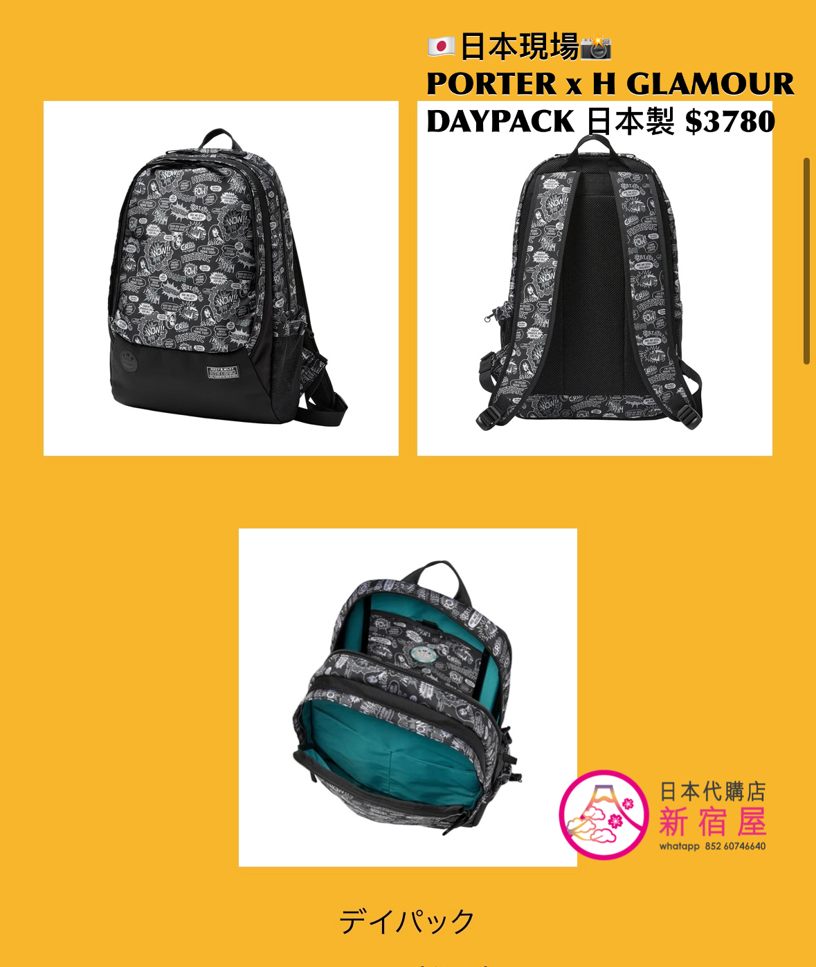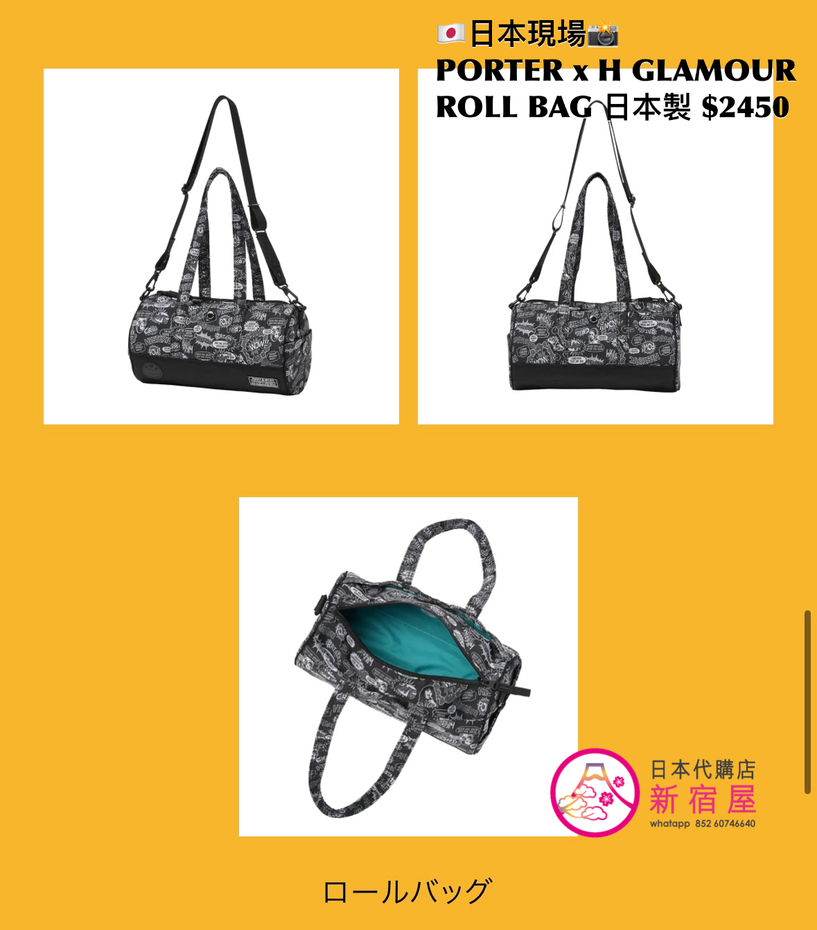PORTER x HYSTERIC GLAMOUR DAYPACK/ TOTE BAG/ ROLL BAG/ SHOULDER BAG/ LONG WALLET/ WALLET DAYPACK,29x12x47cm,$3780 TOTE BAG,34x17x35cm,$2250 ROLL BAG,28x16x16cm,$2450 SHOULDER BAG,21x11x17cm,$2350 LONG WALLET,20x10cm,$2250 WALLET,10x8cm,$1480