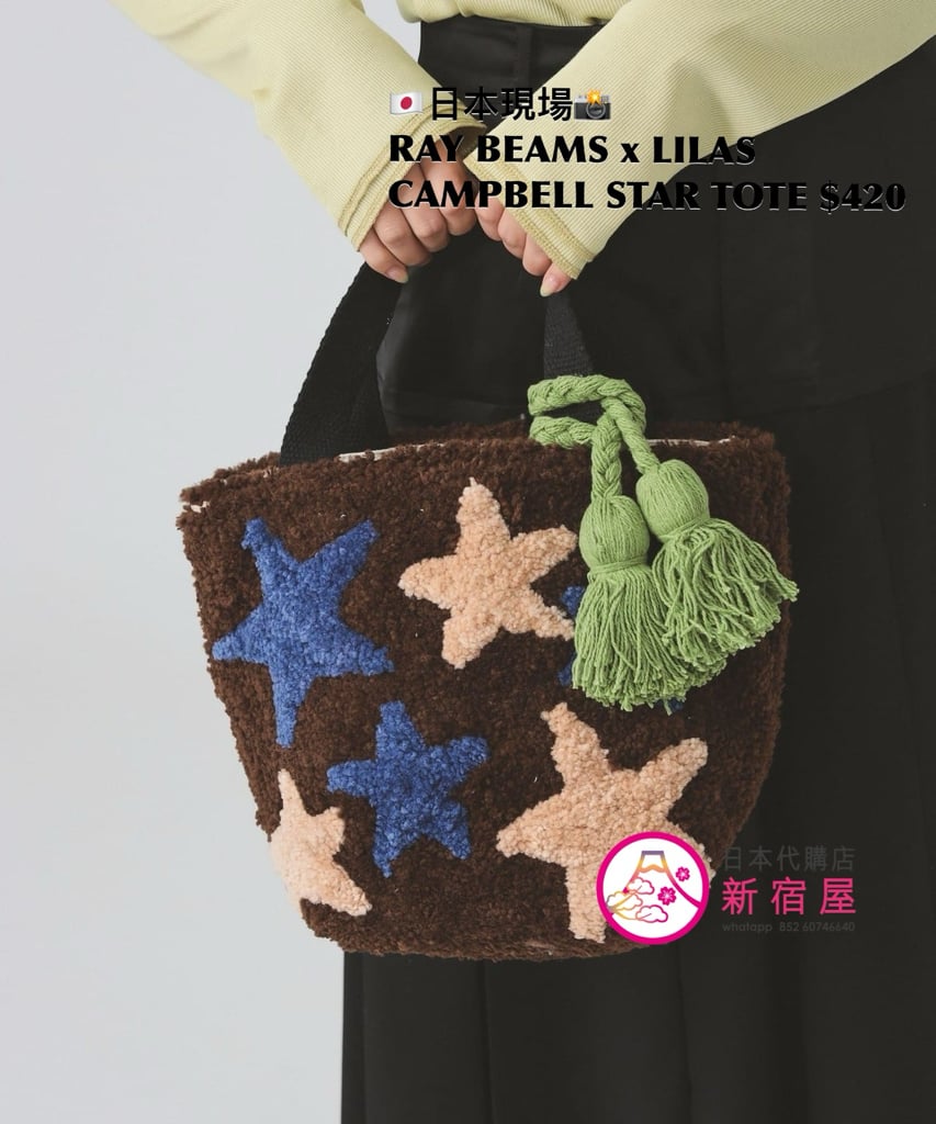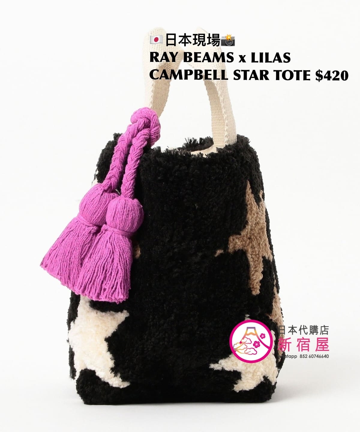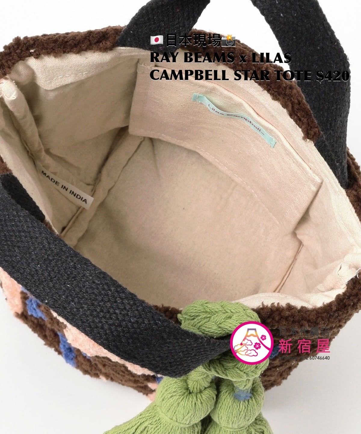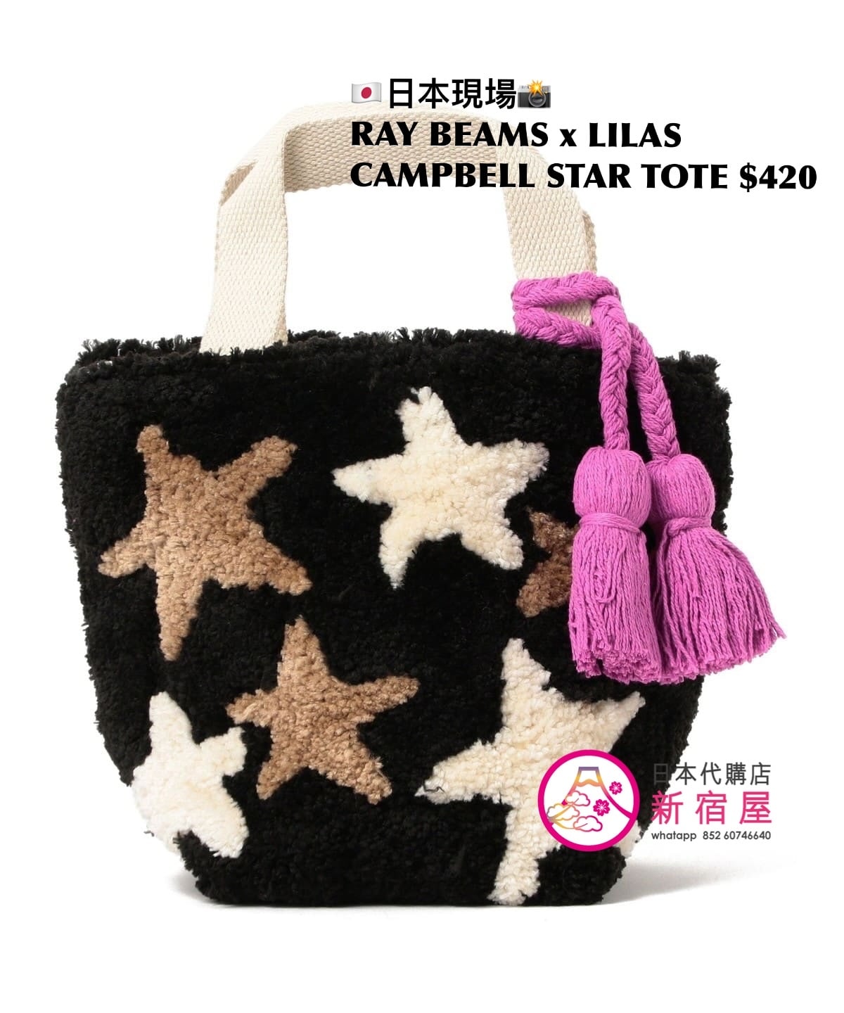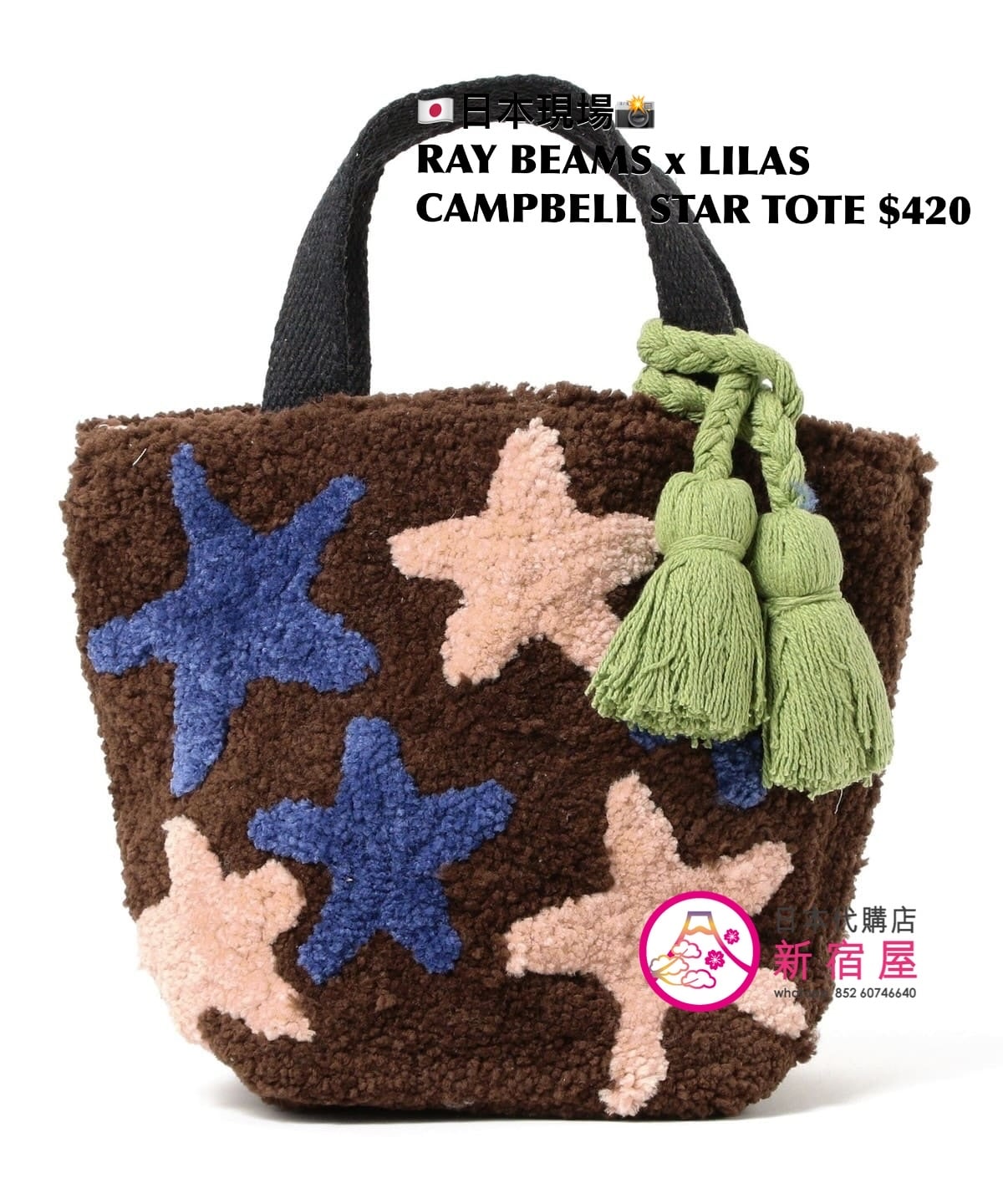 RAY BEAMS x LILAS CAMPBELL STAR TOTE BAG 33x16x24cm,BLACK/ BROWN,$420