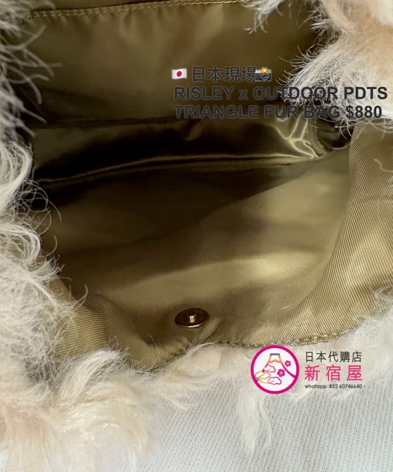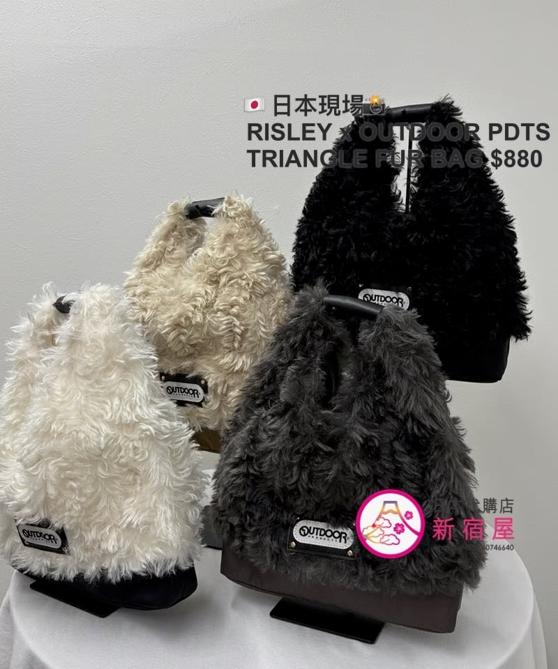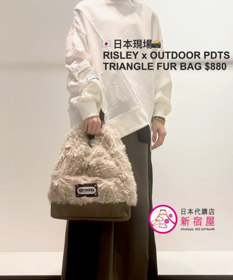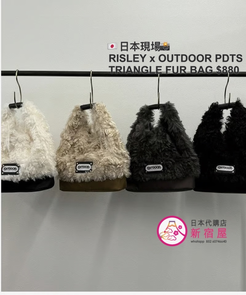 RISLEY x OUTDOOR PRODUCTS TRIANGLE FUR BAG 33x7x36cm,IVORY/ KHAKI/ CHARCOAL/ BLACK,$980