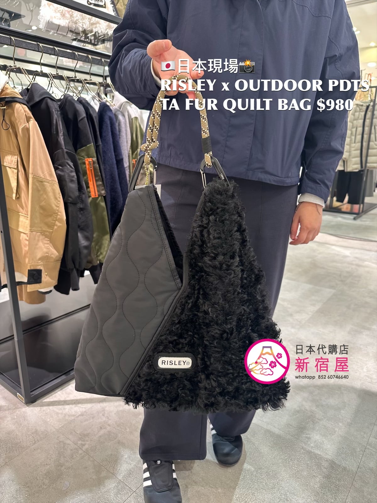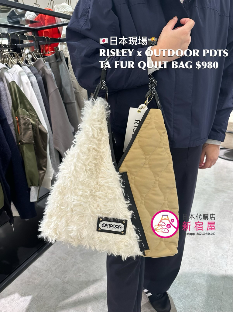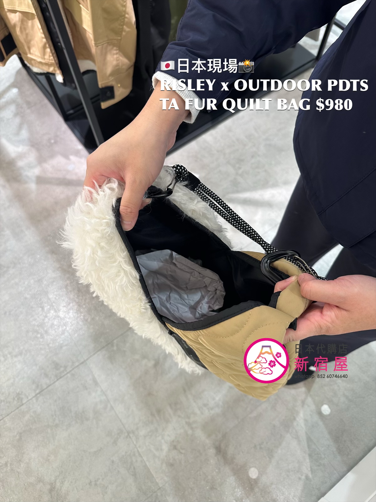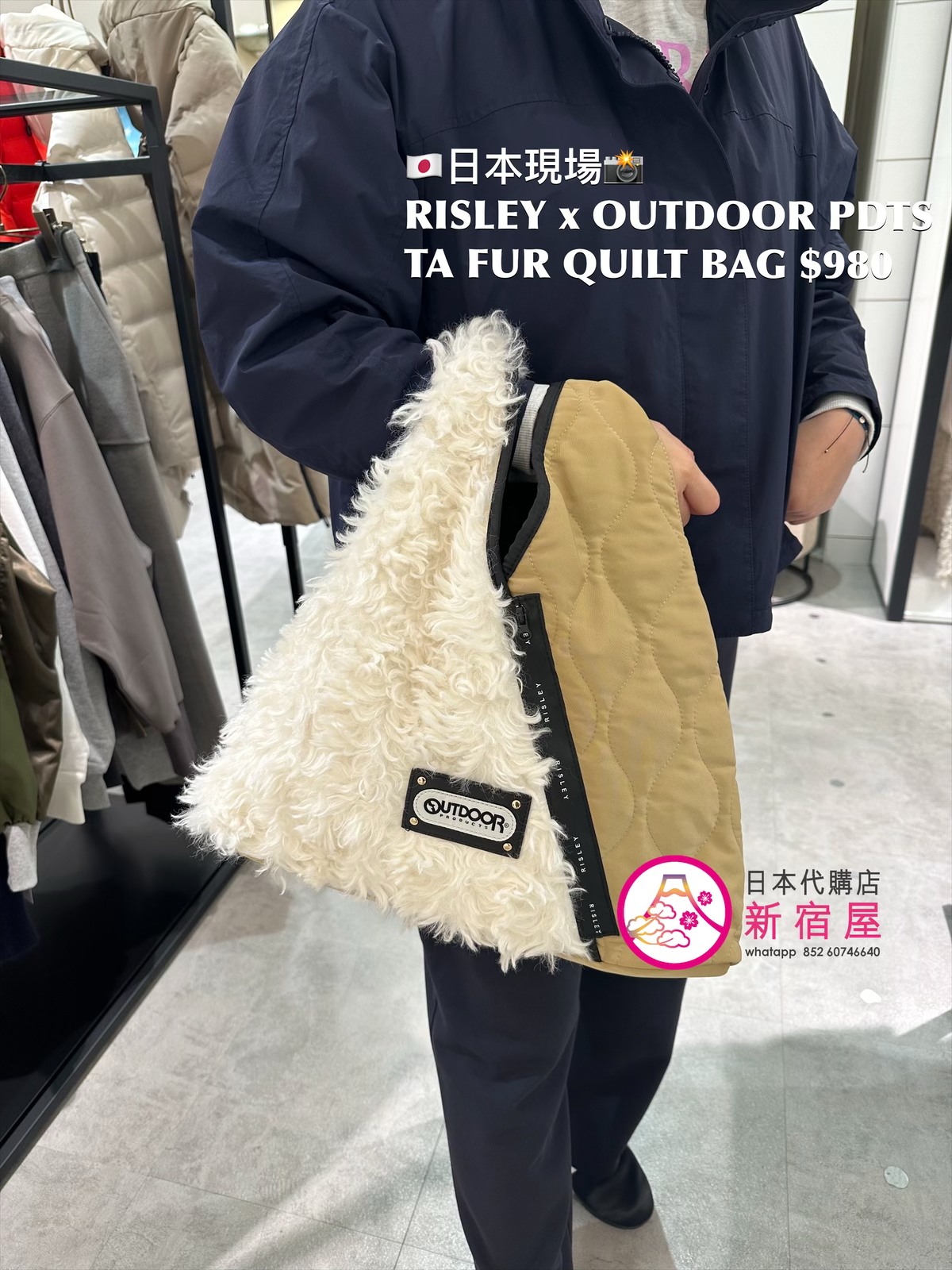 RISLEY x OUTDOOR PRODUCTS TRIANGLE FUR QUILT BAG 40x43cm,BEIGE/ KHAKI/ BLACK,$980