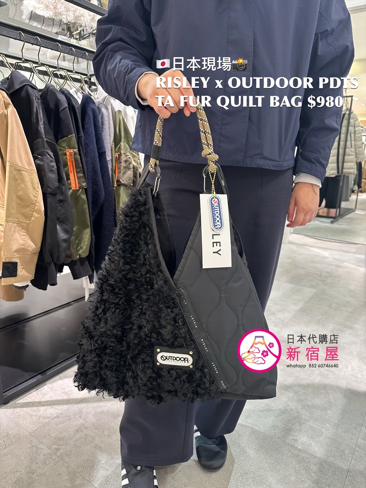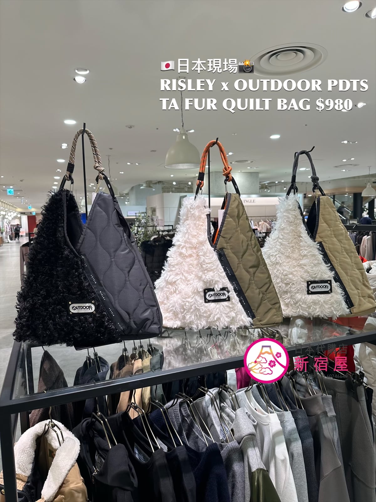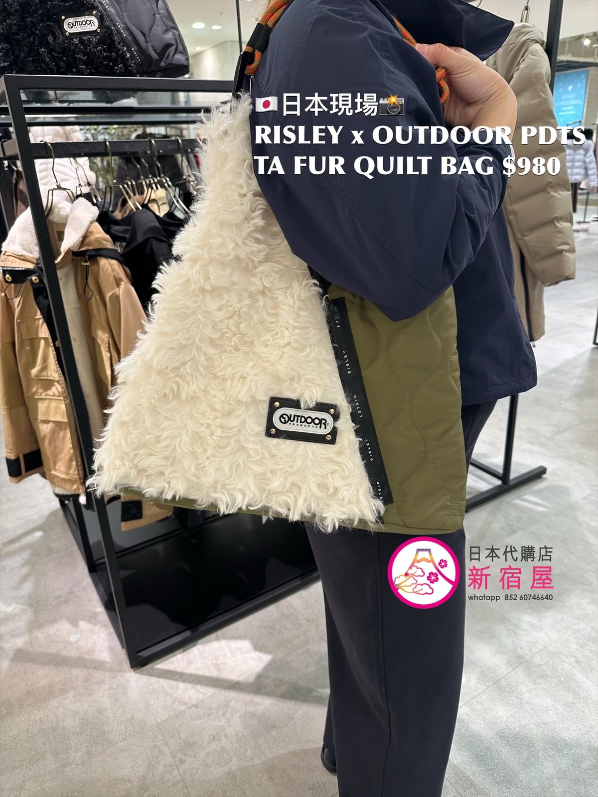 RISLEY x OUTDOOR PRODUCTS TRIANGLE FUR QUILT BAG 40x43cm,BEIGE/ KHAKI/ BLACK,$980