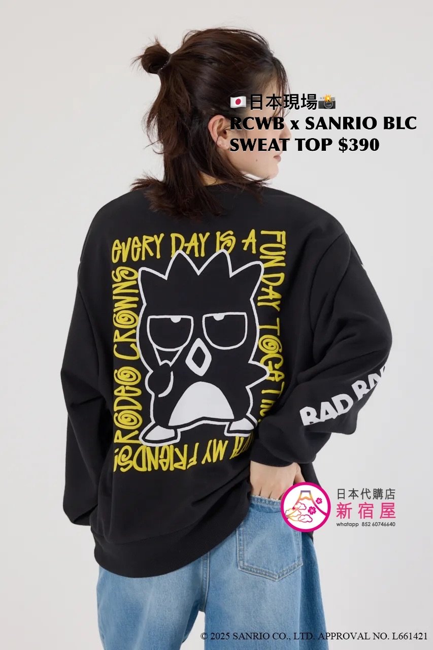 RODEO CROWNS WIDE BOWL x SANRIO BLC SWEAT TOP FREE SIZE,BLUE/ YELLOW/ RED/ PURPLE,$390 👚參考尺寸 FREE SIZE: 胸圍 122 總丈 68cm
