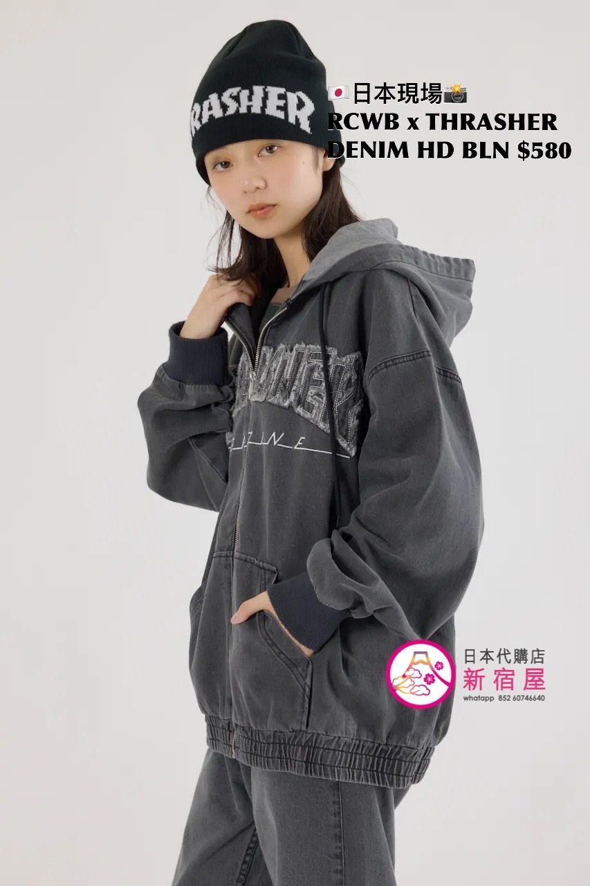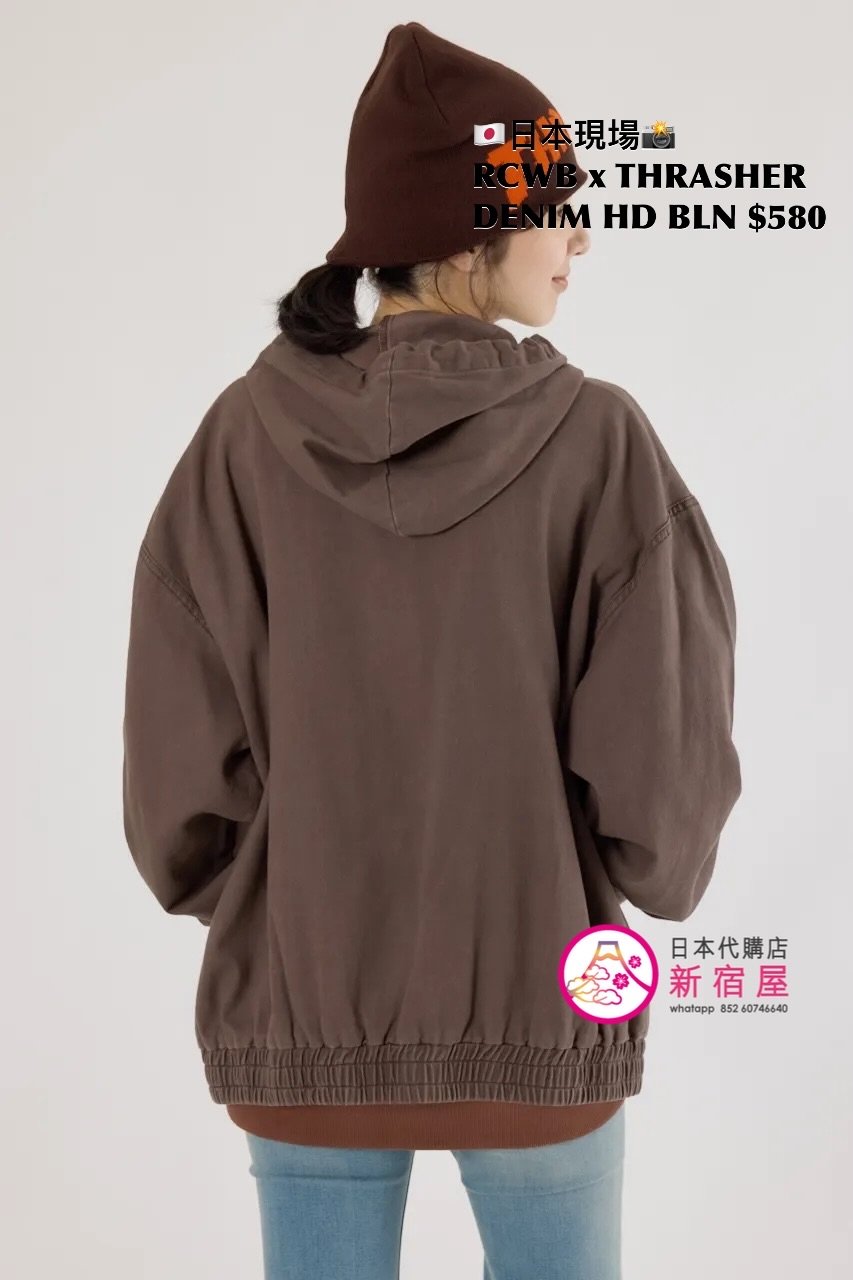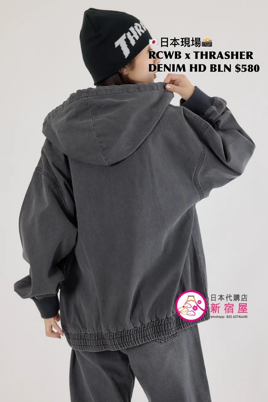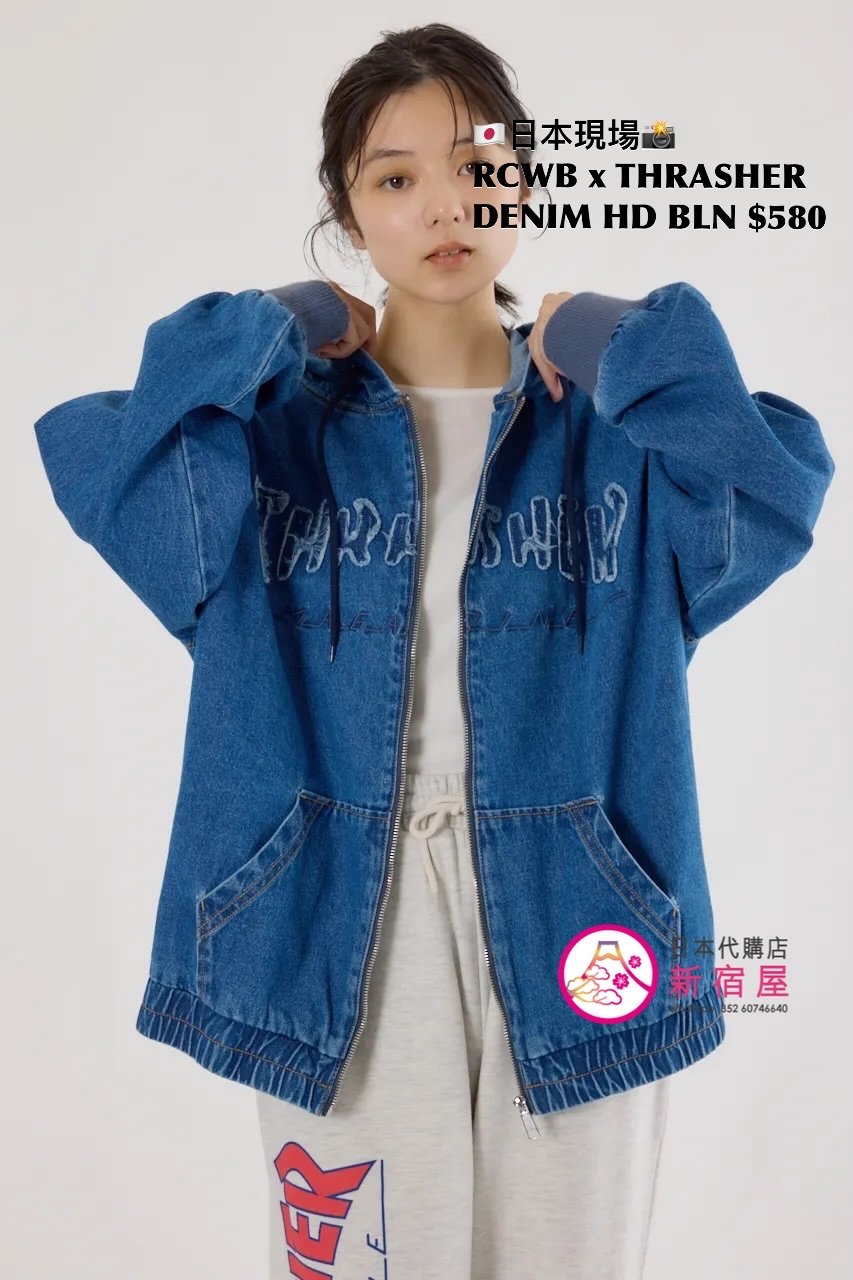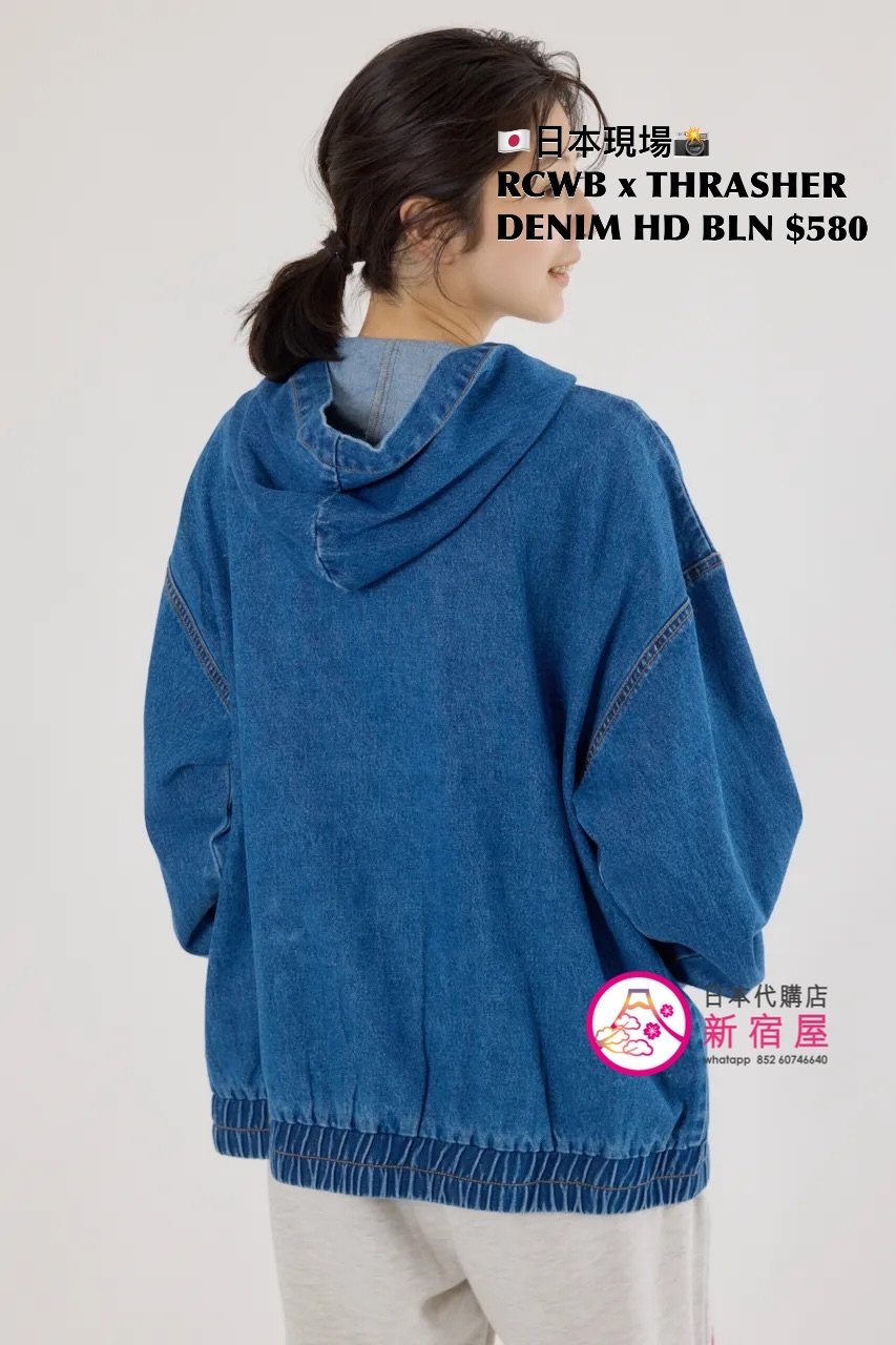 RODEO CROWNS WIDE BOWL x THRASHER DENIM HOODED BLOUSON FREE SIZE,BLACK/ BROWN/ BLUE,$580 👚參考尺寸 FREE SIZE: 胸 130 總丈 67.5cm
