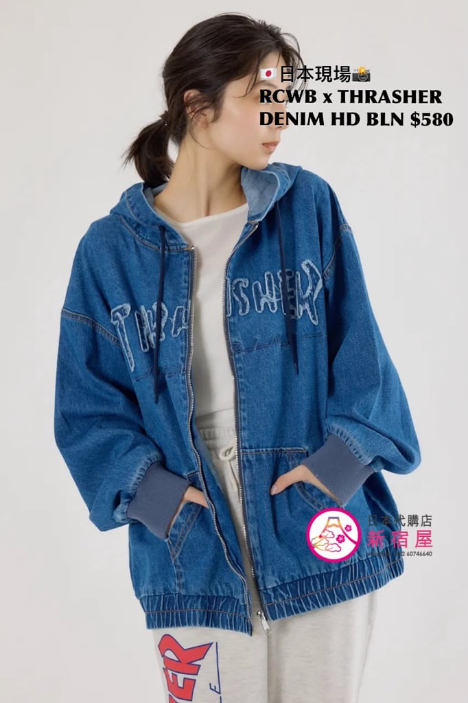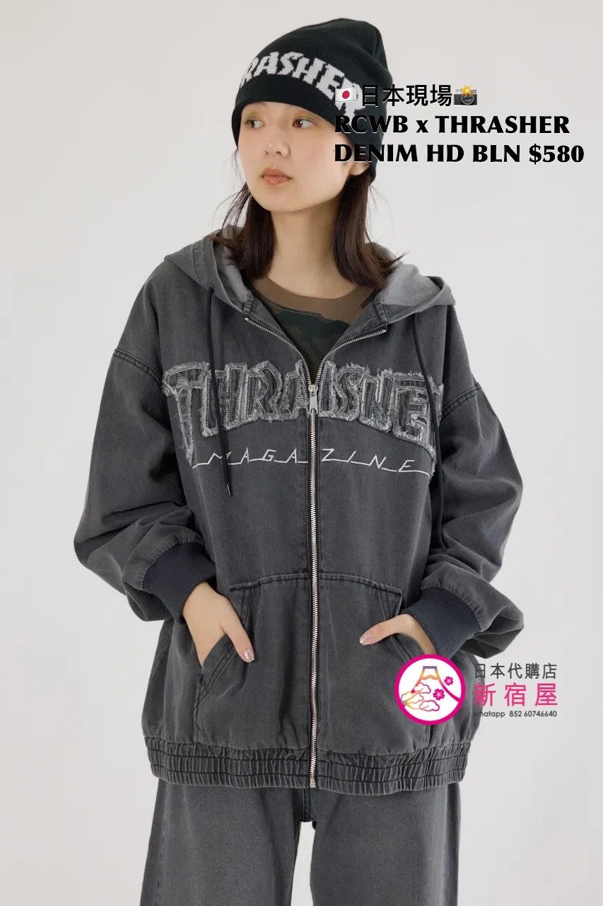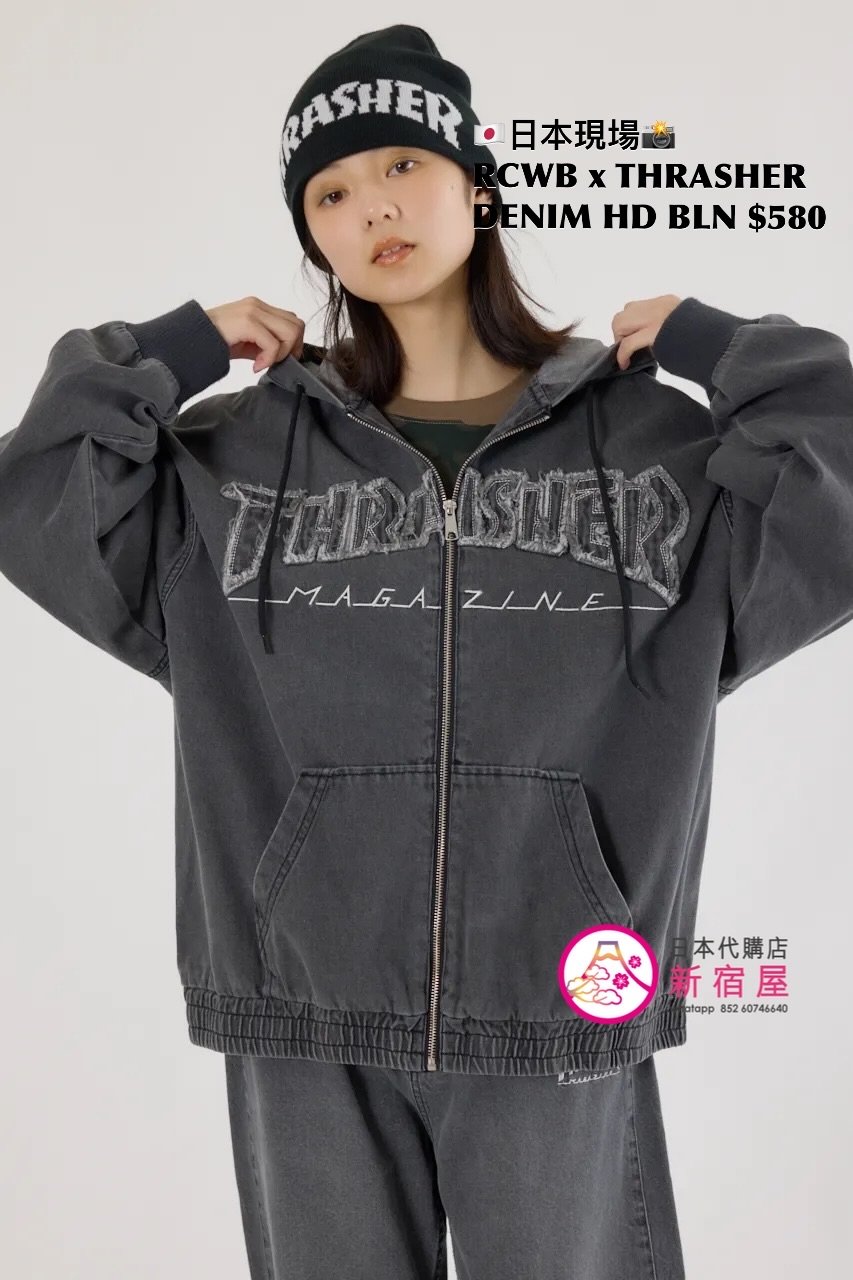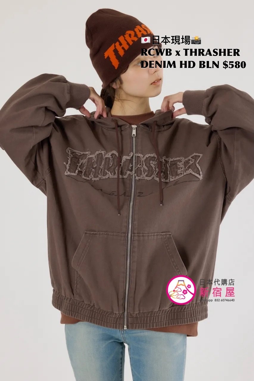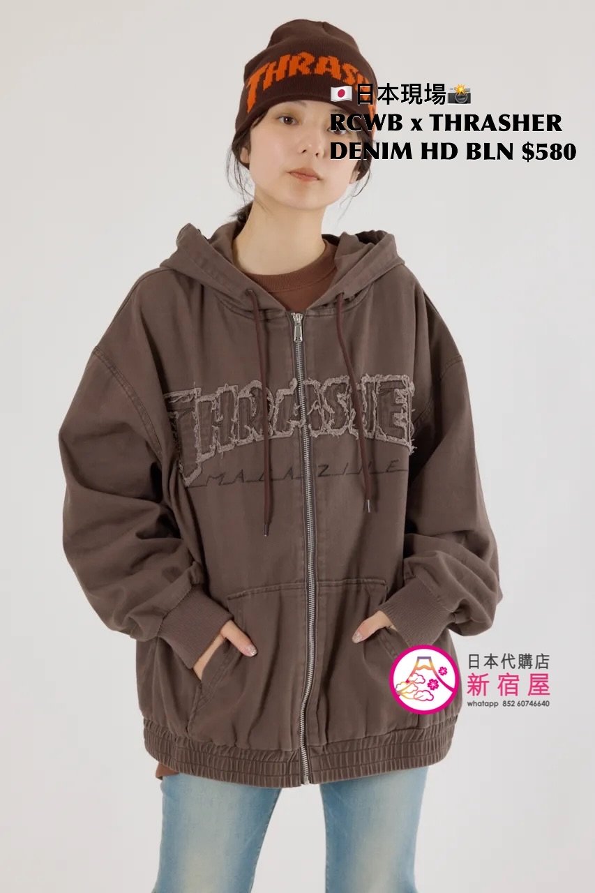 RODEO CROWNS WIDE BOWL x THRASHER DENIM HOODED BLOUSON FREE SIZE,BLACK/ BROWN/ BLUE,$580 👚參考尺寸 FREE SIZE: 胸 130 總丈 67.5cm