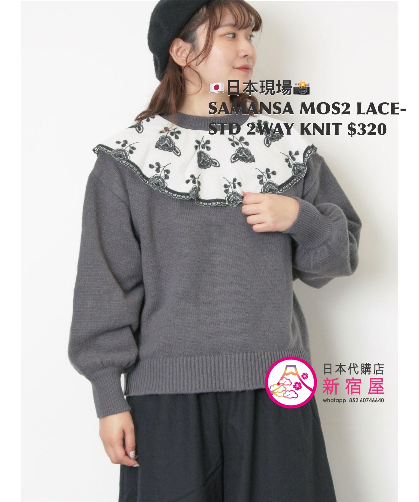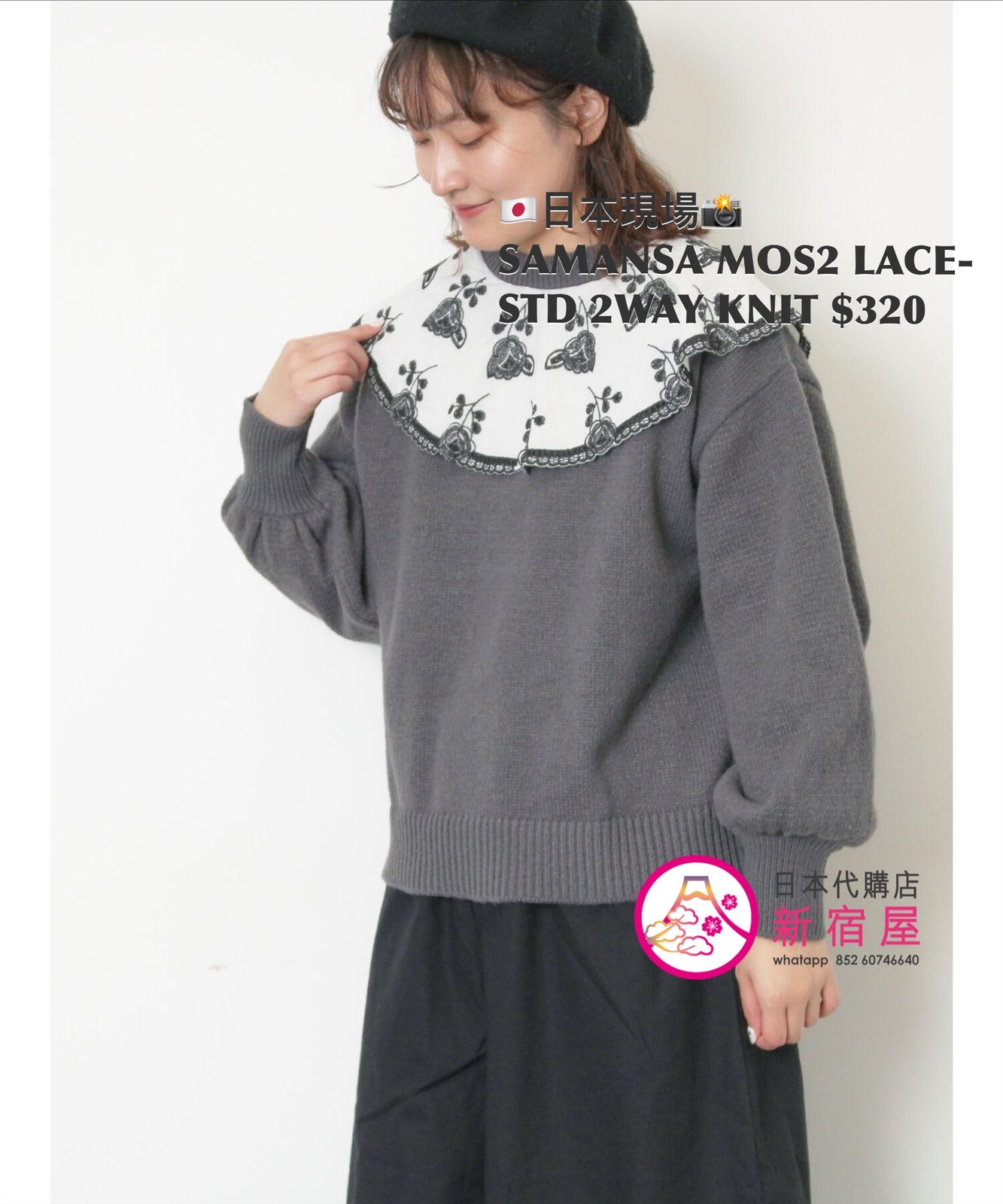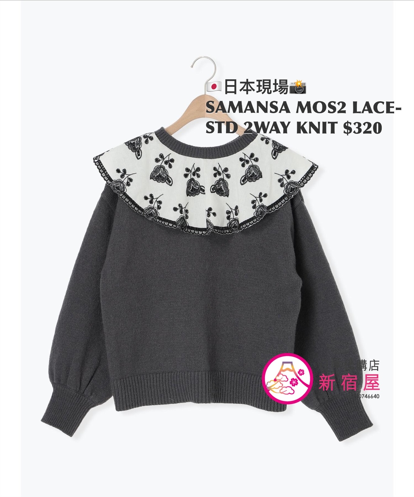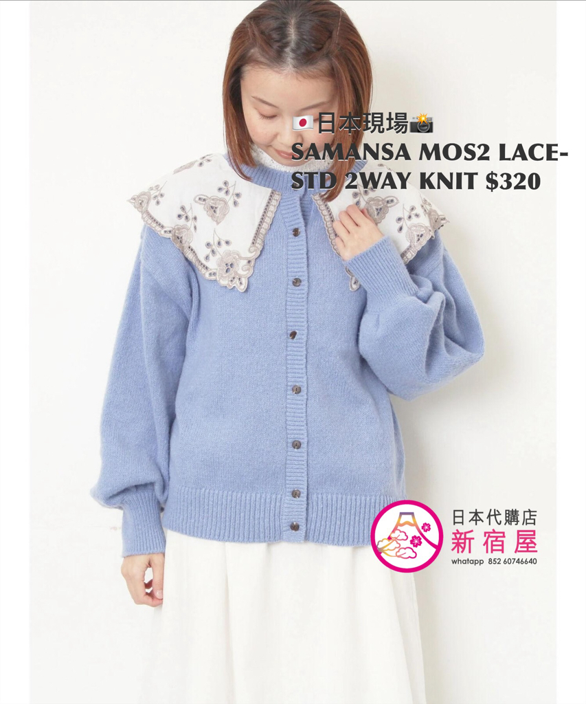 SAMANSA MOS2 LACE-STUDDED 2WAY KNIT FREE SIZE,CHARCOAL GRAY/ BEIGE/ BLUE,$580 👚參考尺寸 FREE SIZE: 胸圍 108 著丈 52cm