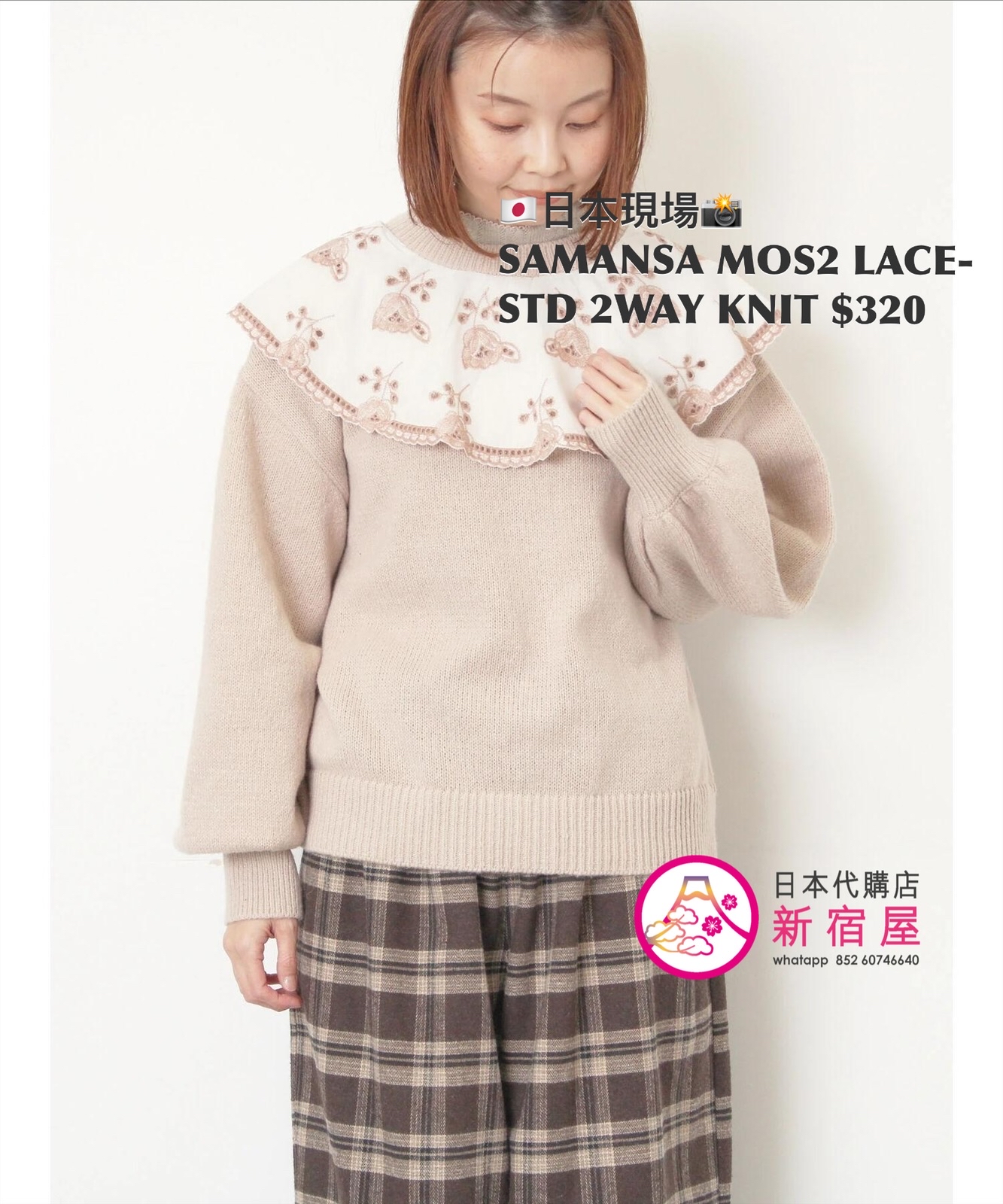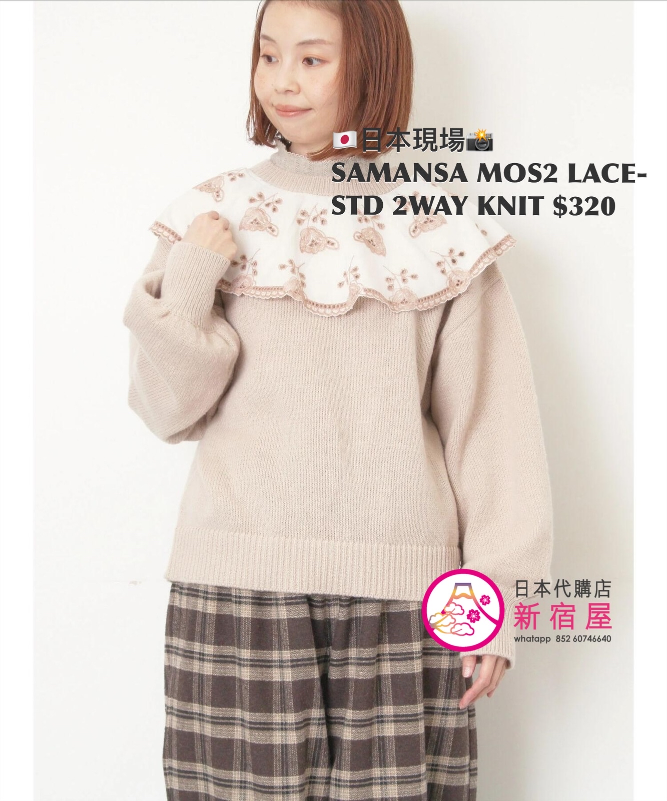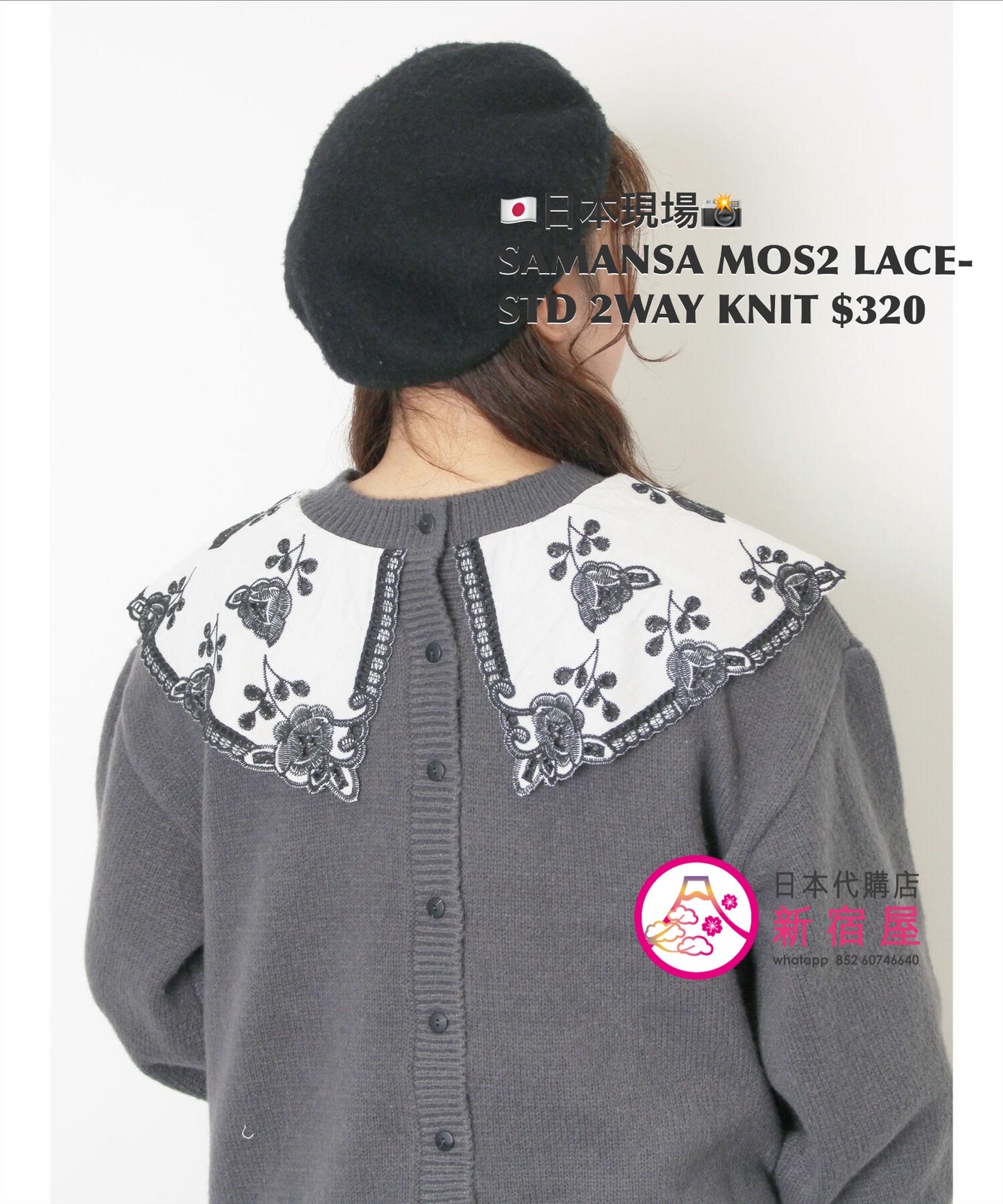SAMANSA MOS2 LACE-STUDDED 2WAY KNIT FREE SIZE,CHARCOAL GRAY/ BEIGE/ BLUE,$580 👚參考尺寸 FREE SIZE: 胸圍 108 著丈 52cm