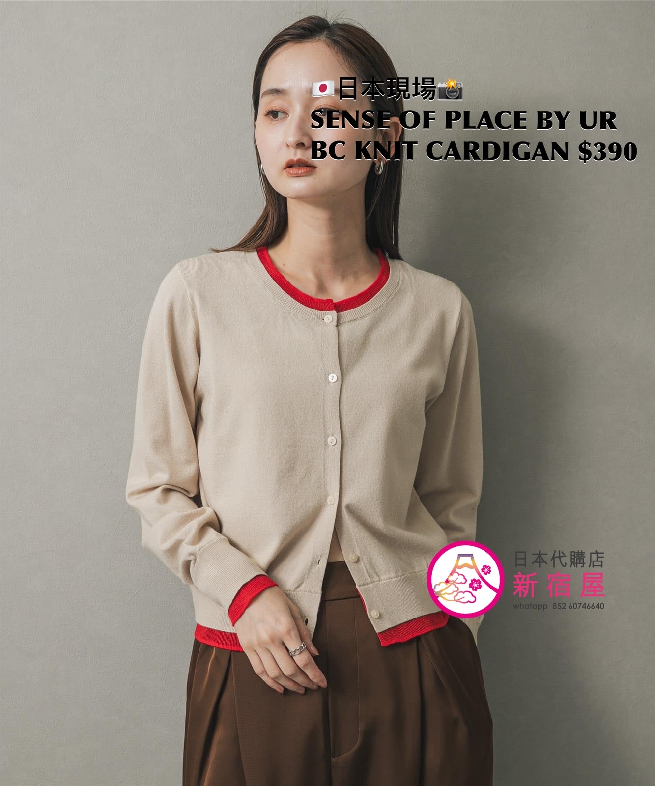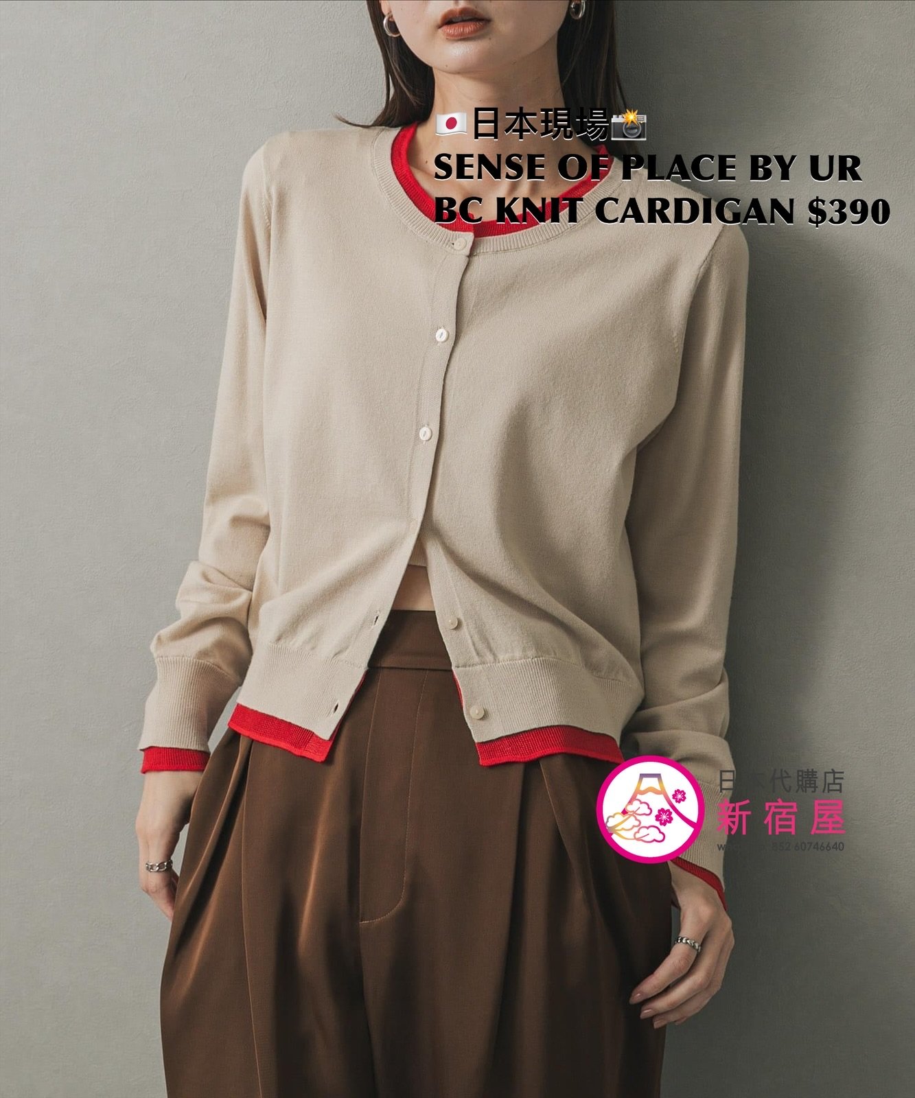 SENSE OF PLACE BY URBAN RESEARCH BICOLOR KNIT CARDIGAN ONE SIZE,BEIGE/ BROWN/ NAVY,$390 👚參考尺寸 ONE SIZE: 身幅 48 著丈 49cm