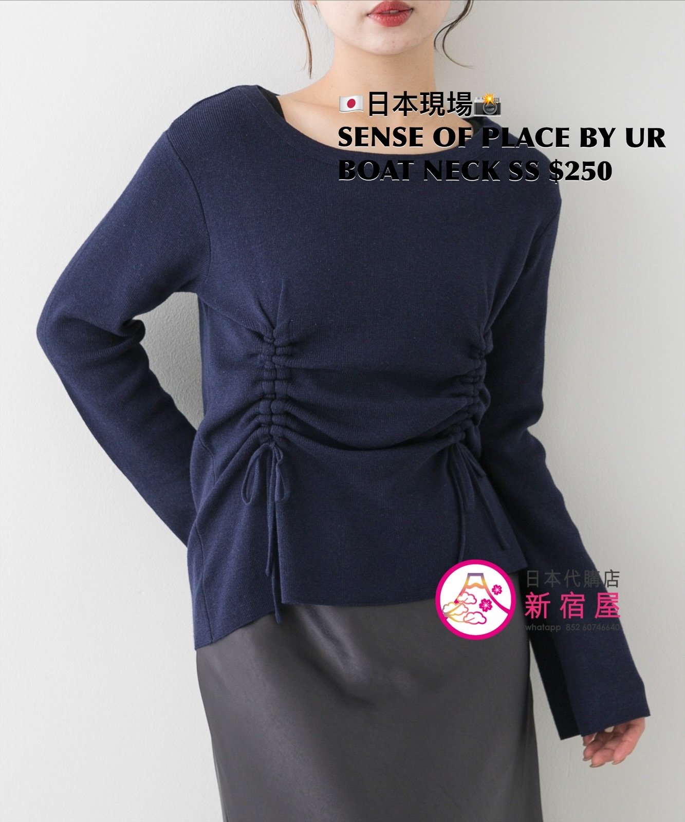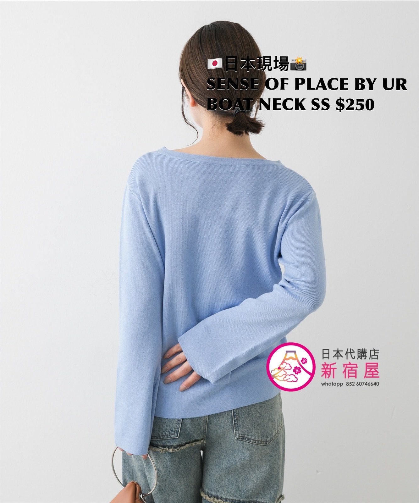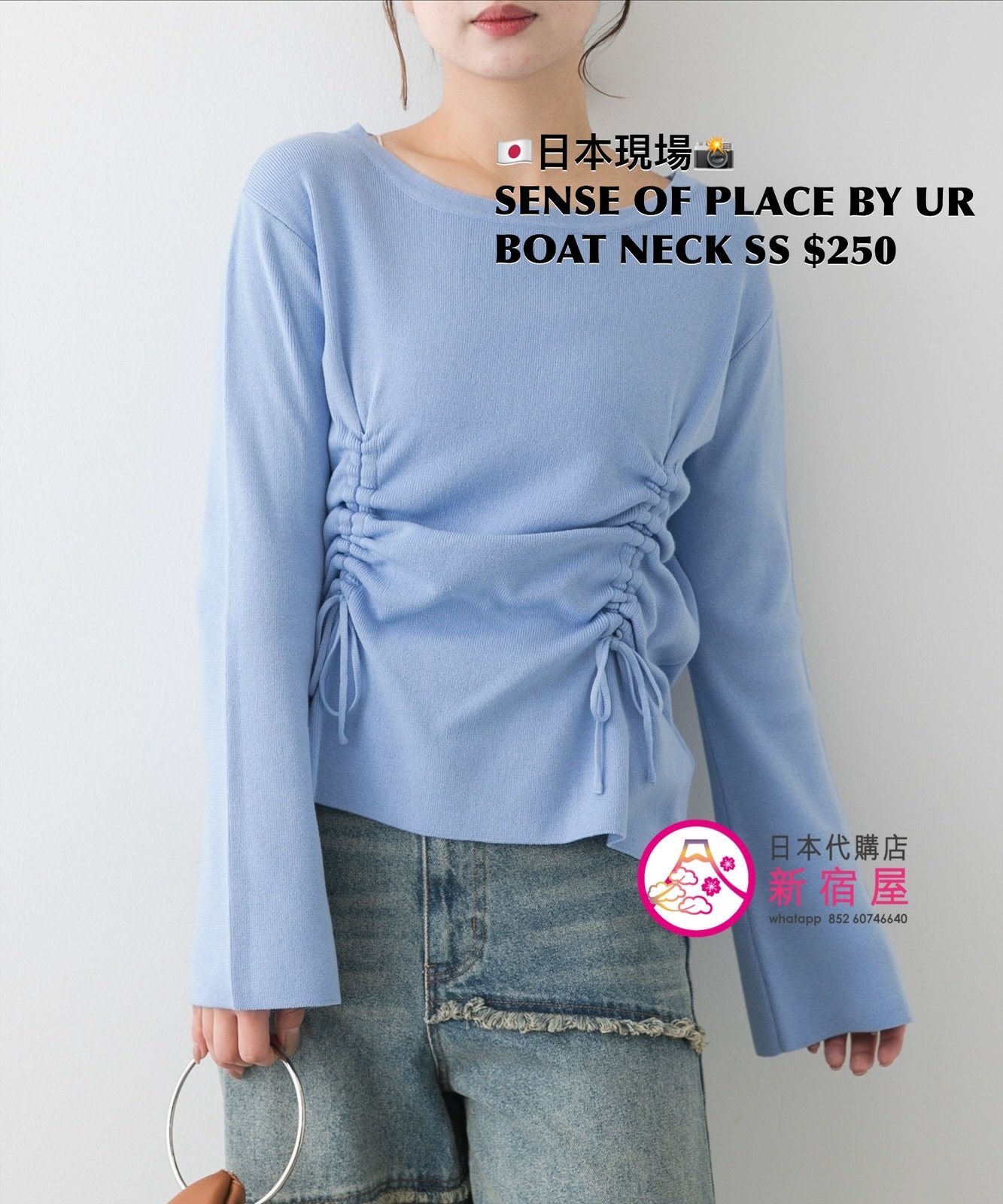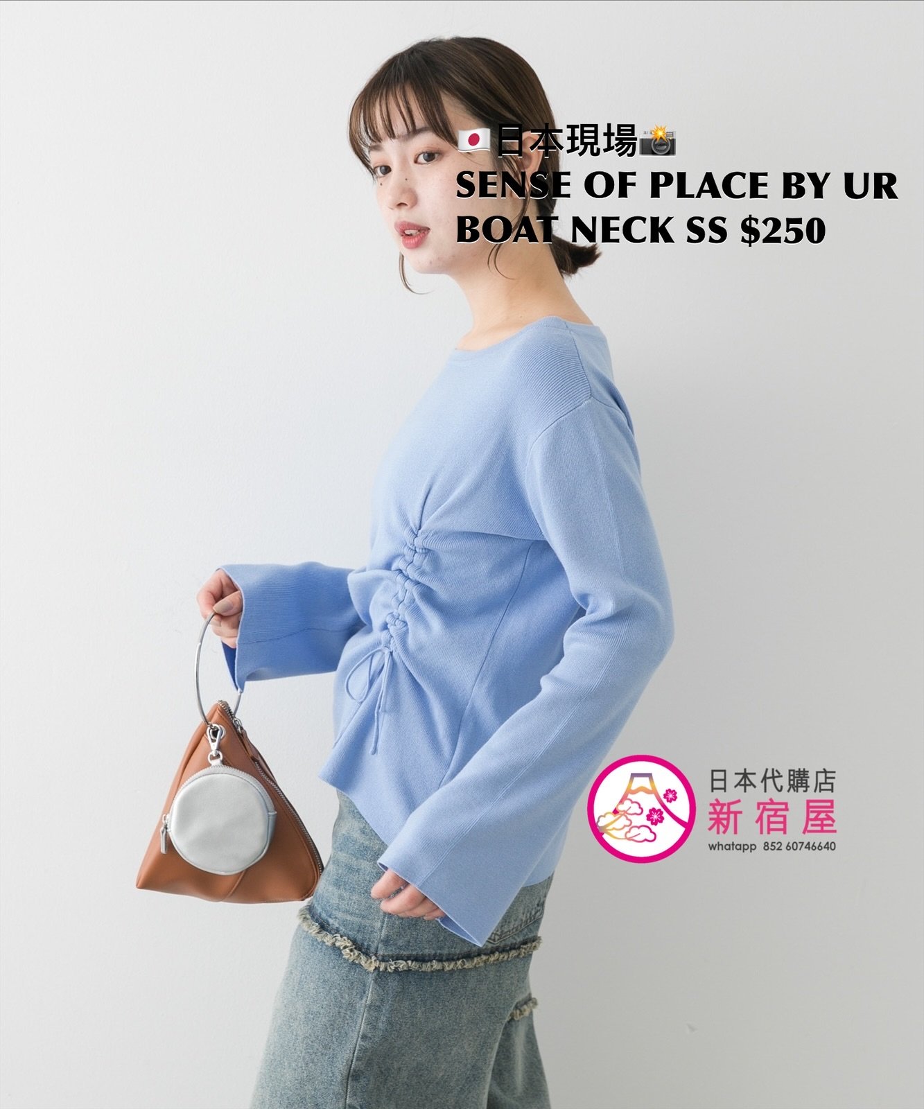 SENSE OF PLACE BY URBAN RESEARCH BOAT NECK SHIRRED SWEATER ONE SIZE,LIGHT BLUE/ IVORY/ NAVY,$250 👚參考尺寸 ONE SIZE: 身幅 46 著丈 54cm