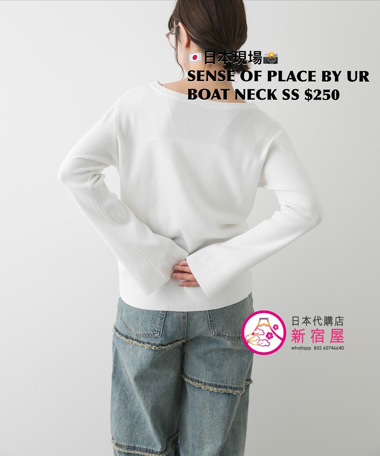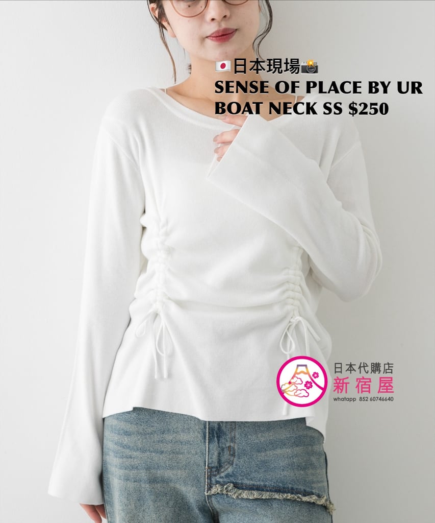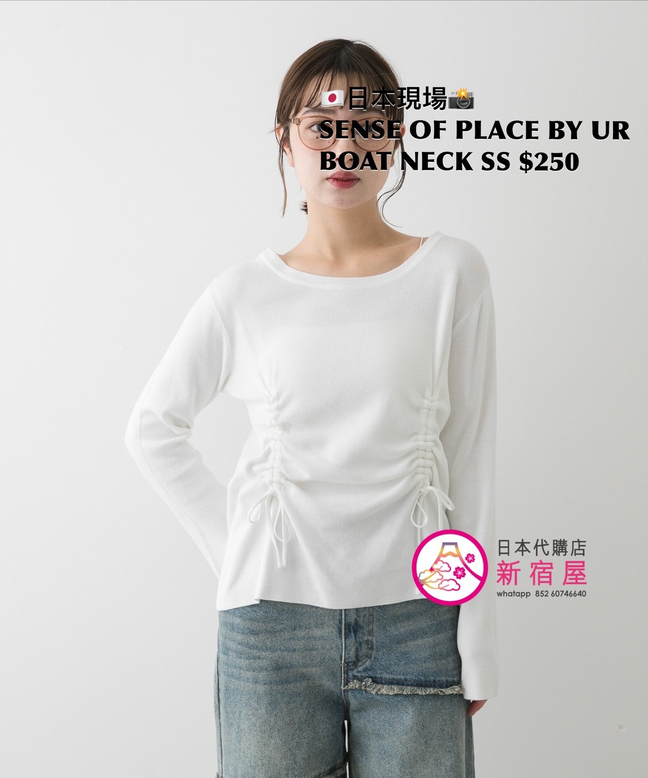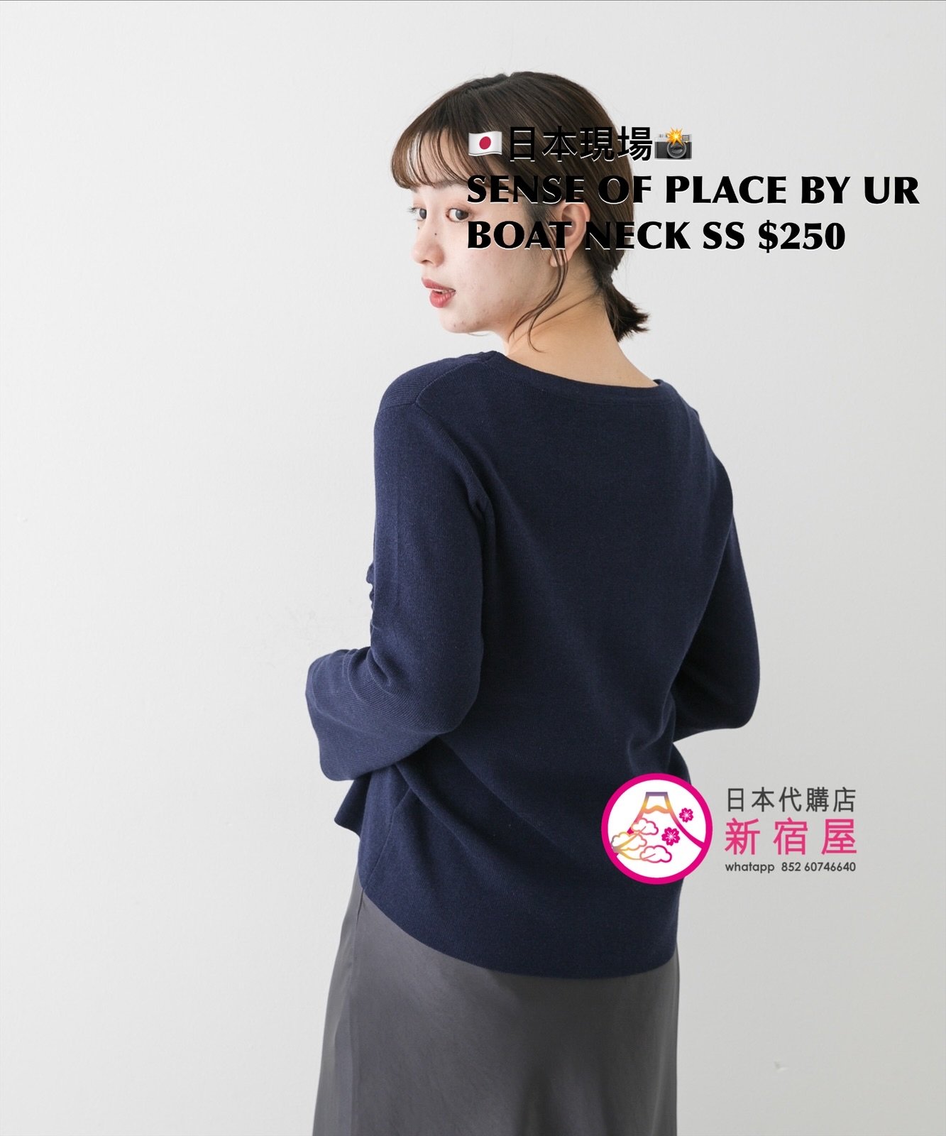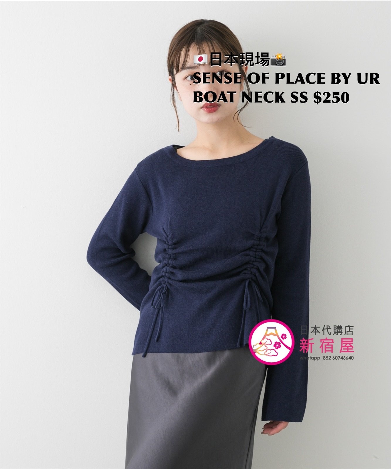 SENSE OF PLACE BY URBAN RESEARCH BOAT NECK SHIRRED SWEATER ONE SIZE,LIGHT BLUE/ IVORY/ NAVY,$250 👚參考尺寸 ONE SIZE: 身幅 46 著丈 54cm