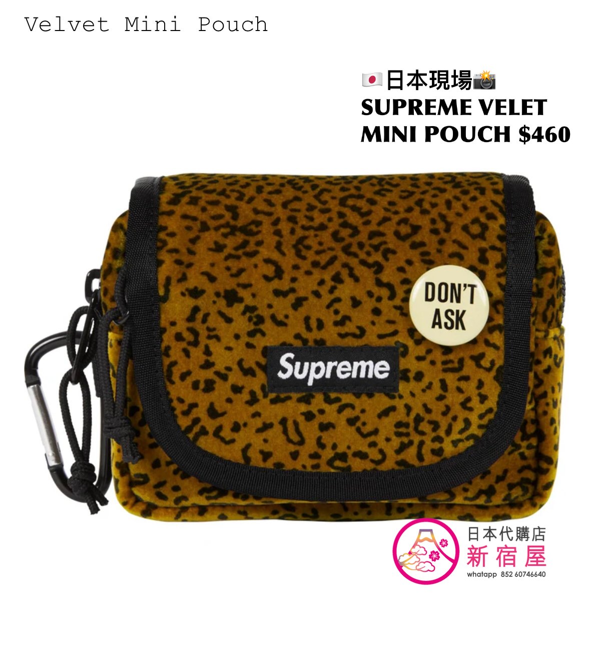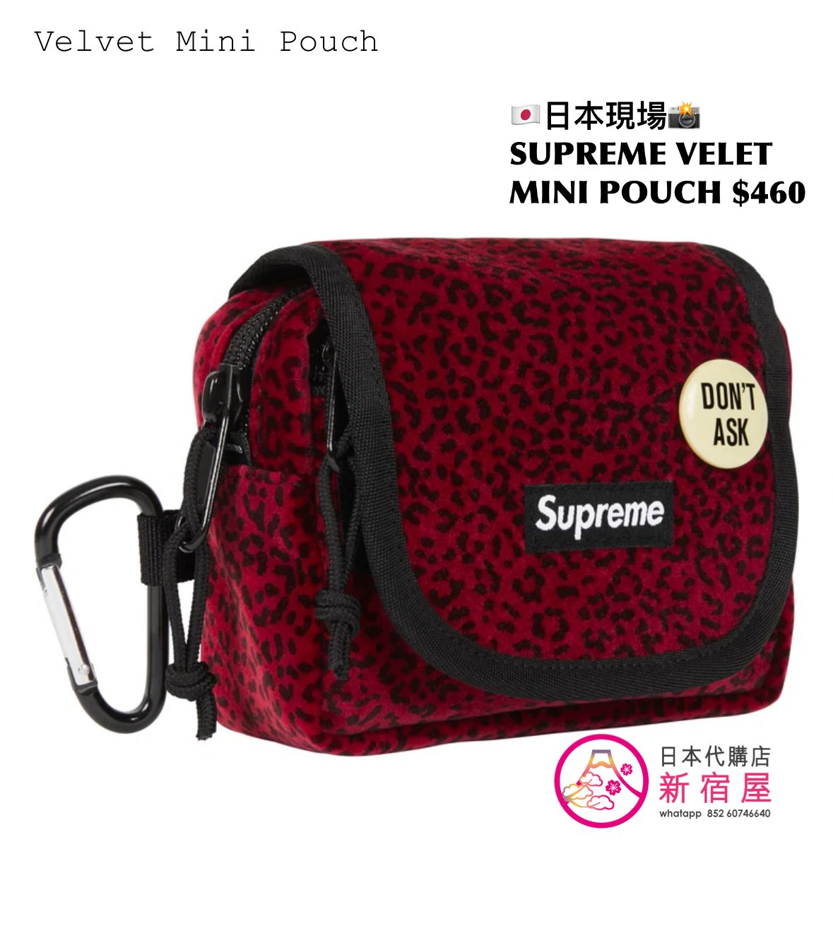 SUPREME VELET MINI POUCH 13x5x9cm,BLACK/ TAN LEOPARD/ RED LEOPARD,$460