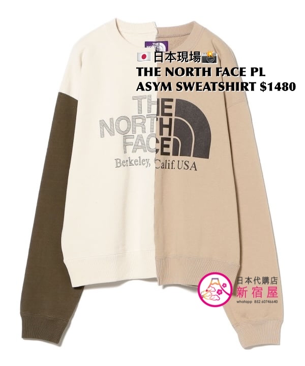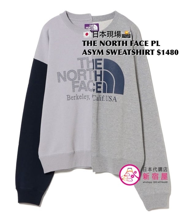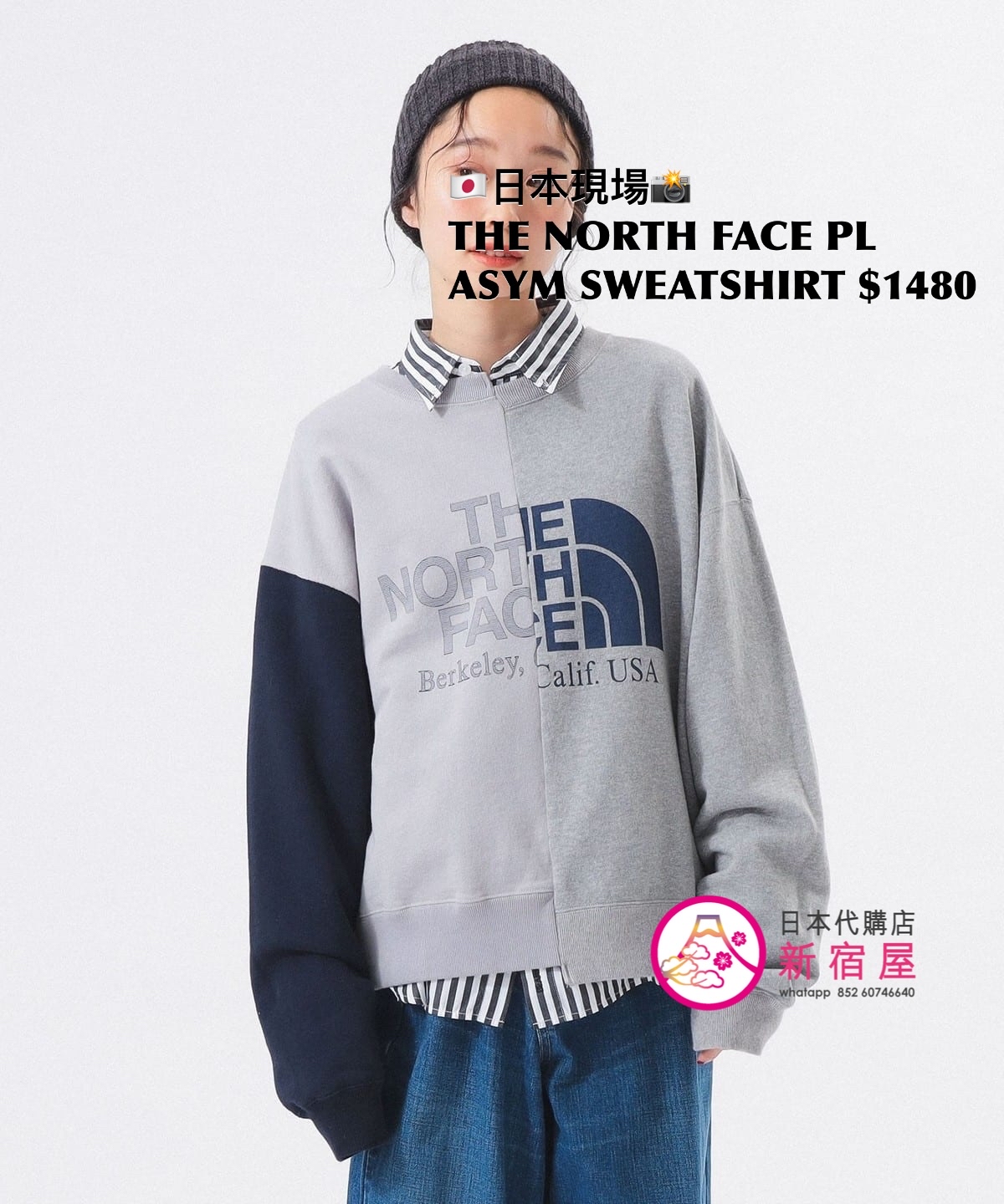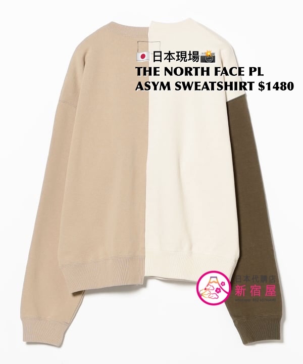 THE NORTH FACE PURPLE LABEL ASYMMETRIC SWEATSHIRT WS,GRAY/ BEIGE/ NAVY,$1480 👚參考尺寸 SIZE WS: 身幅 58 總丈 60.5cm