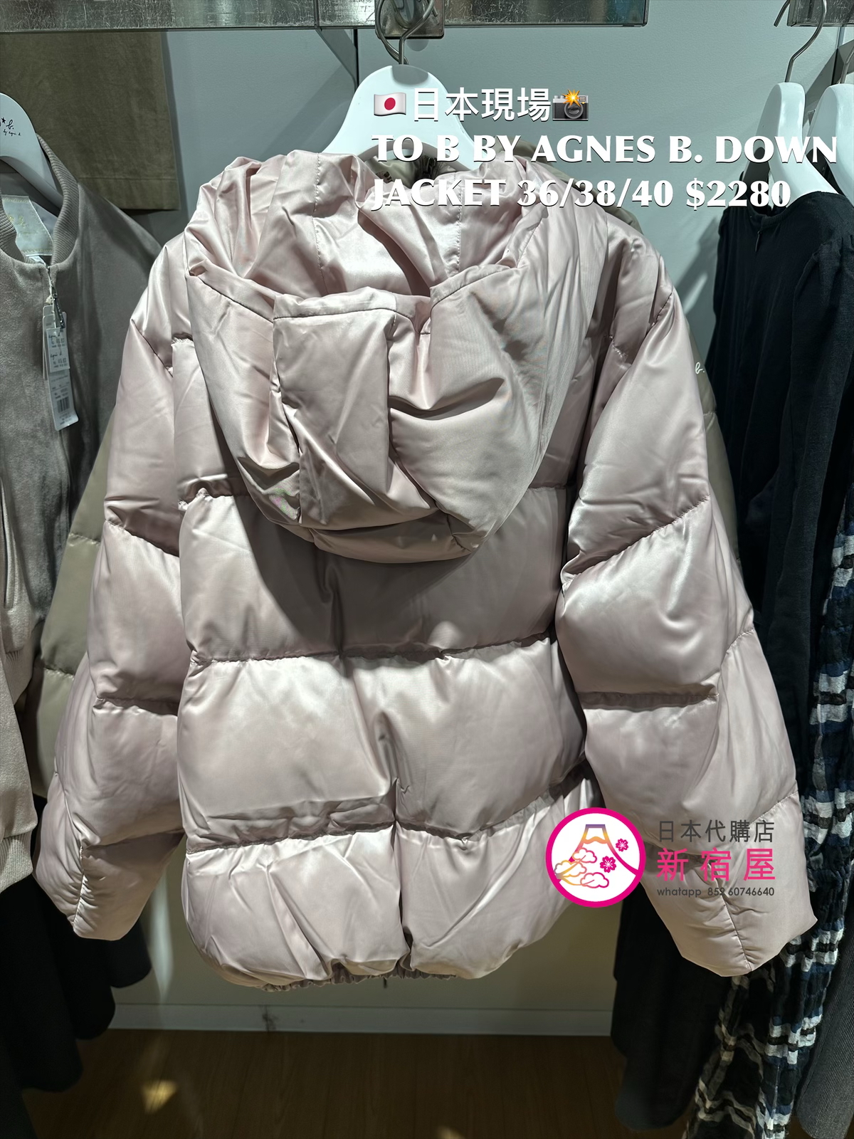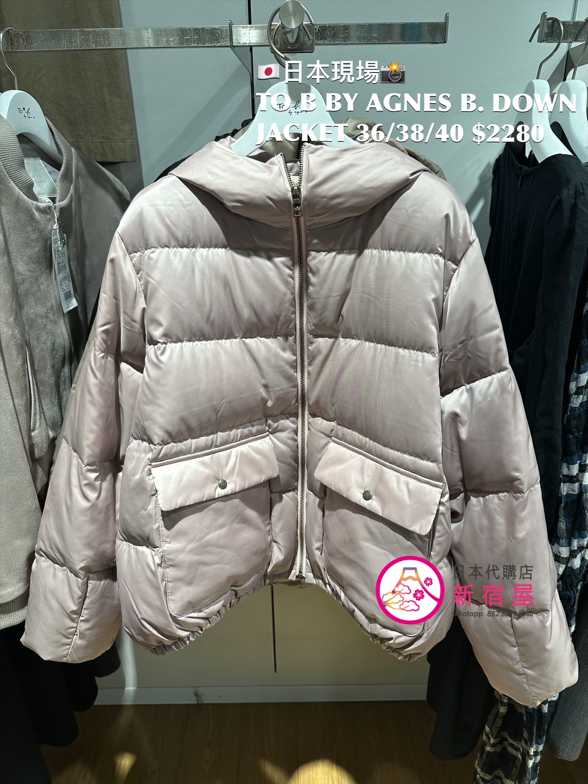 TO B BY AGNES B. DOWN JACKET SIZE 36/38/40,90% DOWN/ 10% FEATHER,BLACK/ BEIGE/ PINK,$2280